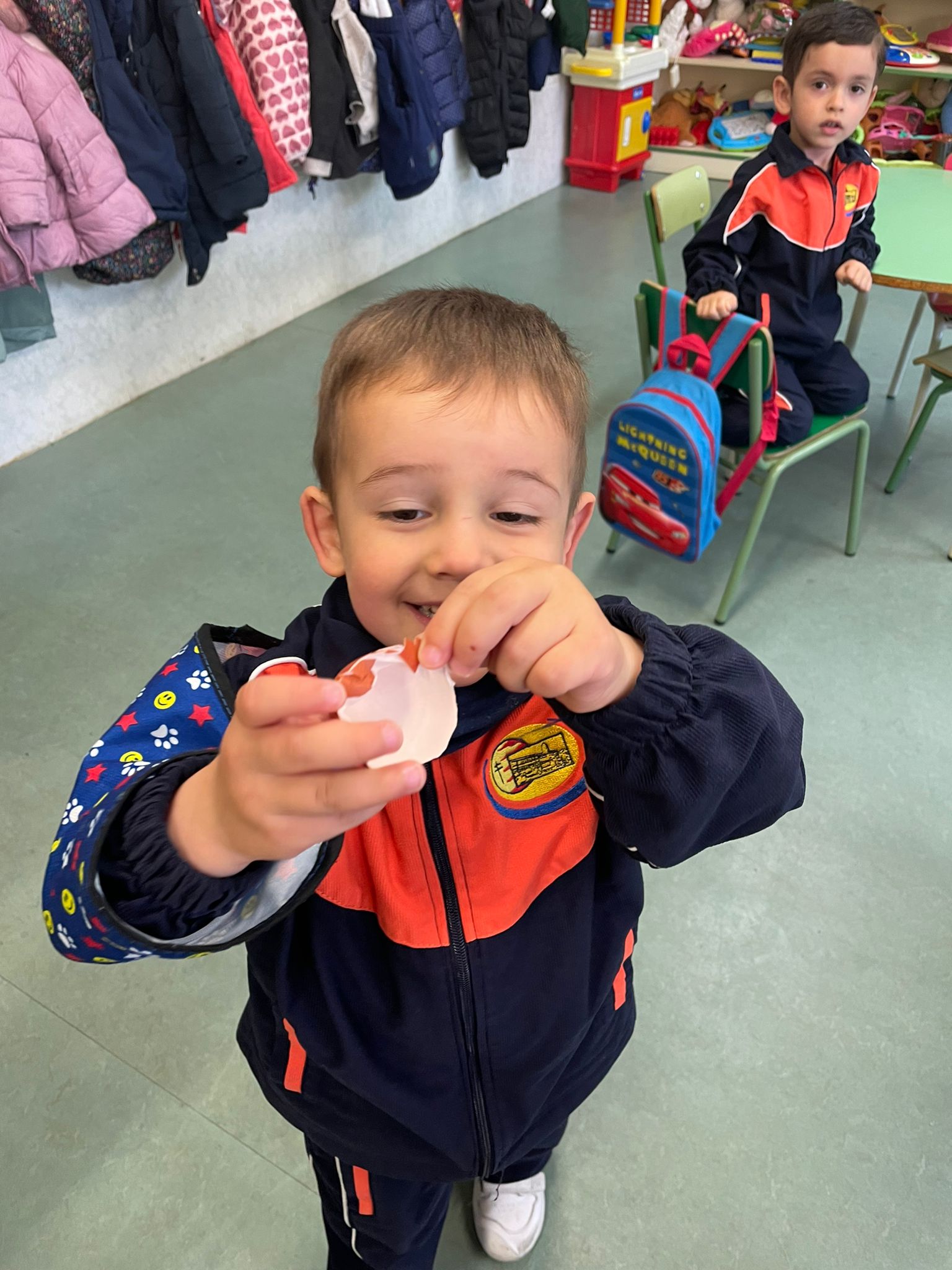 Hoy al llegar a clase el alumnado de 1º de Educación Infantil del Colegio Ntra. Sra. del Carmen de Valladolid nos hemos encontrado con cascaras de huevos por el suelo.