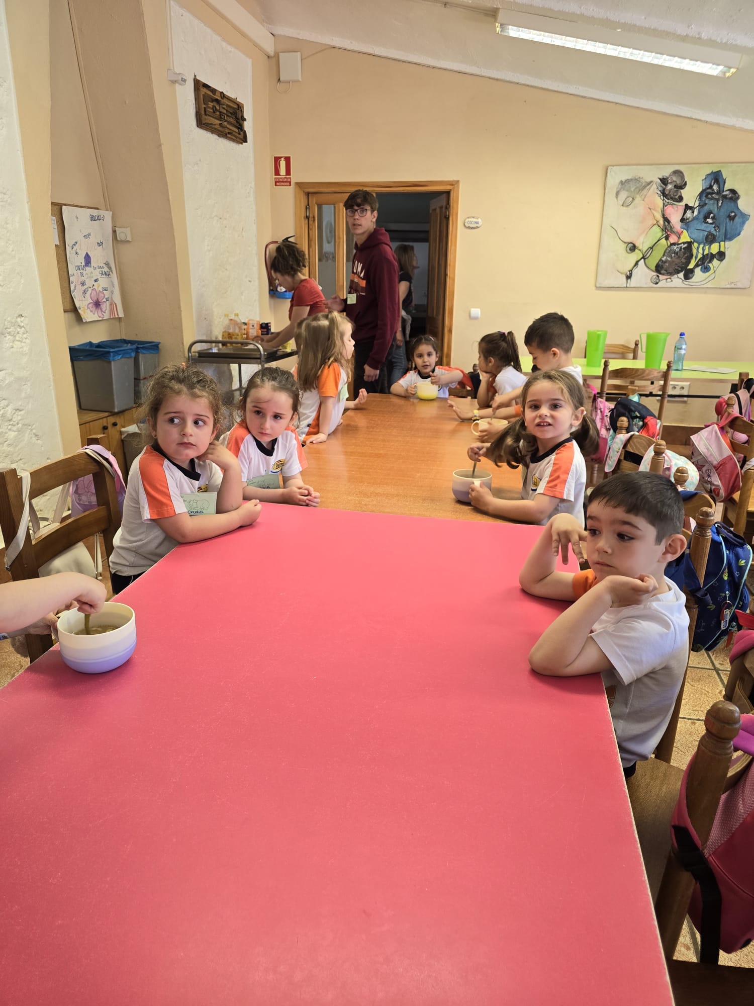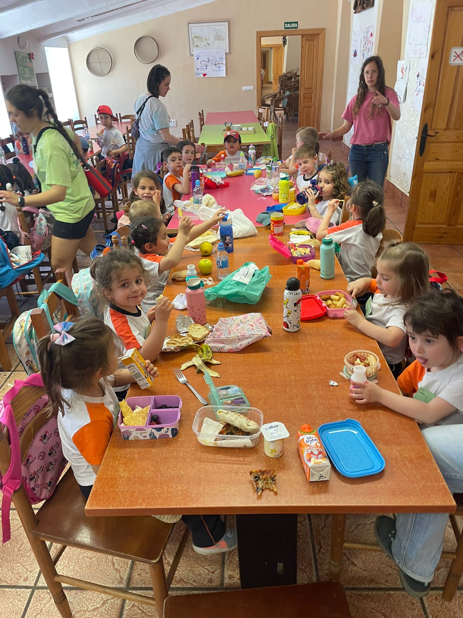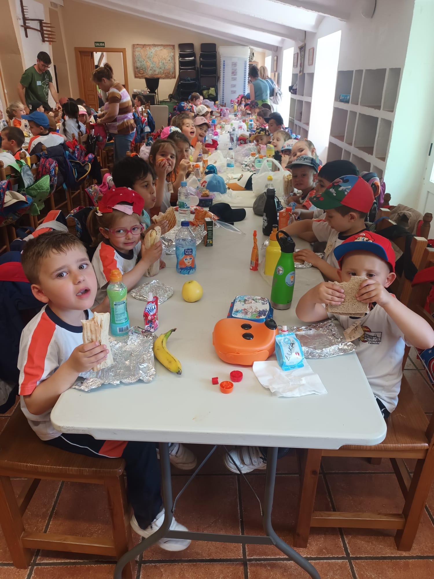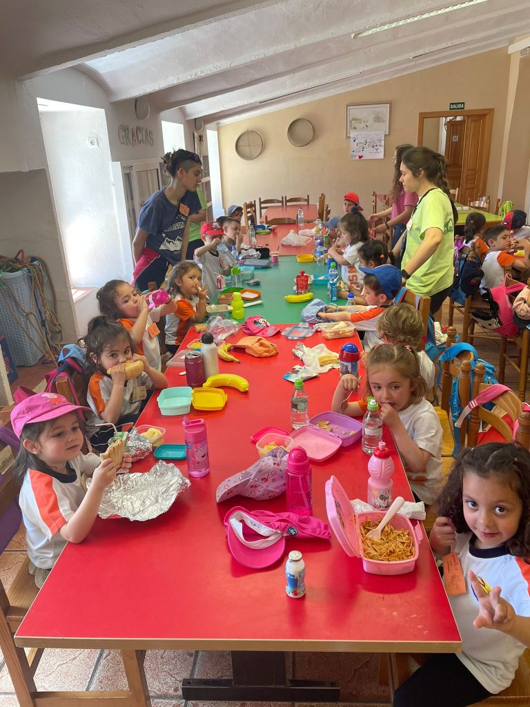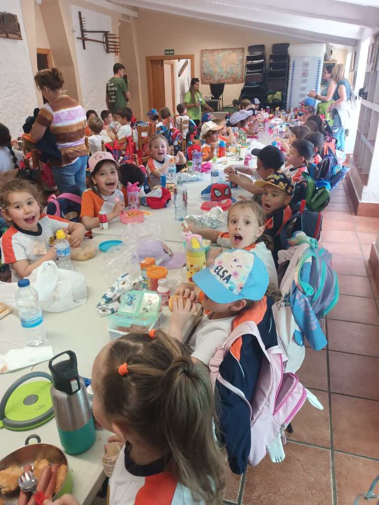 Al mediodía, llegó el momento de disfrutar de la comida. Todos juntos sentados en las mesas, los pequeños disfrutaron de un ambiente distendido y alegre, compartiendo risas y anécdotas sobre las actividades realizadas durante la mañana.