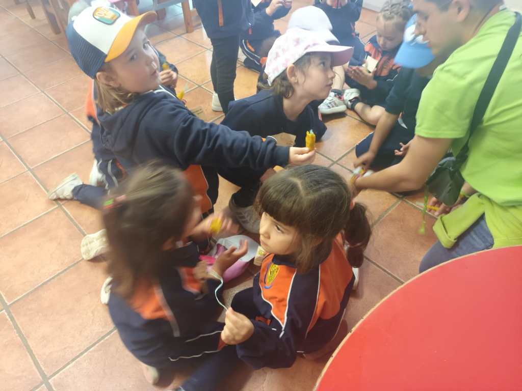 La creatividad y las habilidades manuales también fueron estimuladas en un taller de fabricación de velas. Los niños, guiados por los expertos de la granja, moldearon cera de abeja y crearon sus propias velas. Esta actividad no solo les enseñó sobre la utilidad y el proceso de creación de un objeto cotidiano, sino que también les permitió llevar a casa un recuerdo hecho por ellos mismos.