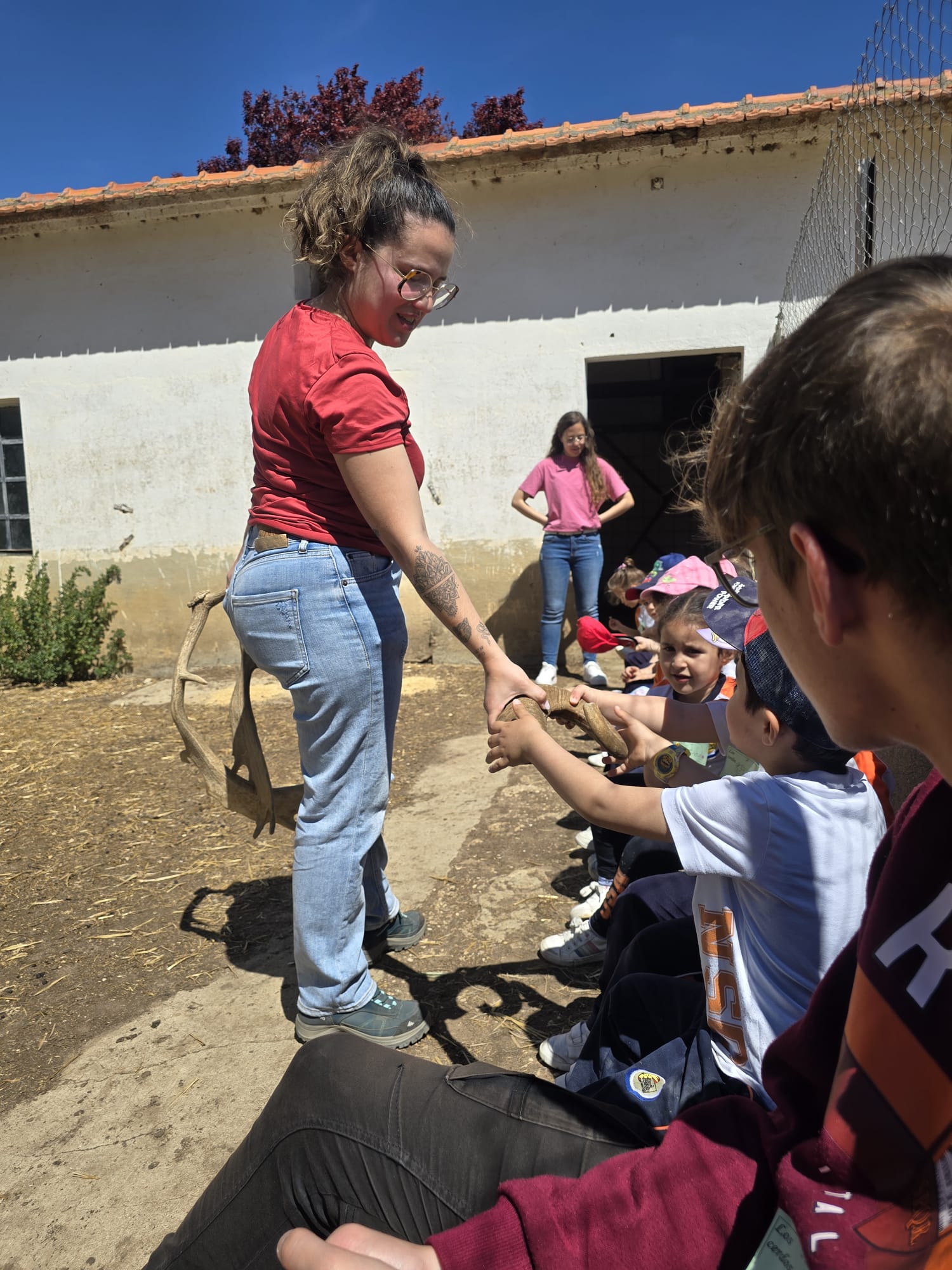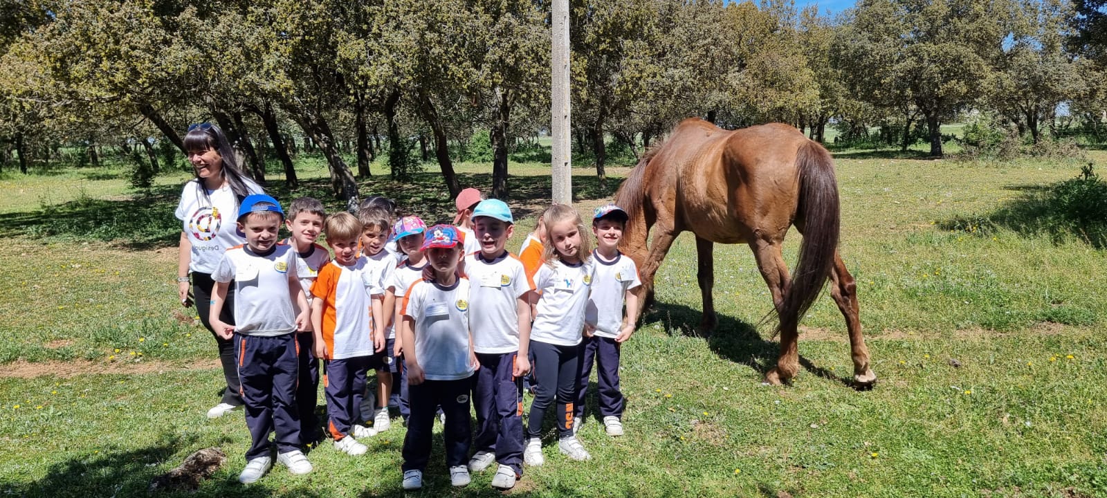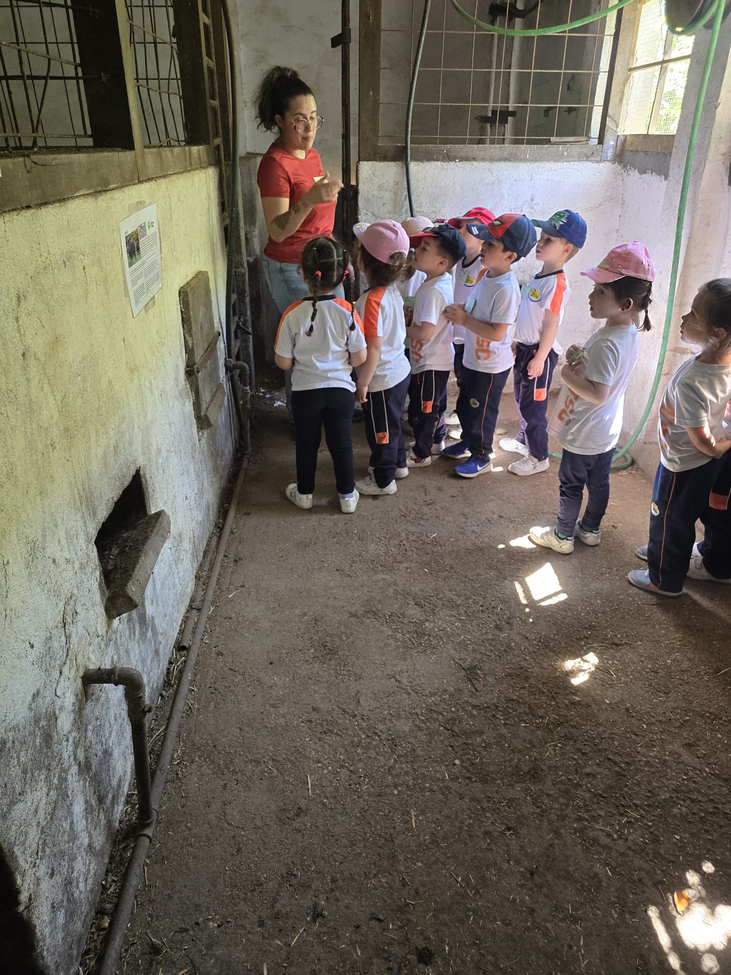 La primera actividad consistió en un recorrido por las instalaciones para conocer a los animales de la granja. Los niños, emocionados y con ojos llenos de curiosidad, tuvieron la oportunidad de ver de cerca vacas, caballos, ovejas, cabras, cerdos, gallinas, conejos, burros, zorros, ponys y gallos. Cada monitor se encargó de explicarles de manera sencilla y didáctica las características y cuidados de cada especie, fomentando el respeto y el amor por los animales.