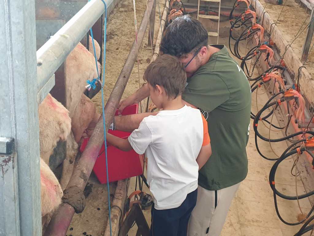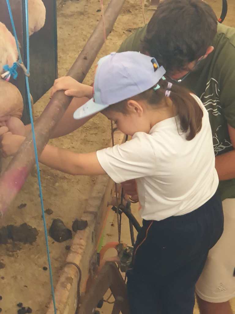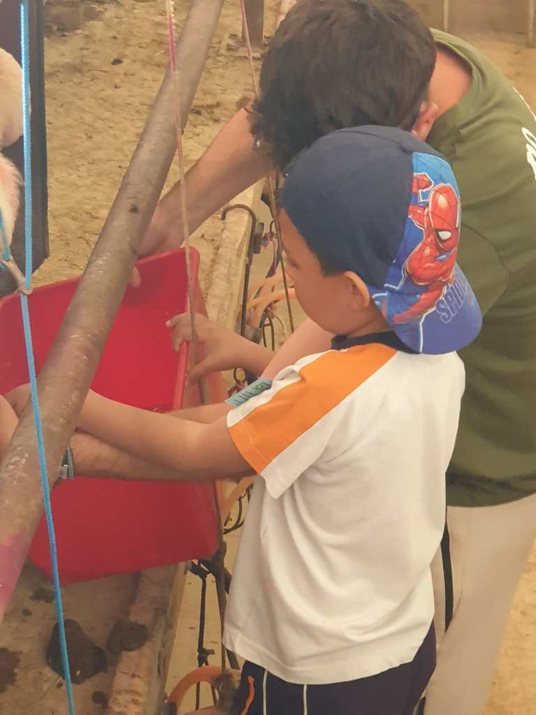 Uno de los momentos más emocionantes fue cuando los pequeños participaron en la actividad de ordeñar a una oveja. Con la ayuda de los granjeros, cada niño tuvo la oportunidad de probar a ordeñar, una experiencia que resultó ser tanto divertida como educativa. Esta actividad no solo les enseñó sobre la procedencia de la leche que consumen a diario, sino que también les permitió desarrollar habilidades de coordinación y confianza.