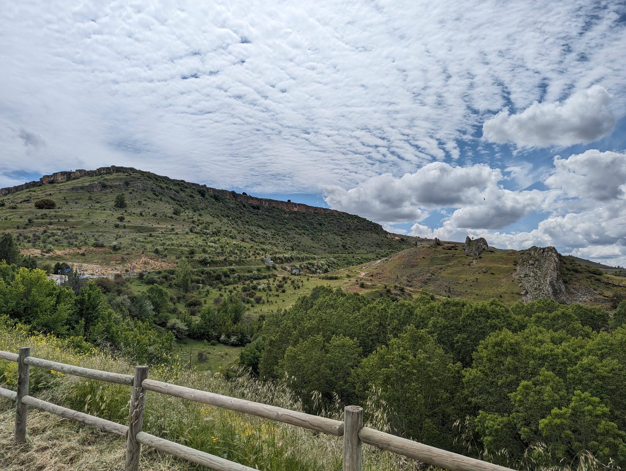 Tras la actividad en el pueblo, iniciamos la famosa Ruta de los Dos Ríos. Nuestro recorrido nos lleva a través de paisajes naturales impresionantes y nos permite admirar la belleza de la región. Pasamos por la histórica Puerta de la Fuerza, un vestigio de la antigua muralla que protegía el pueblo, y continuamos hasta el puente de Picazos, donde hacemos una parada para comer y descansar a la orilla del río Duratón.