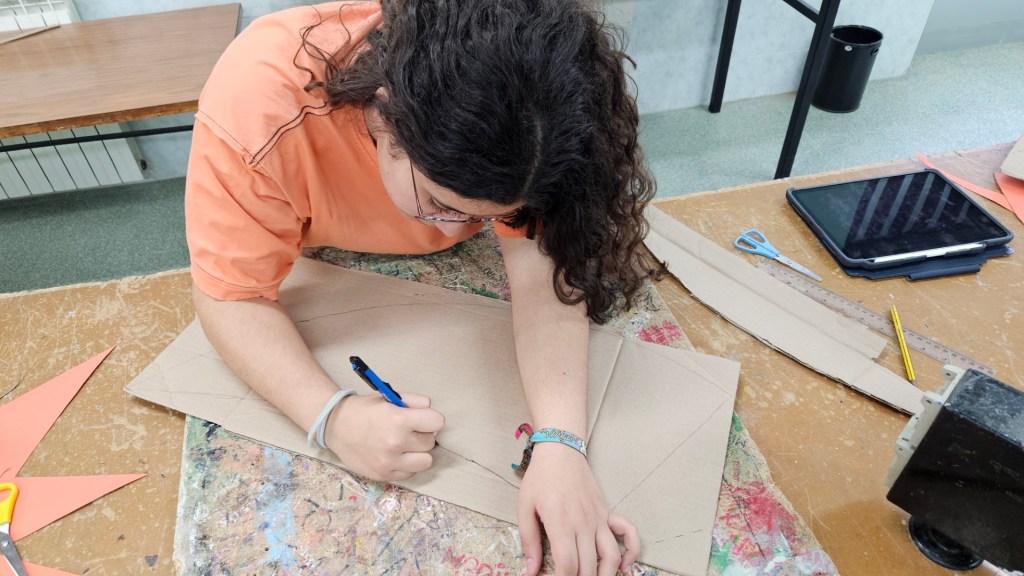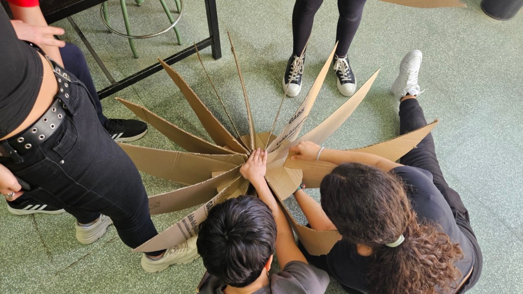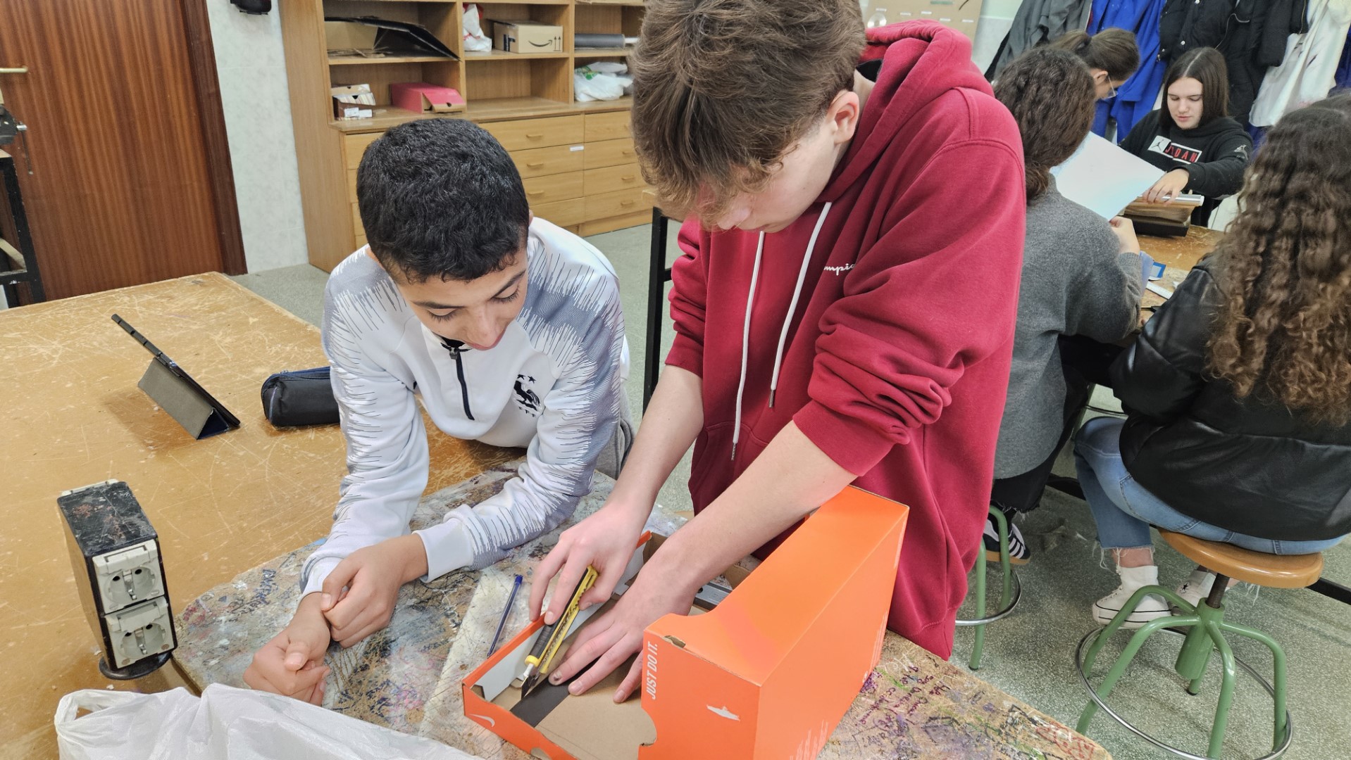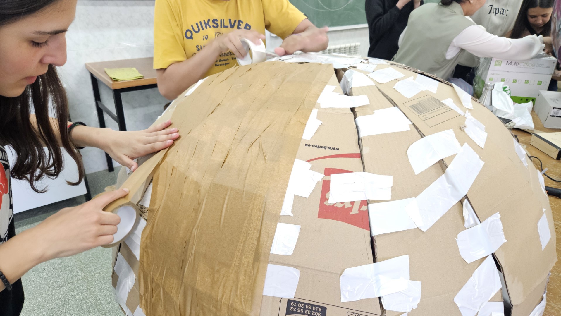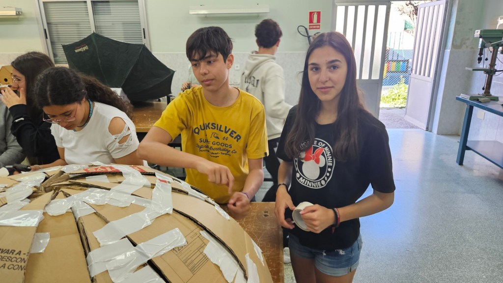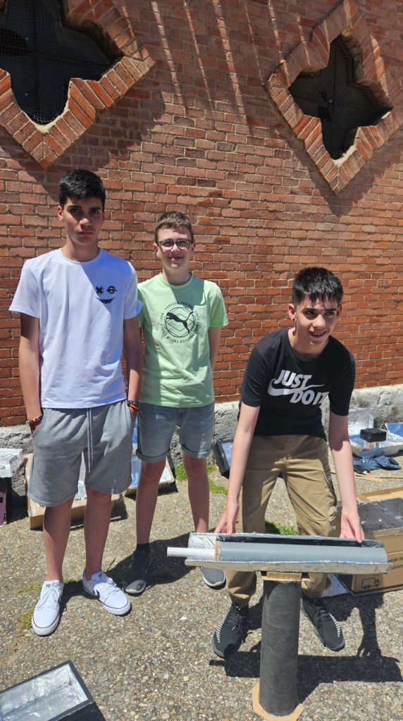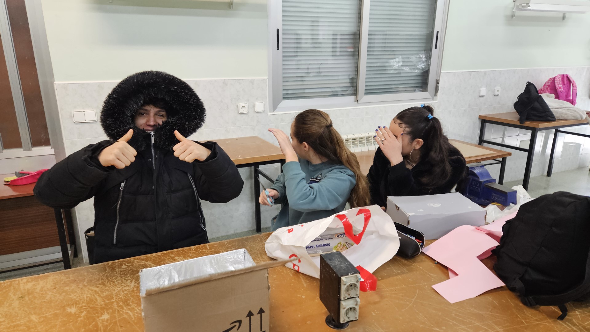 Esta fue una etapa crucial. Los alumnos hicieron bocetos y planos detallados de sus hornos solares, asegurándose de que cada diseño fuera práctico y eficiente. Decidieron los materiales que iban a usar, eligiendo siempre opciones reciclables y económicas, como cajas de cartón, papel de aluminio y plástico transparente. Planificaron cada paso de la construcción, distribuyendo tareas en sus equipos para asegurarse de que todos participaran y el trabajo se hiciera de manera ordenada.