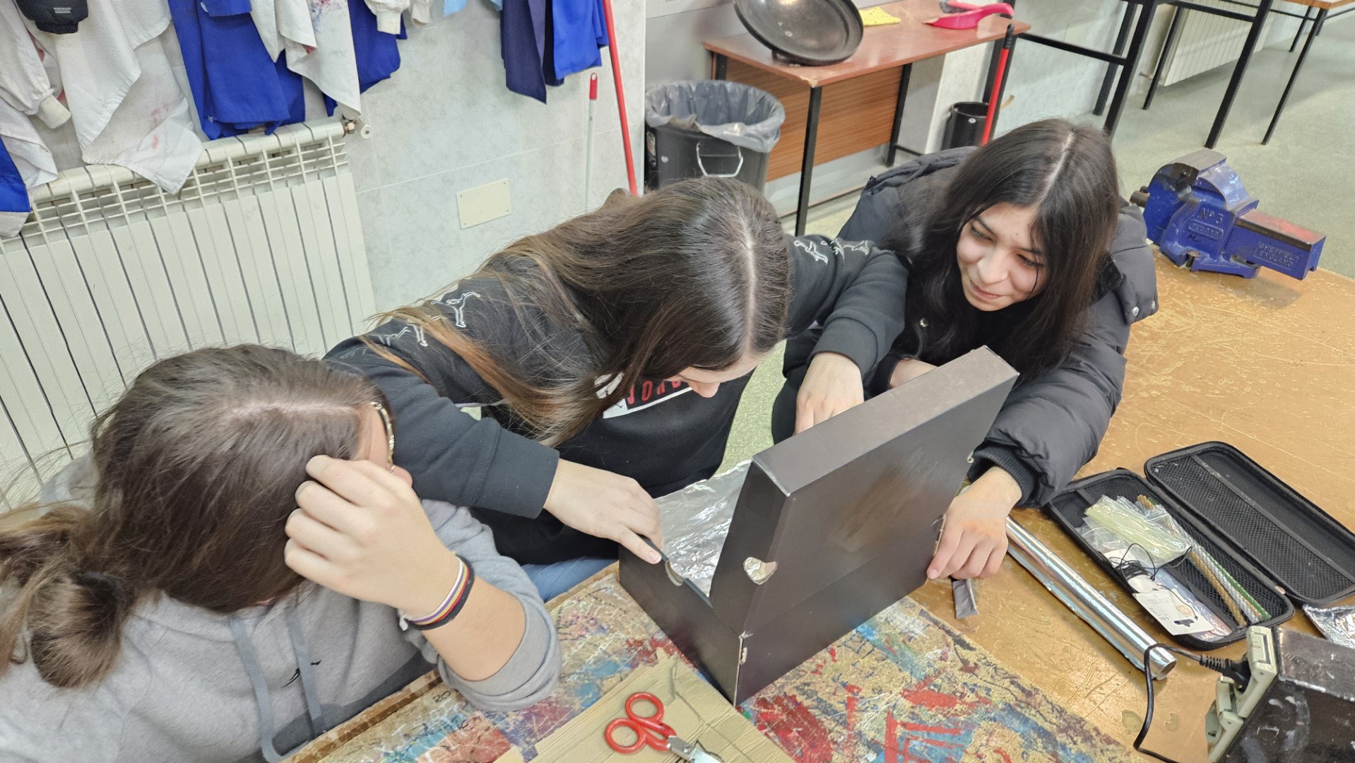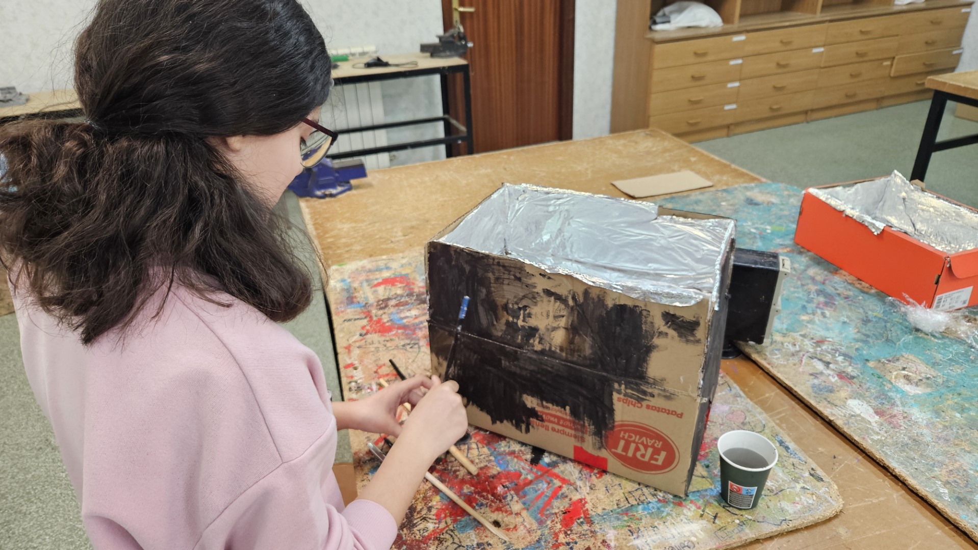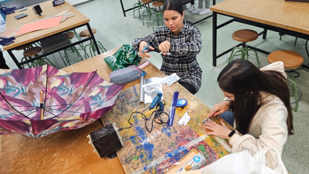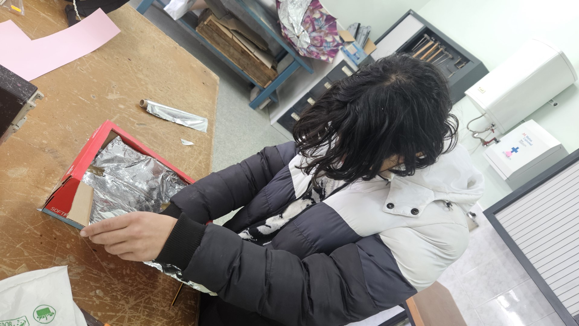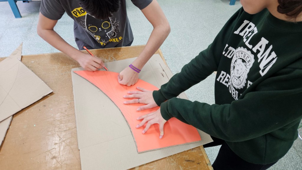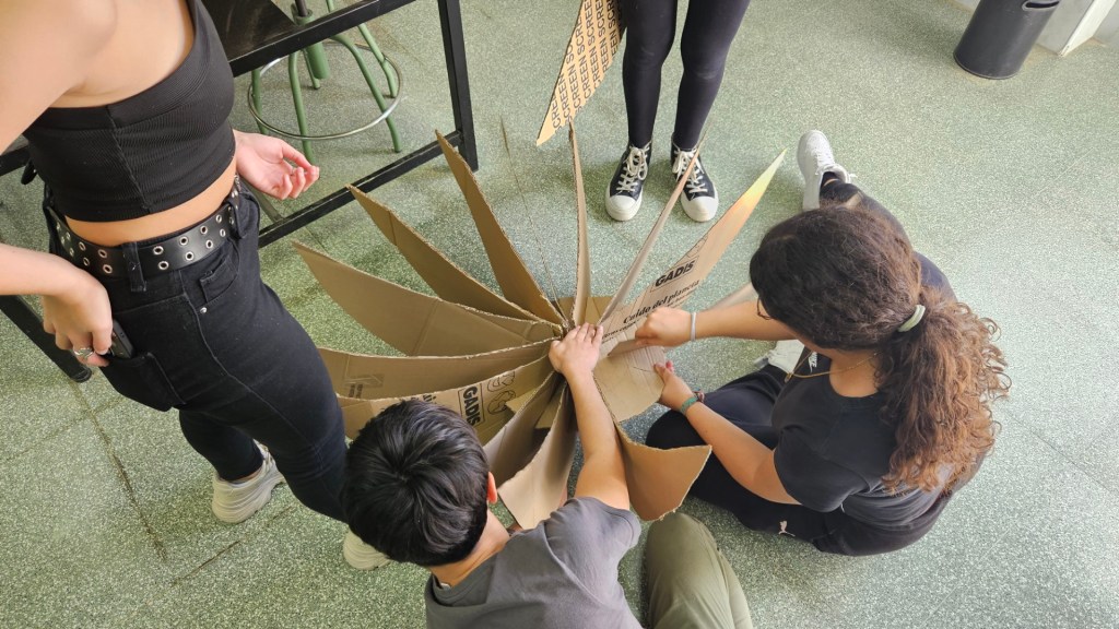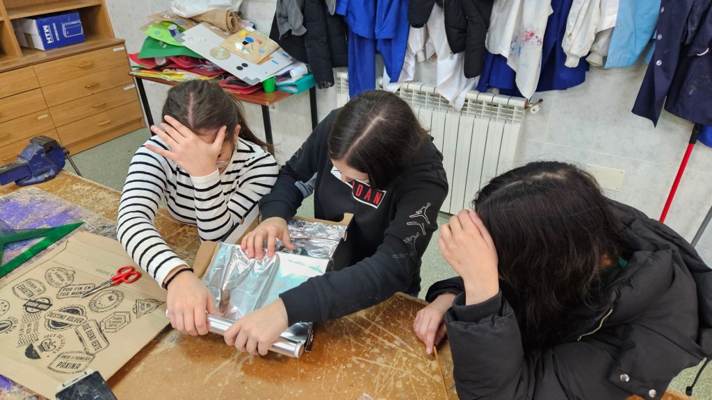 Esta fue una etapa crucial. Los alumnos hicieron bocetos y planos detallados de sus hornos solares, asegurándose de que cada diseño fuera práctico y eficiente. Decidieron los materiales que iban a usar, eligiendo siempre opciones reciclables y económicas, como cajas de cartón, papel de aluminio y plástico transparente. Planificaron cada paso de la construcción, distribuyendo tareas en sus equipos para asegurarse de que todos participaran y el trabajo se hiciera de manera ordenada.