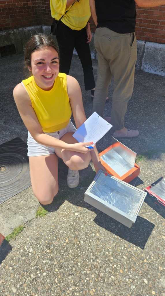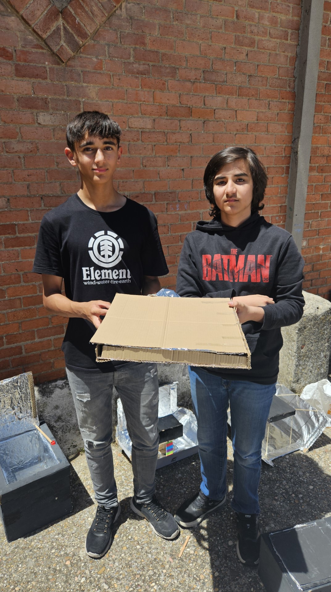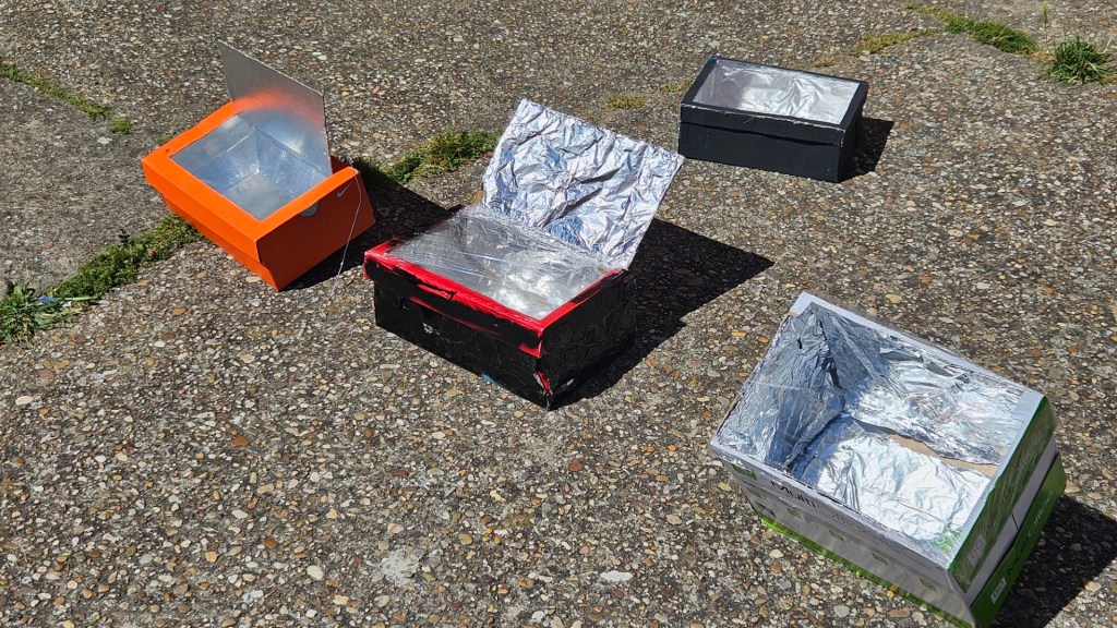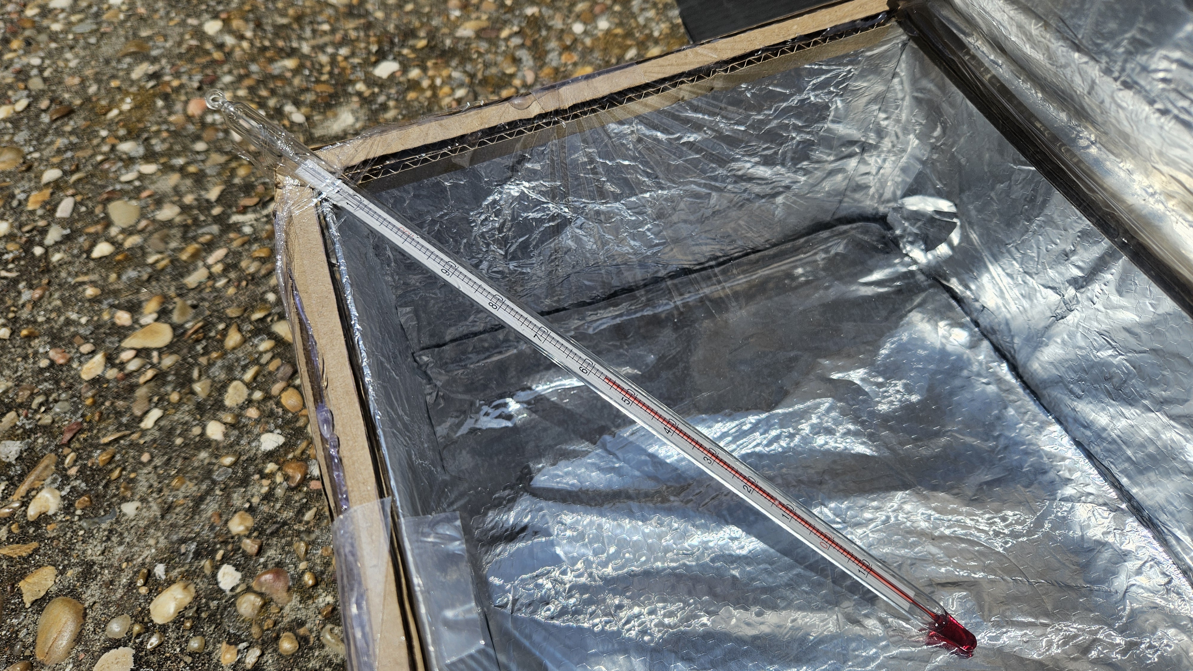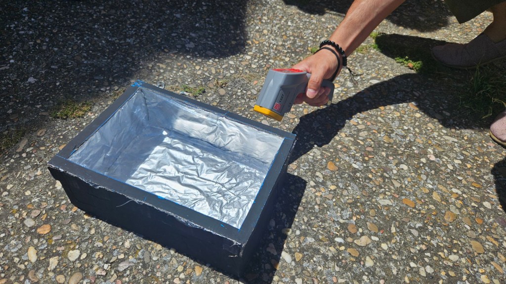 Para medir la eficiencia de sus hornos solares, los alumnos utilizaron termómetros y sondas de temperatura para registrar la temperatura interna.