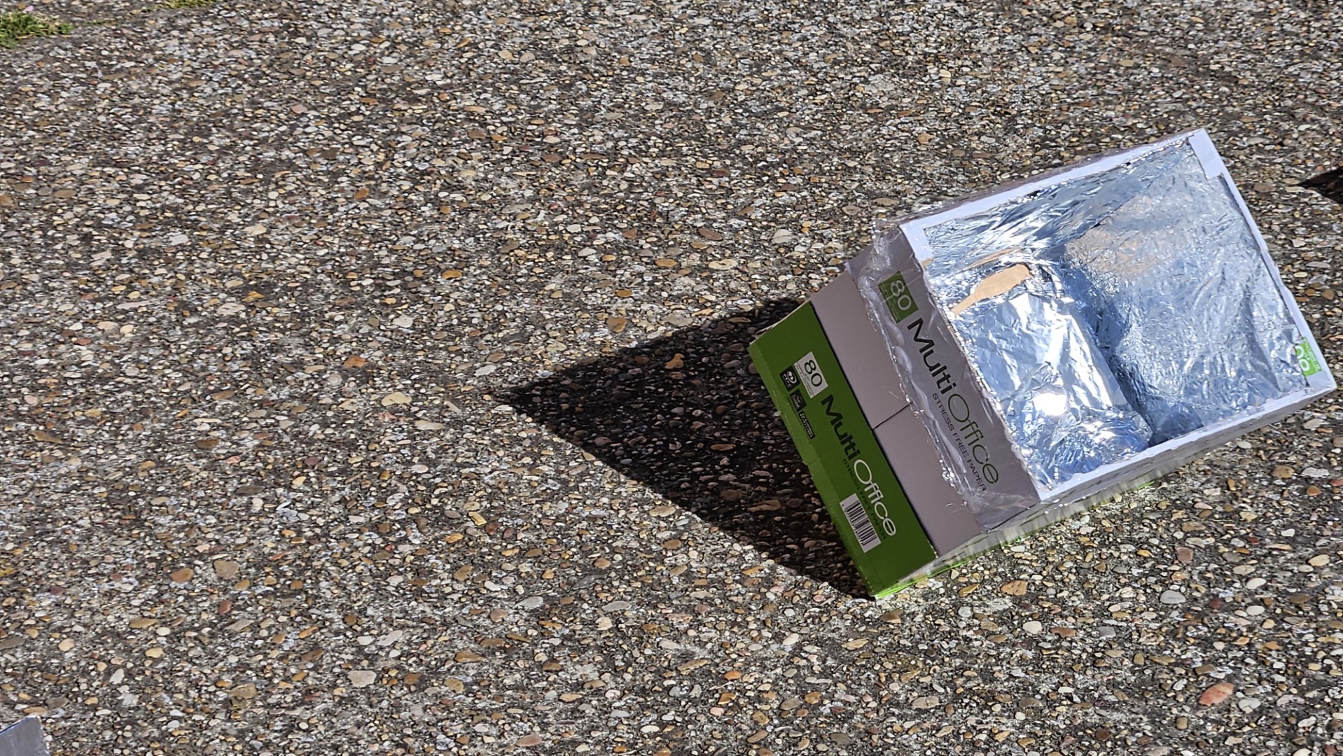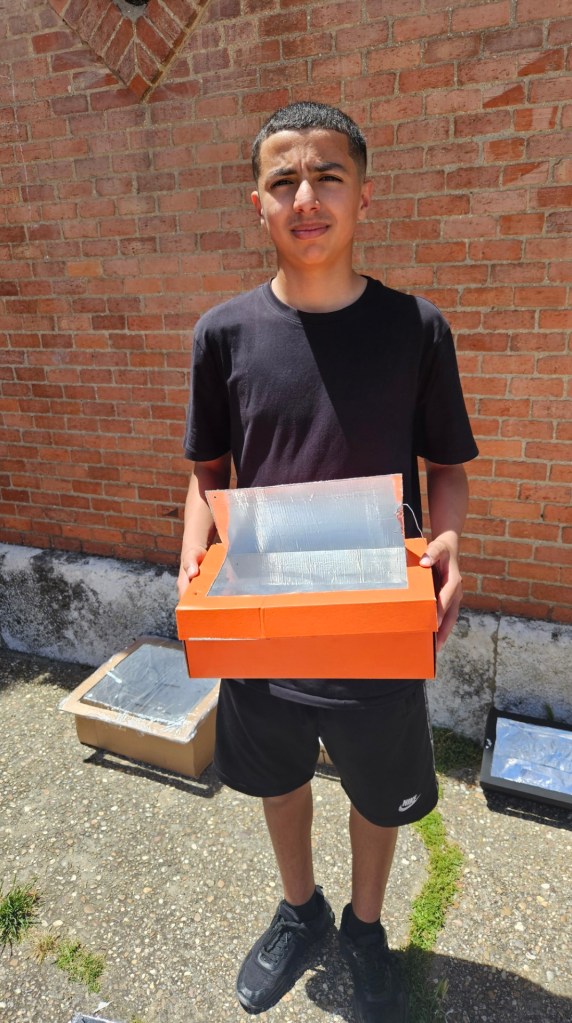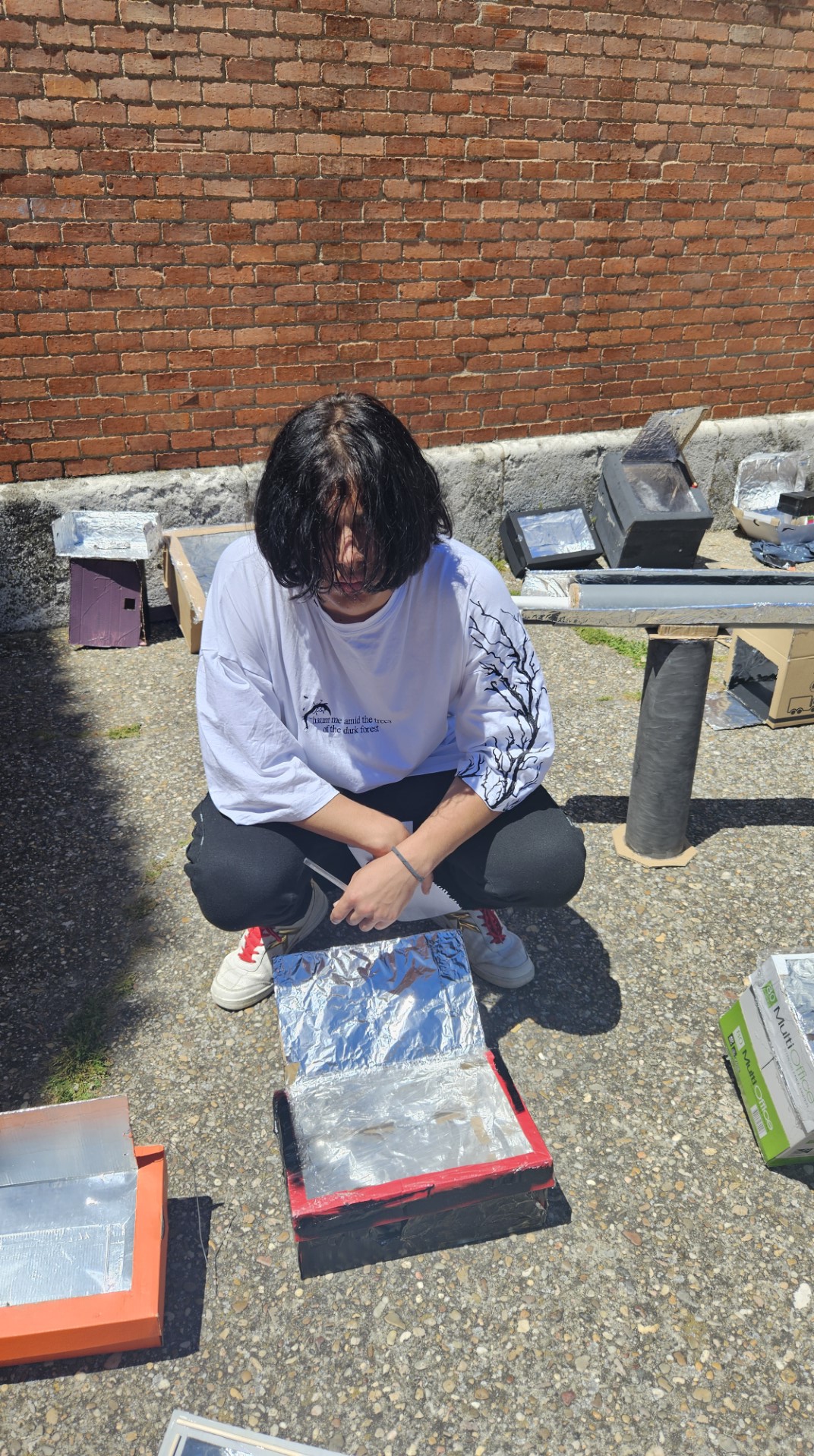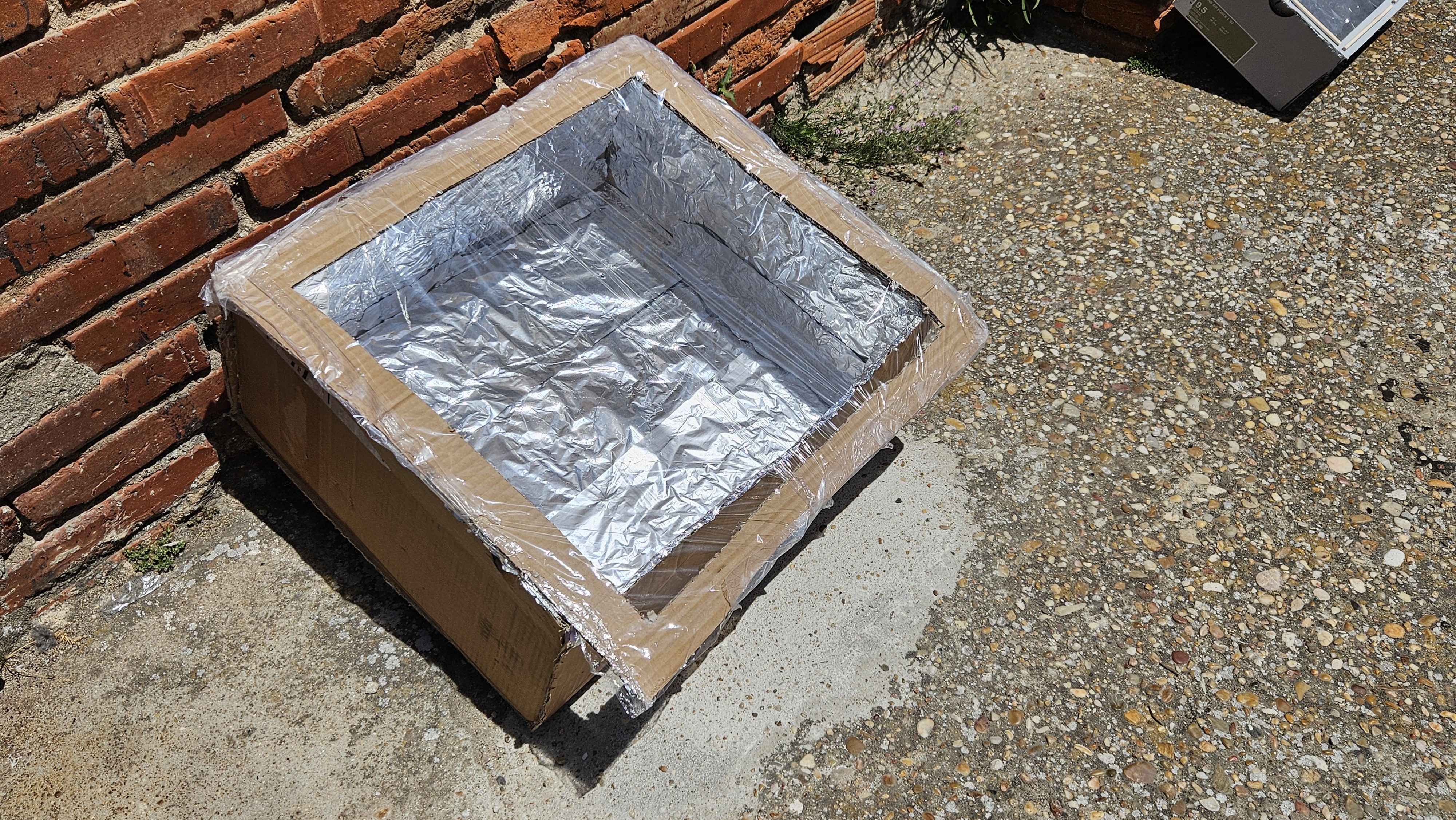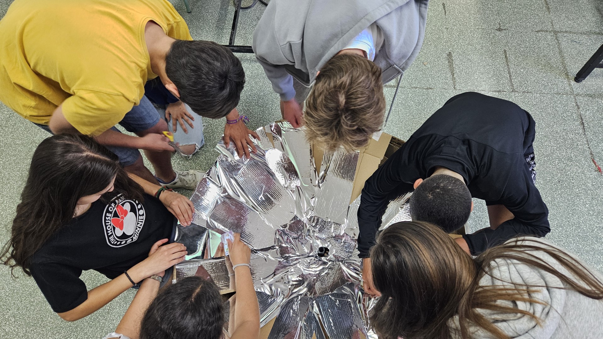 Aquí es donde la creatividad se puso a prueba. Los alumnos se dividieron en equipos y se pusieron manos a la obra para construir sus hornos solares. La mayoría utilizaron cajas de cartón para la estructura, forradas por dentro con papel de aluminio para reflejar el calor. Cubrieron la parte superior con plástico transparente para permitir la entrada de la luz solar y mantener el calor dentro. Lo que se llama efecto invernadero. Usaron cinta adhesiva para asegurar todas las partes y crear un sello hermético. Fue un proceso de prueba y error, donde cada equipo tuvo que ajustar sus diseños para mejorar la eficiencia del horno.