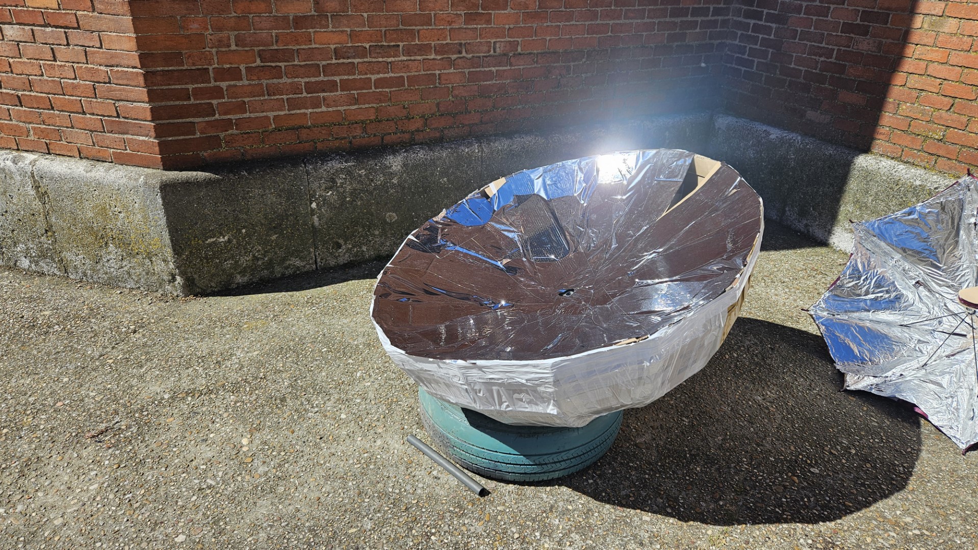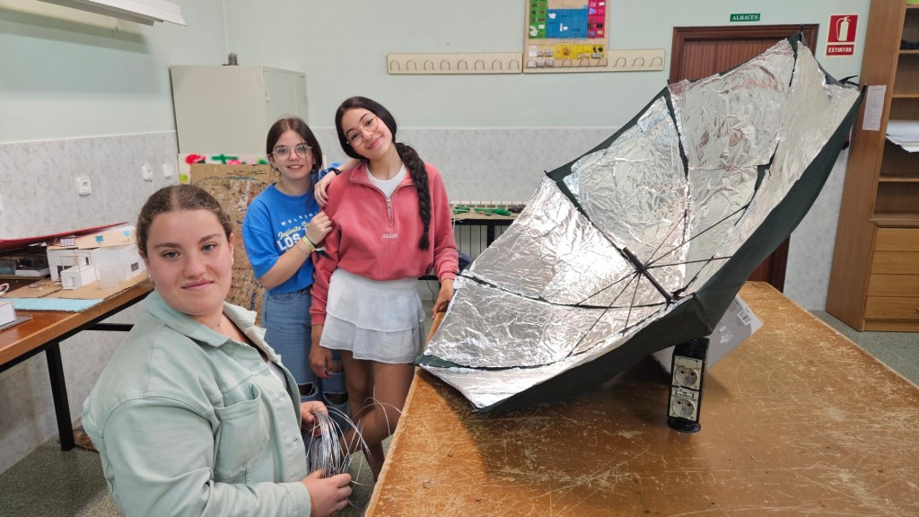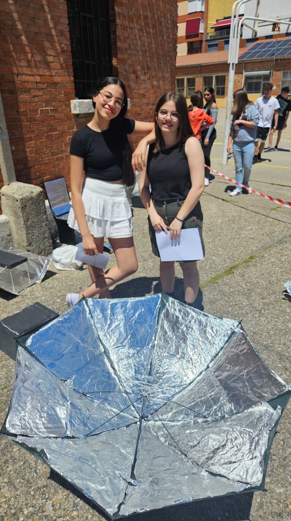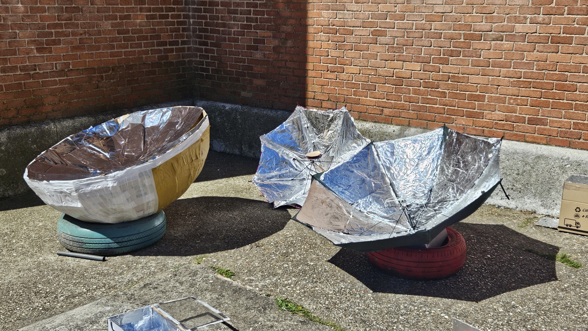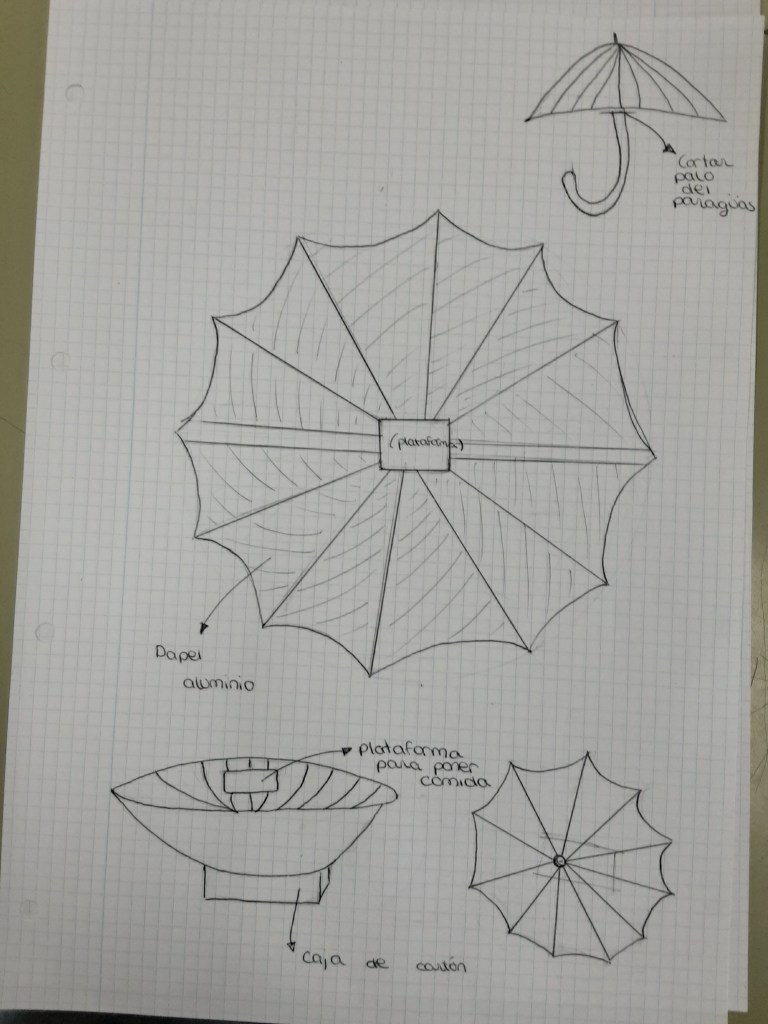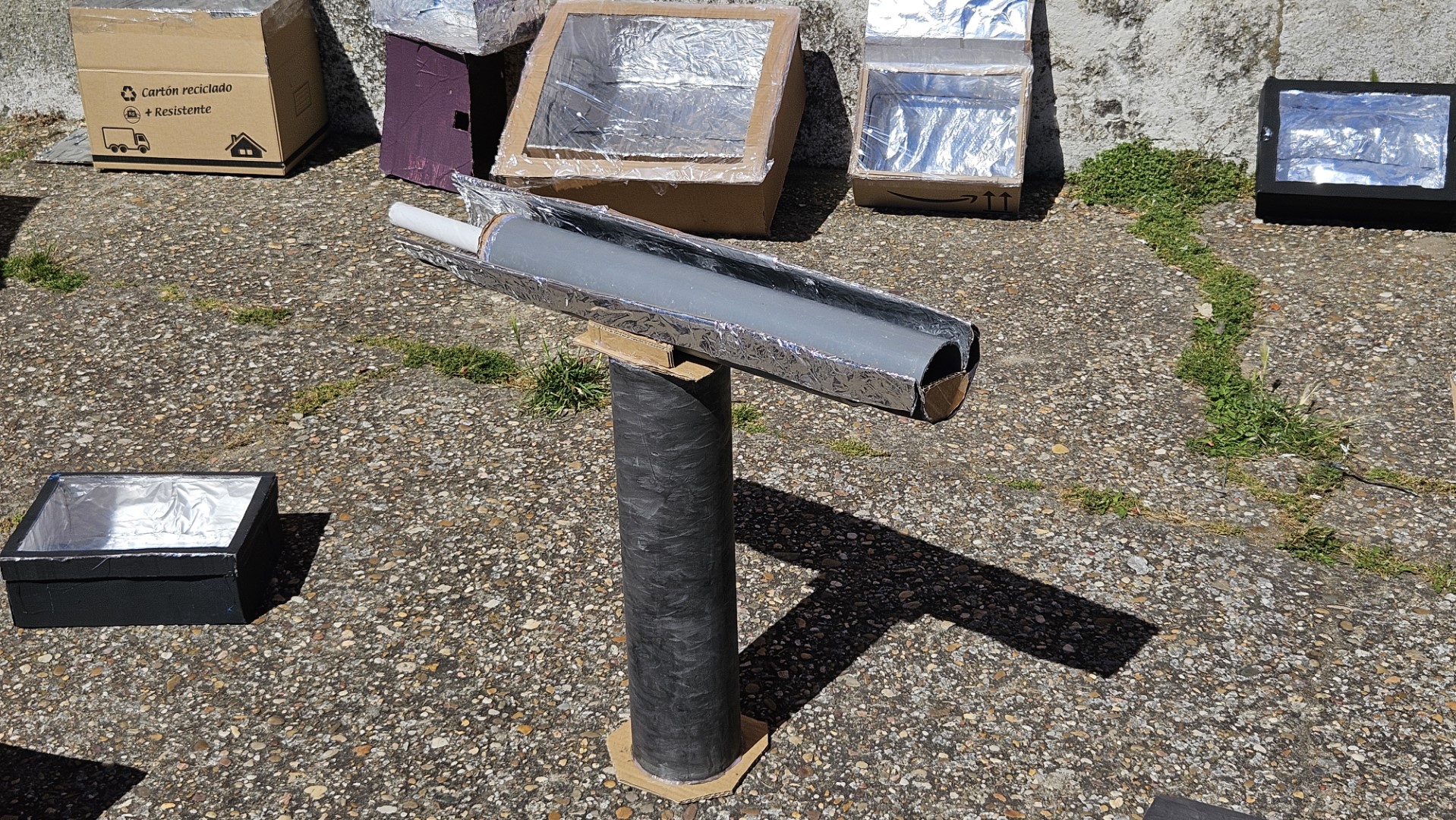 Un par de grupos decidieron construir su horno solar utilizando paraguas. Cubrieron la parte superior con material reflectante y transparente para maximizar la captura de energía solar. Esta elección de diseño no solo fue ingeniosa sino también práctica, ya que permitió ajustar la orientación del horno para seguir la trayectoria del sol durante el día.