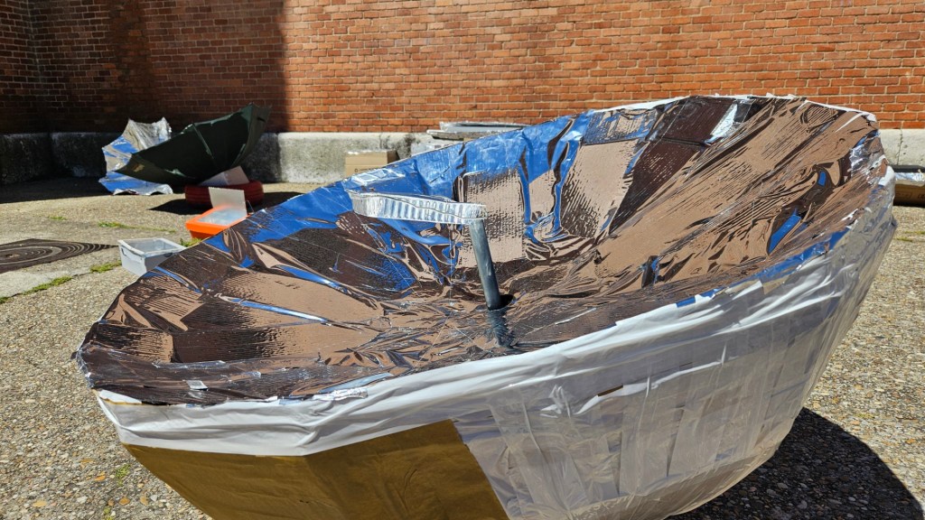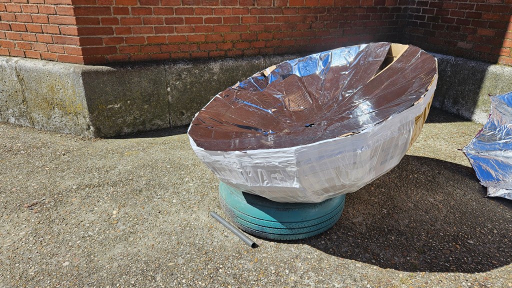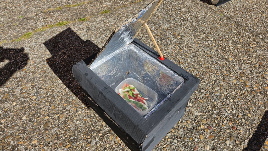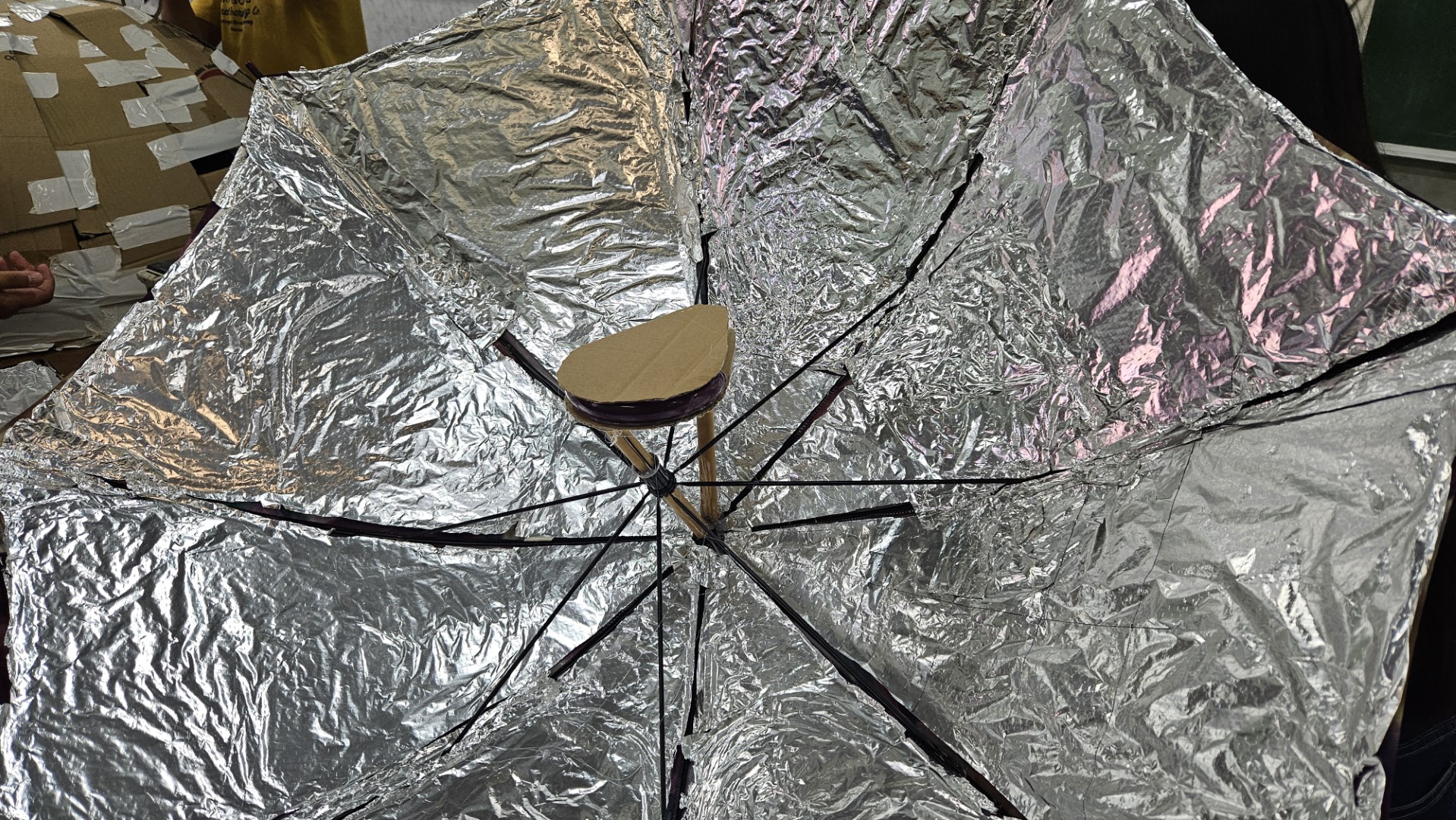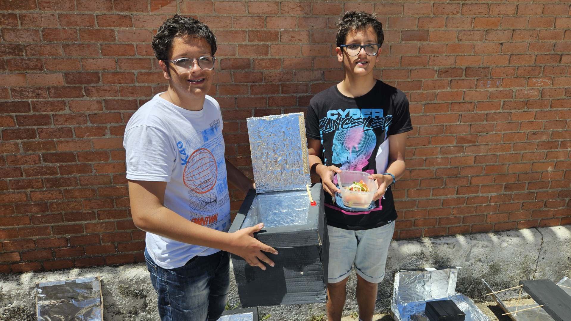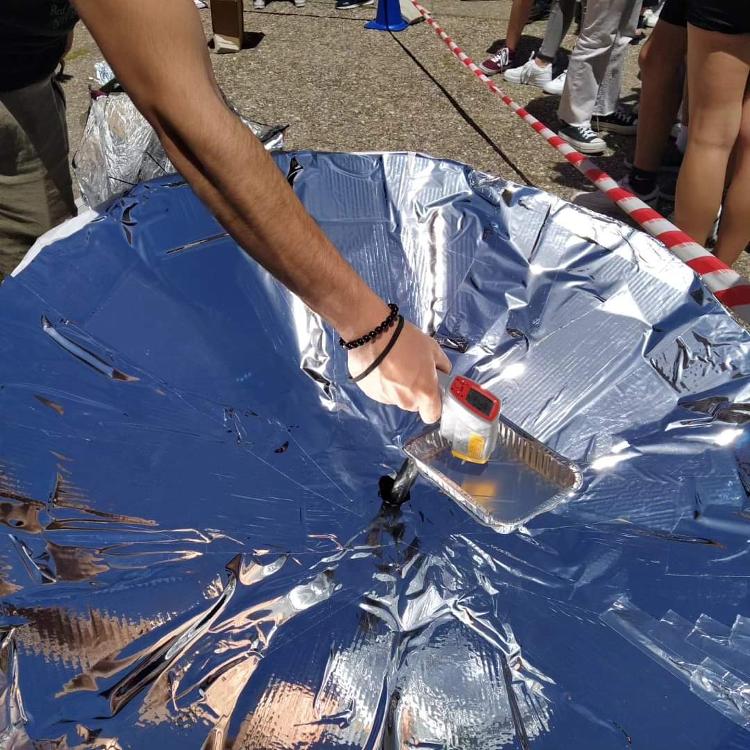 Un par de grupos decidieron construir su horno solar utilizando paraguas. Cubrieron la parte superior con material reflectante y transparente para maximizar la captura de energía solar. Esta elección de diseño no solo fue ingeniosa sino también práctica, ya que permitió ajustar la orientación del horno para seguir la trayectoria del sol durante el día.