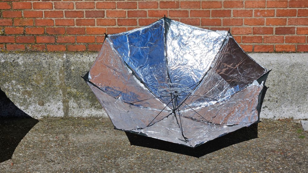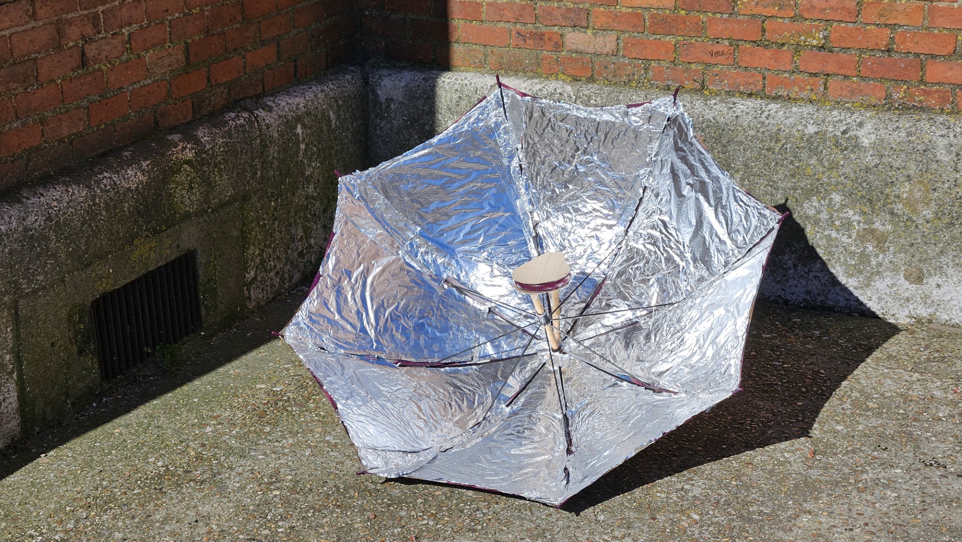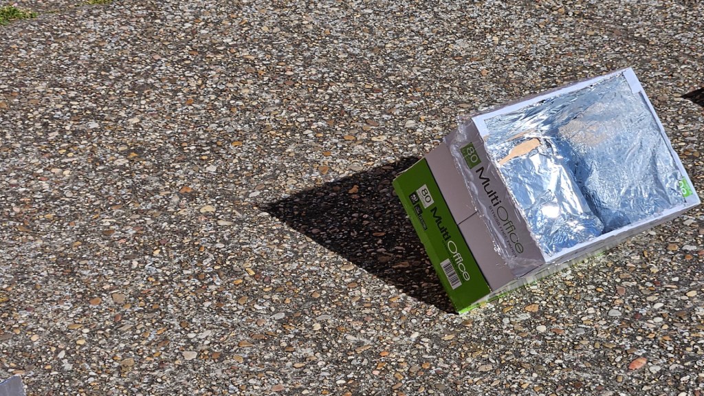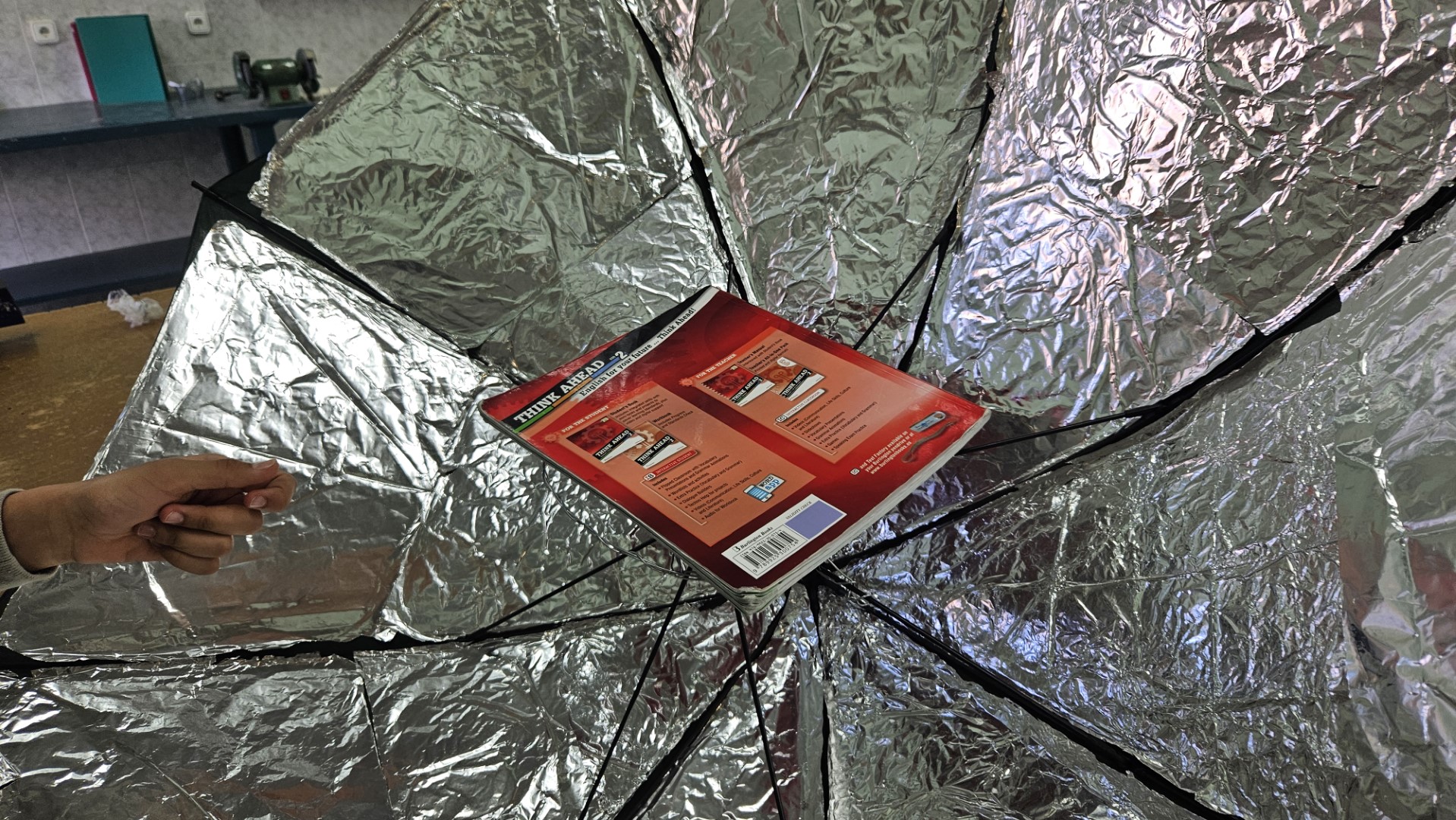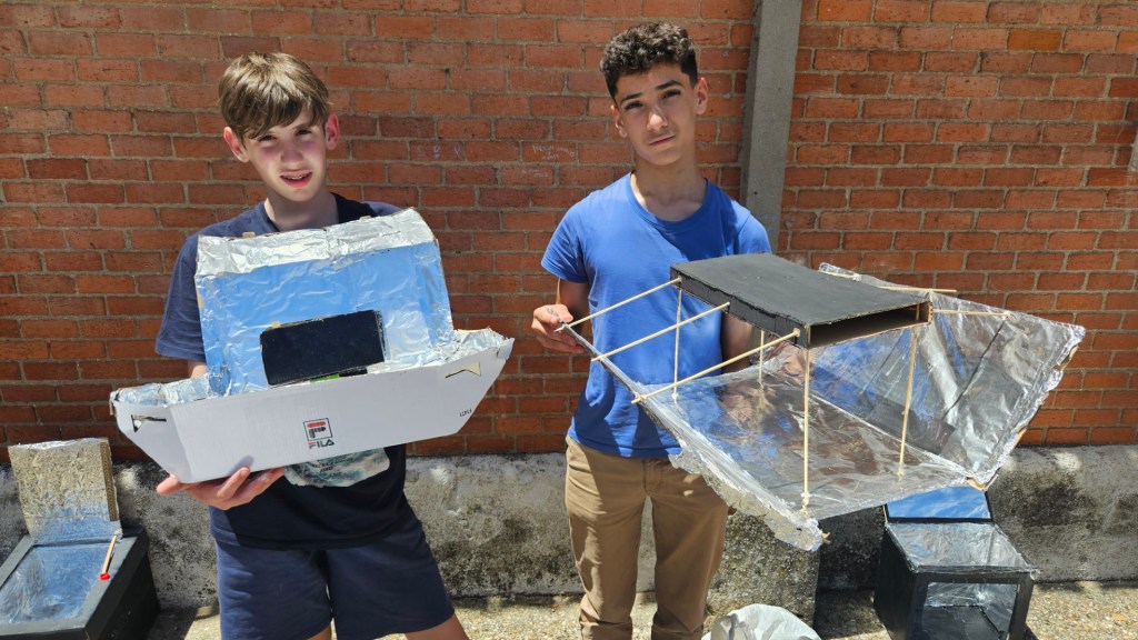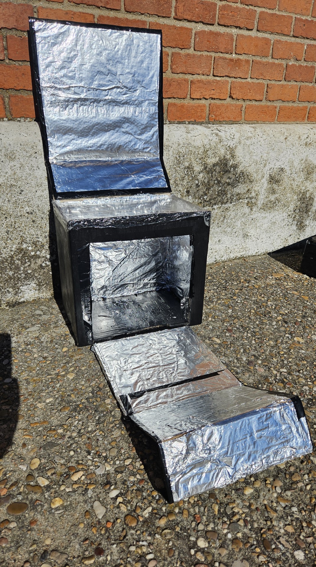 Un par de grupos decidieron construir su horno solar utilizando paraguas. Cubrieron la parte superior con material reflectante y transparente para maximizar la captura de energía solar. Esta elección de diseño no solo fue ingeniosa sino también práctica, ya que permitió ajustar la orientación del horno para seguir la trayectoria del sol durante el día.