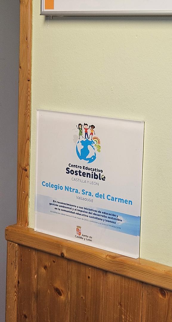 El evento en el que tuvo lugar esta intervención se realizó como parte de la entrega de los reconocimientos «Sello Educativo Sostenible». Estos premios, otorgados por la Junta de Castilla y León, destacan a las instituciones educativas que demuestran un compromiso ejemplar con la educación ambiental y la sostenibilidad. El Colegio Nuestra Señora del Carmen recibió este Sello Educativo Sostenible de la Junta de Castilla y León hace seis años, en reconocimiento a su Sistema de Educación y Gestión Ambiental basado en la norma ISO14001. Esta certificación subraya el compromiso del colegio con prácticas sostenibles y de alta calidad. Como una muestra más de su compromiso el Centro lleva nueve años inscribiendo su huella de carbono en el Ministerio de Medioambiente y Transición Ecológica, demostrando su liderazgo y compromiso continuado con la sostenibilidad.