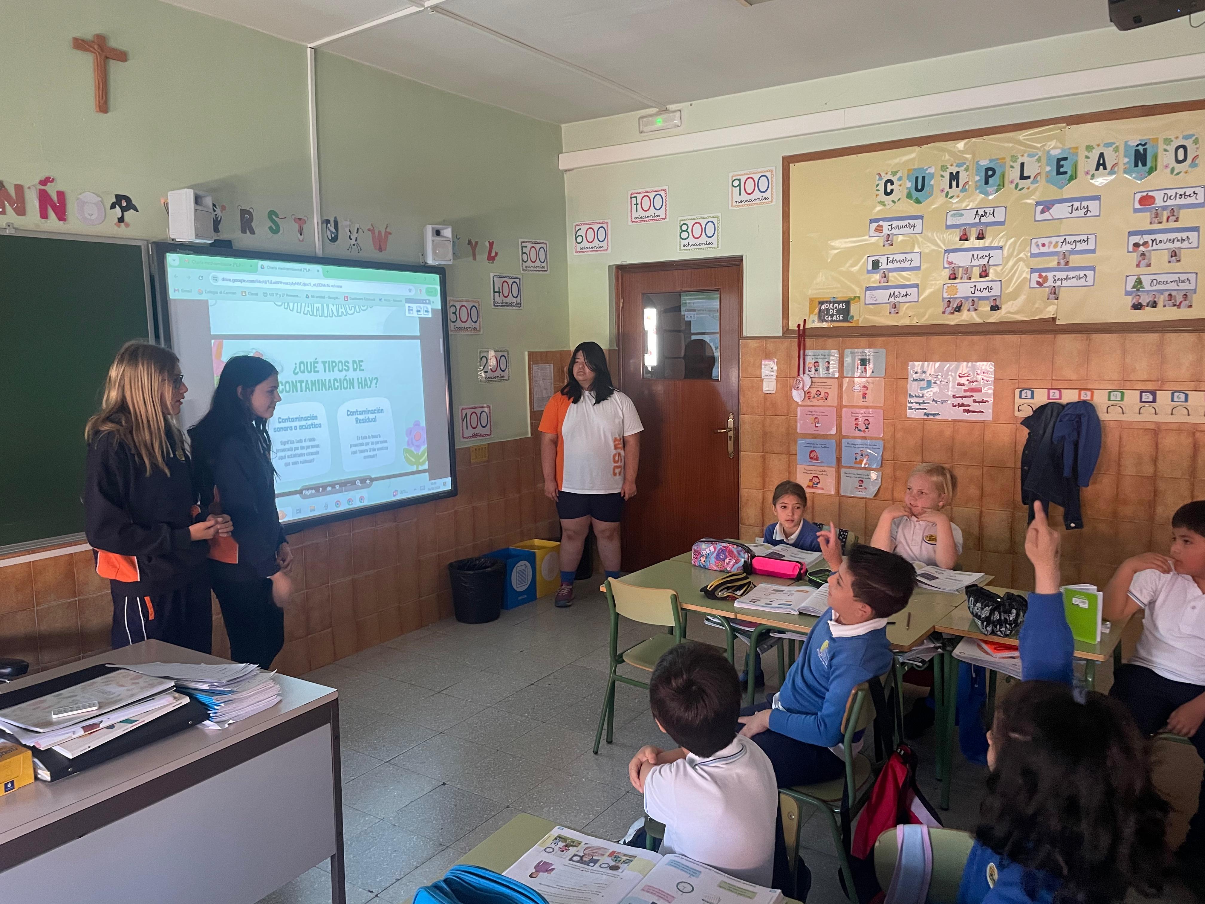 Integrantes del Comité Ambiental de Educación Secundaria del Colegio Ntra. Sra. del Carmen de Valladolid hemos hecho una visita a nuestros compañeros, alumnos de 2º y 3º de Educación Primaria.