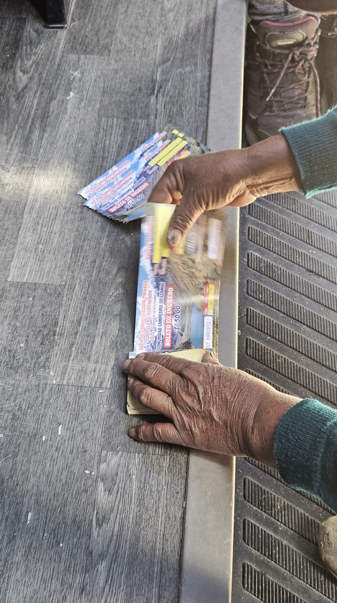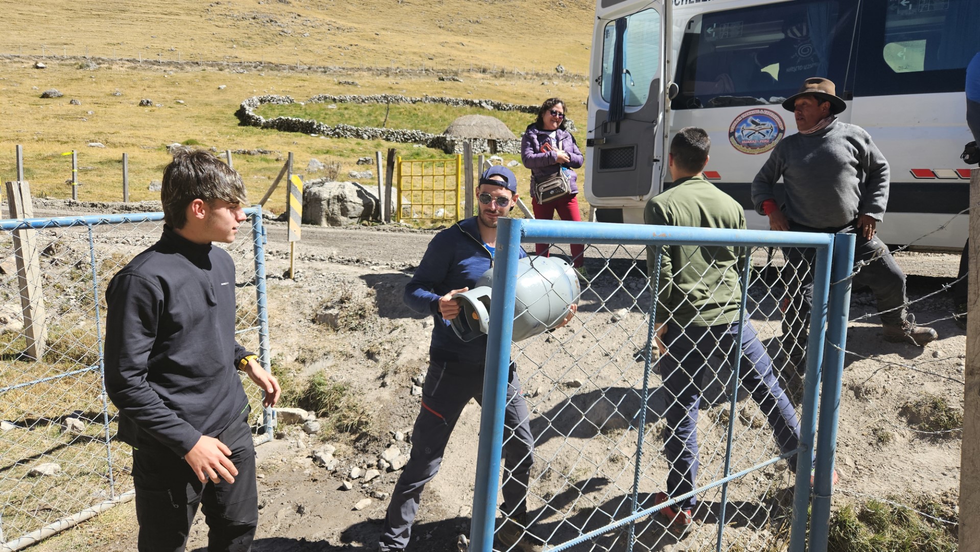 Durante el recorrido por carretera, pasamos por pequeños pueblos como Llamac y Pocpa, donde las comunidades locales nos recibieron con una tradición particular: el cobro de una entrada destinada al mantenimiento de las sendas y los servicios de los campamentos. En cada comunidad, debemos registrarnos en un libro de firmas, un recordatorio de la importancia de estas rutas para las economías locales. Nos enteramos que estas sendas fueron construidas gracias a la presencia de una mina de zinc y cobre, que ha cambiado significativamente la vida de los habitantes.
