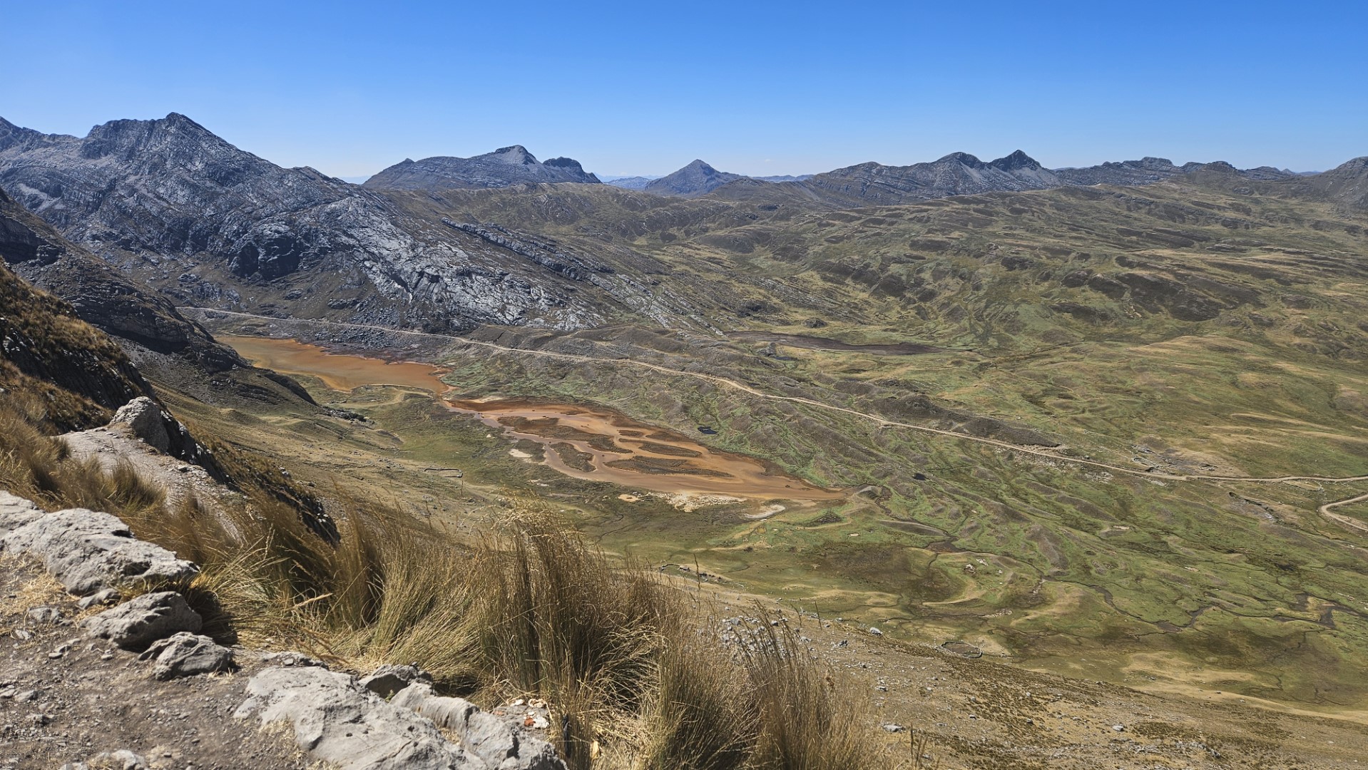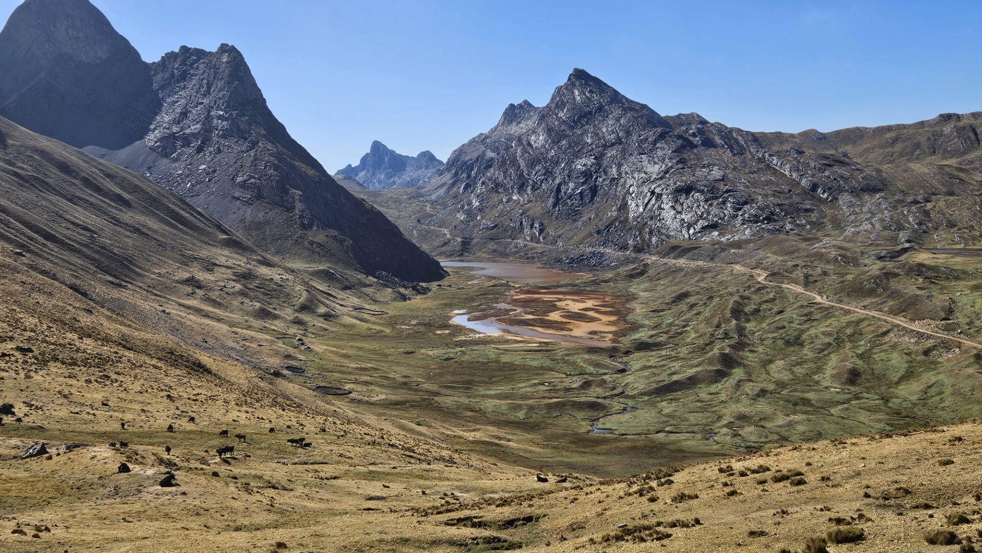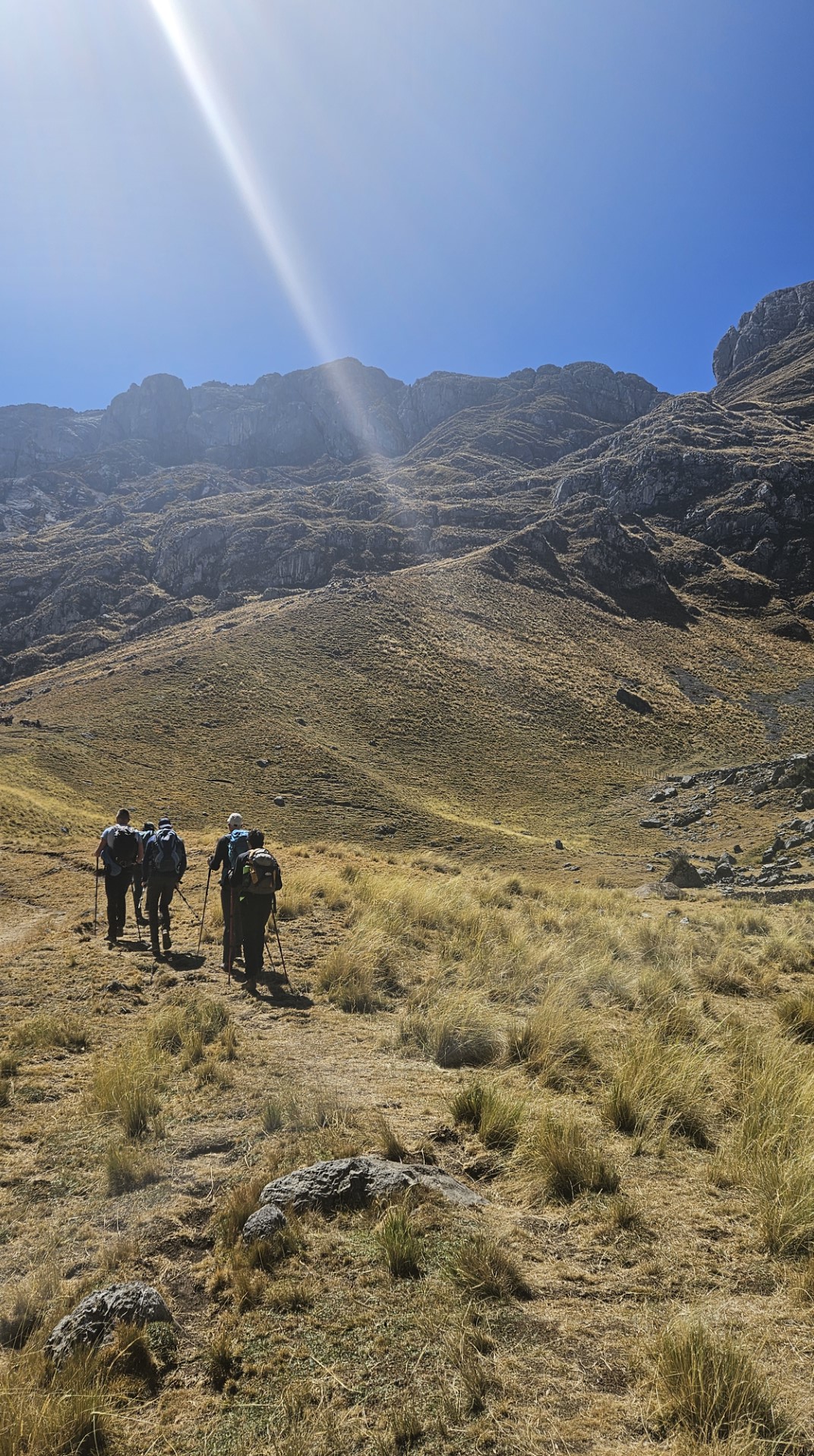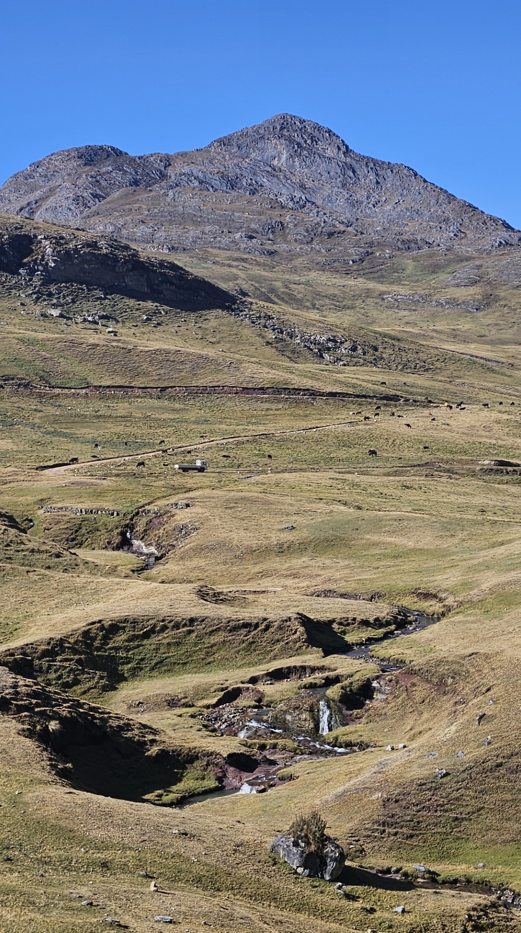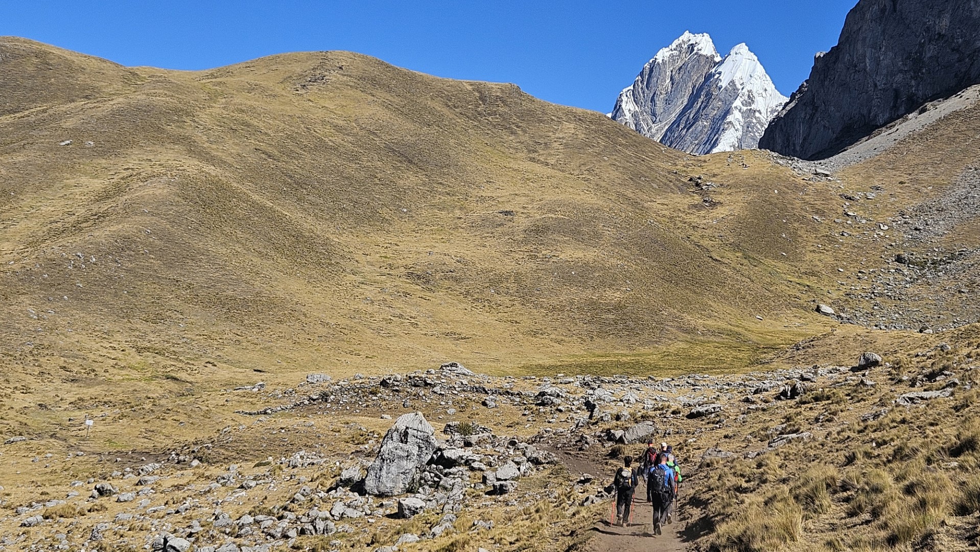 El primer desafío serio del día comienza pronto, el Paso Cacananpunta, a 4700 metros de altitud. El ascenso es duro, especialmente para las mulas que transportan el equipo, pero la recompensa es un paisaje espectacular que nos deja sin aliento.