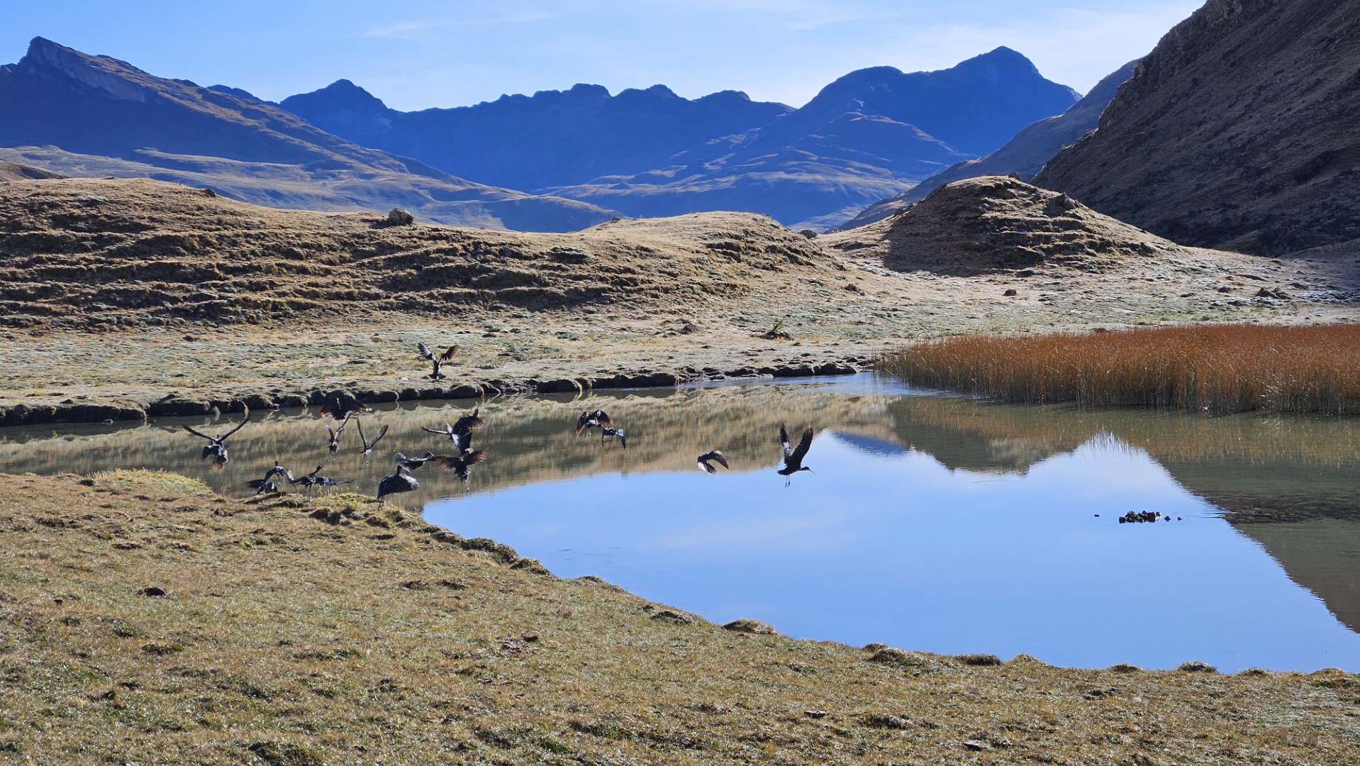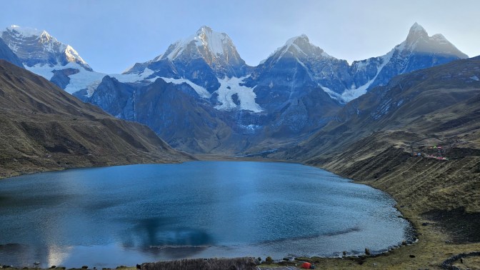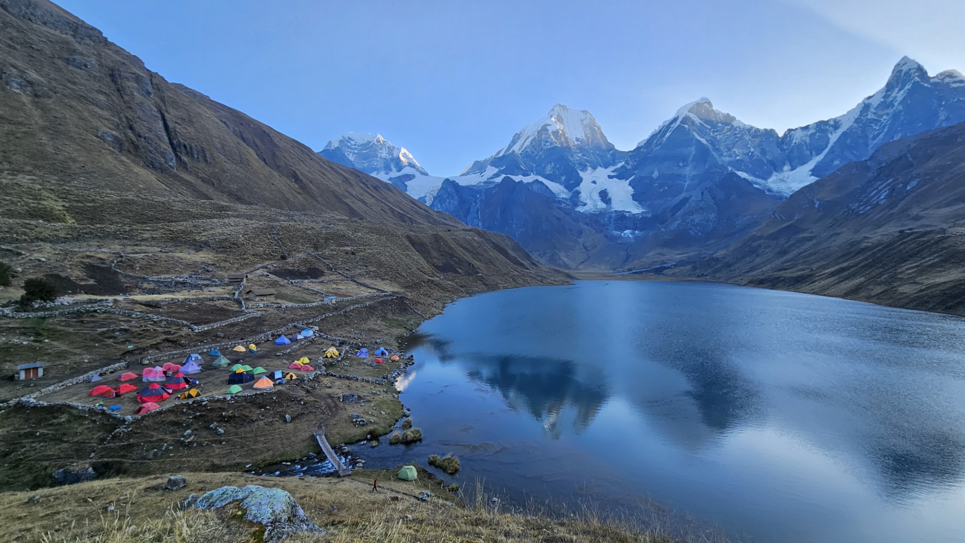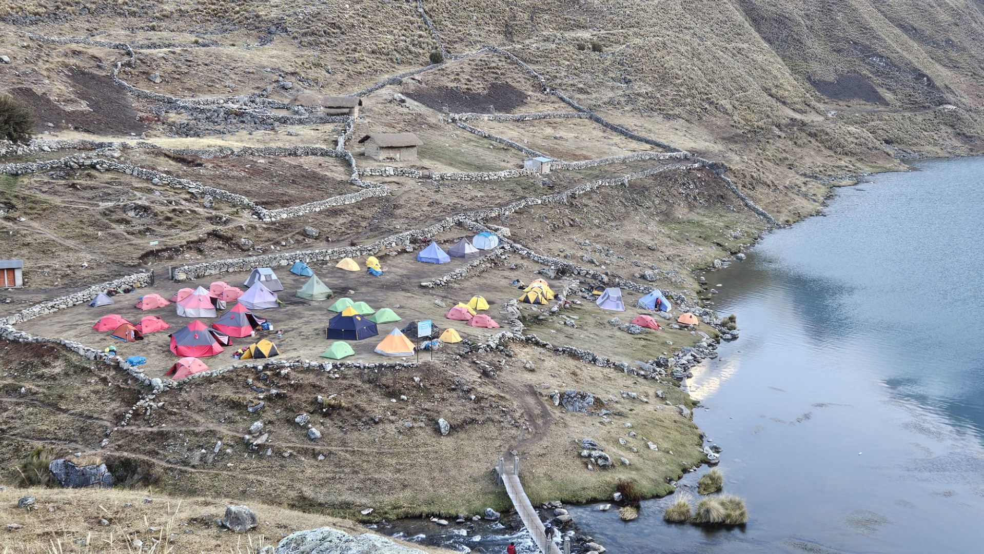 Tras disfrutar de este panorama, iniciamos el descenso hacia el Campamento de Carhuacocha, ubicado a orillas de la laguna del mismo nombre. La ruta de hoy resultó ser bastante sencilla, lo que nos permitió llegar al campamento mucho más temprano de lo esperado.