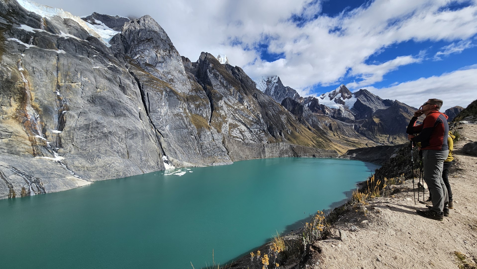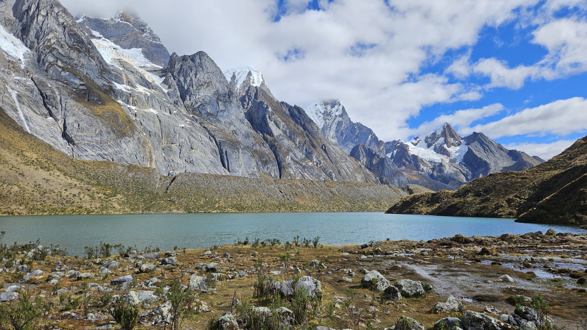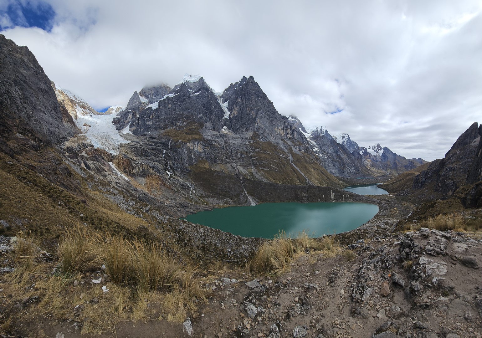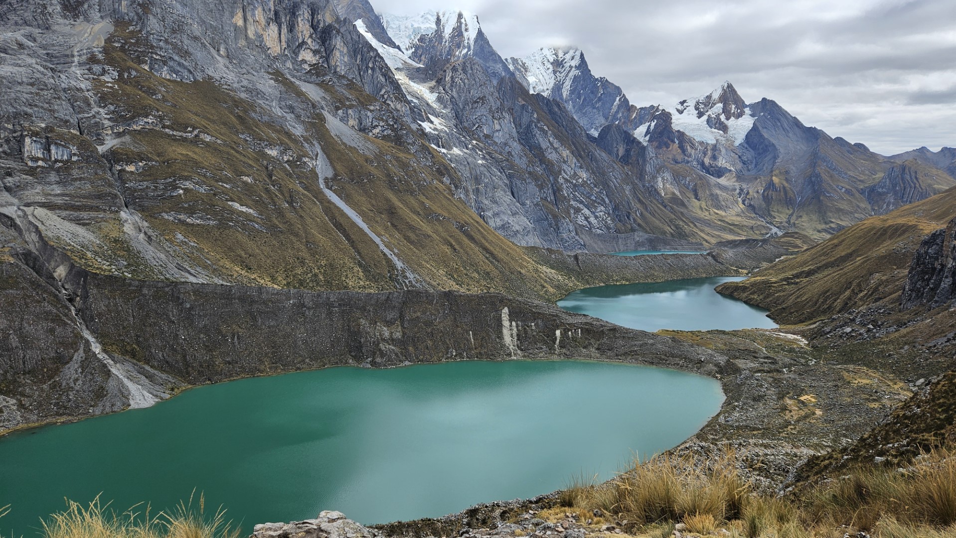 Están rodeadas por algunas de las cumbres más icónicas de la Cordillera Huayhuash, como el imponente Yerupajá, el enigmático Jirishanca y el majestuoso Siulá.