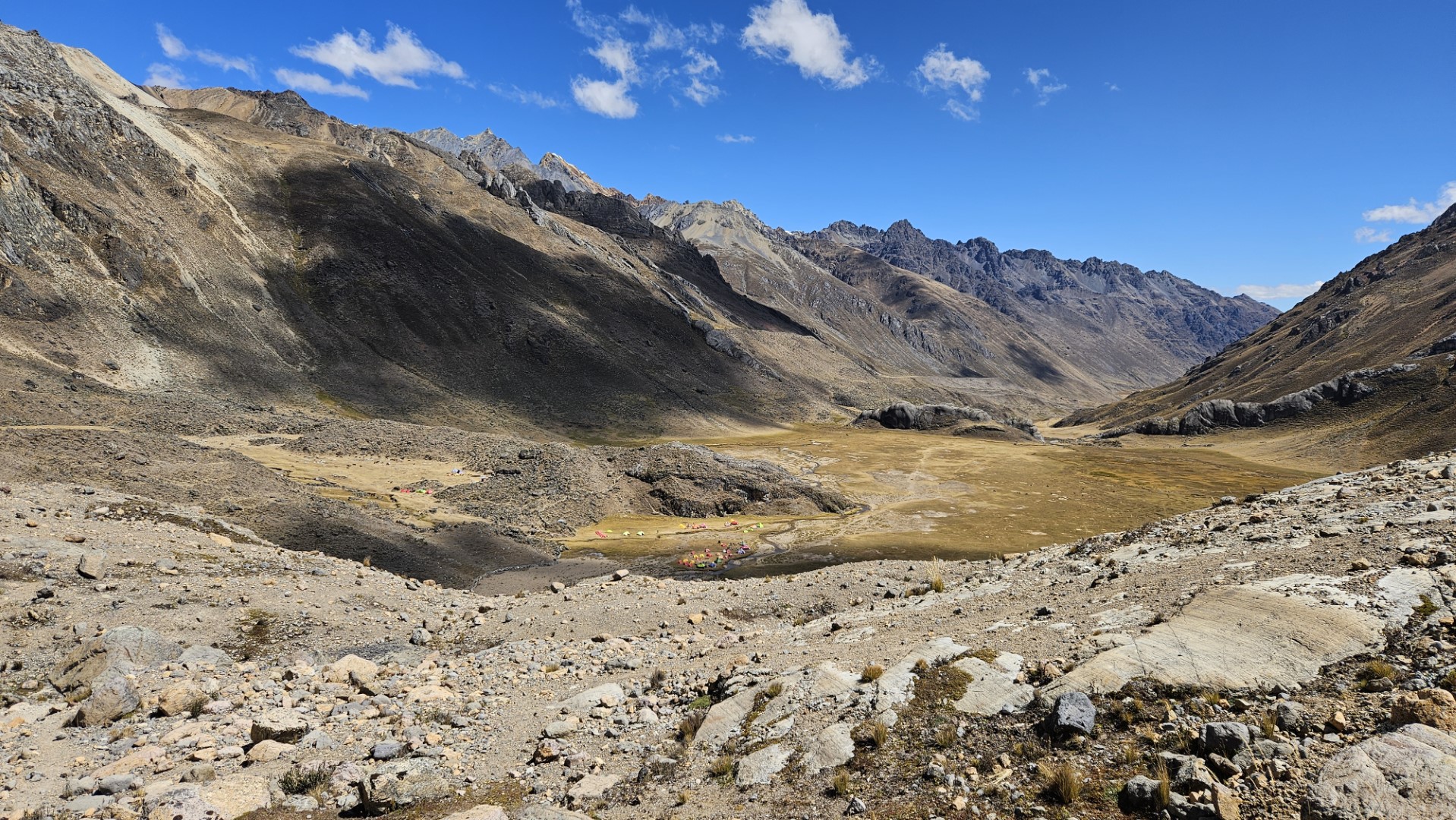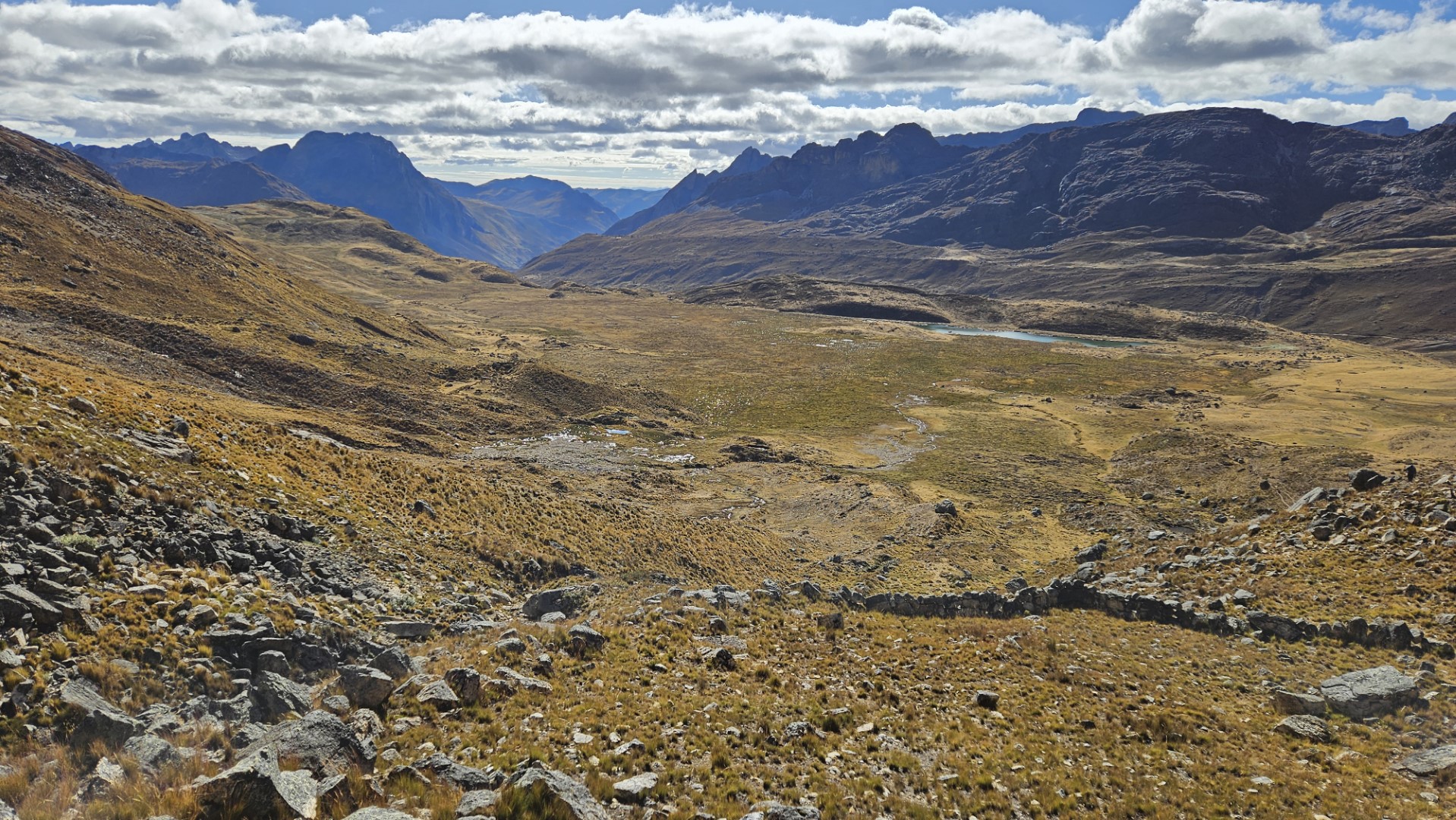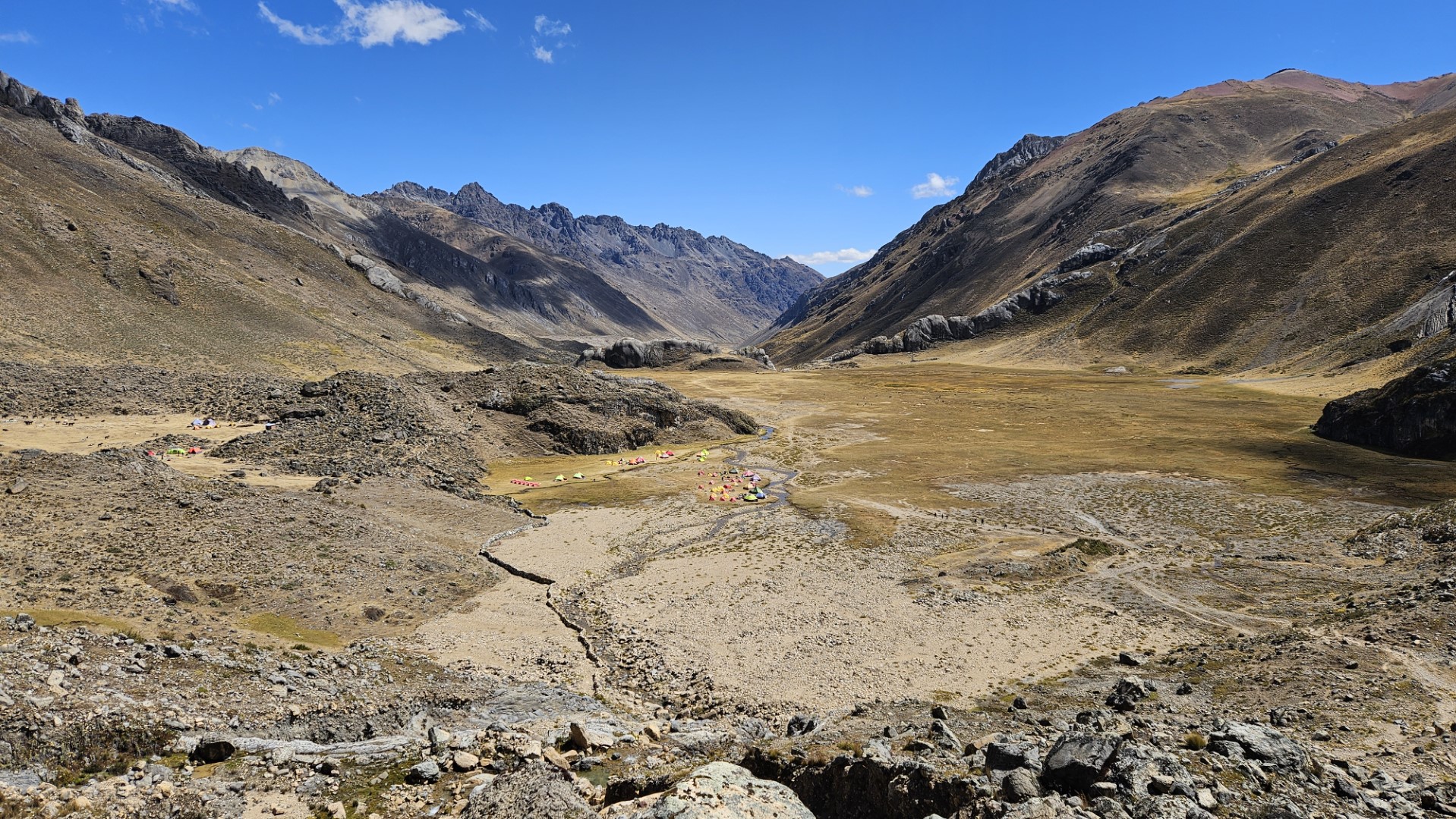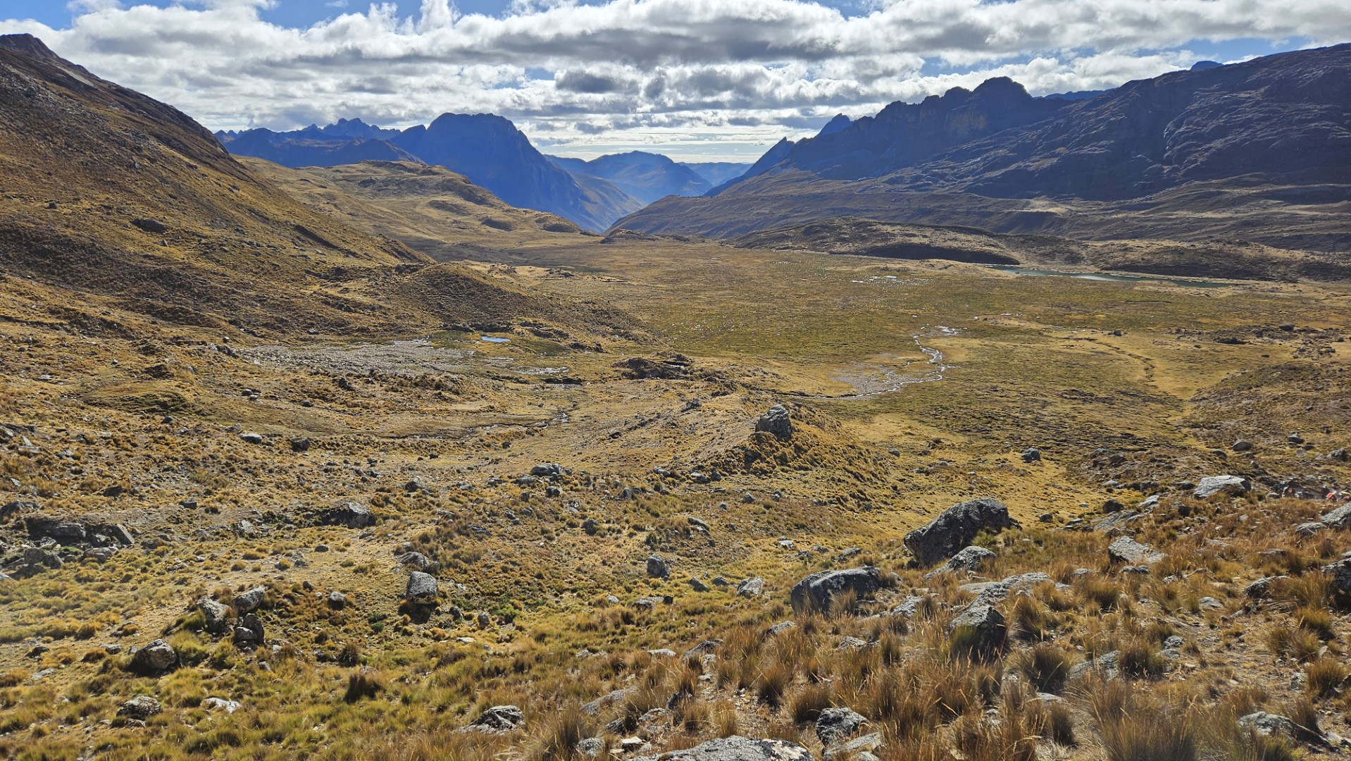 Al cruzar el Paso, el cambio en el paisaje era notable: la vegetación verde da paso a un terreno más árido, según nos dirigimos hacia el Campamento Cuyocpampa.