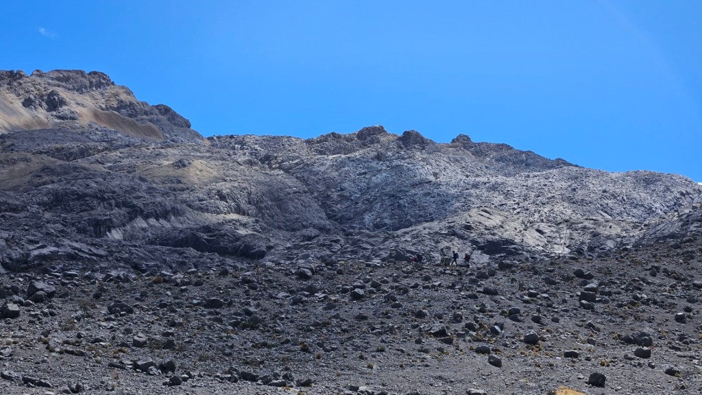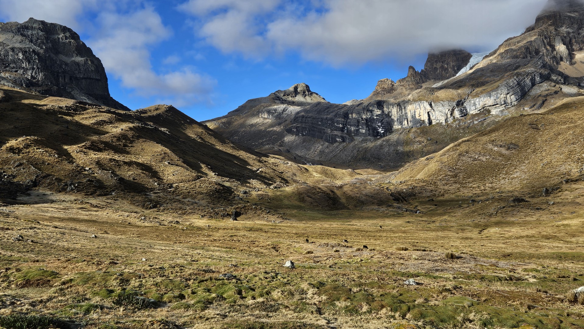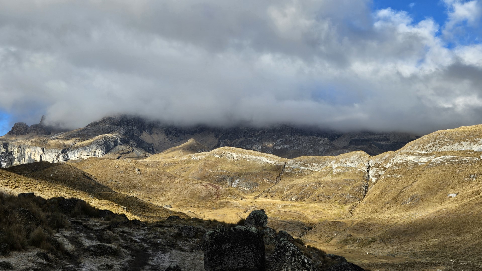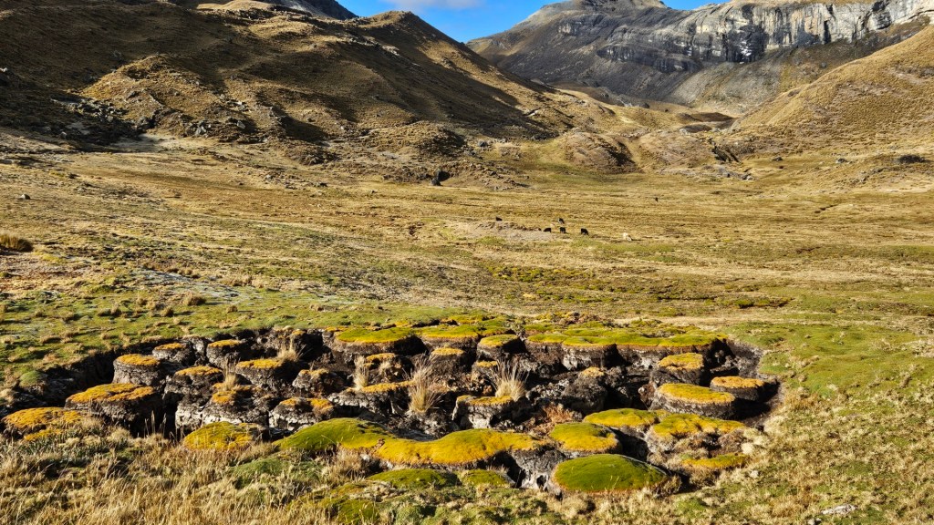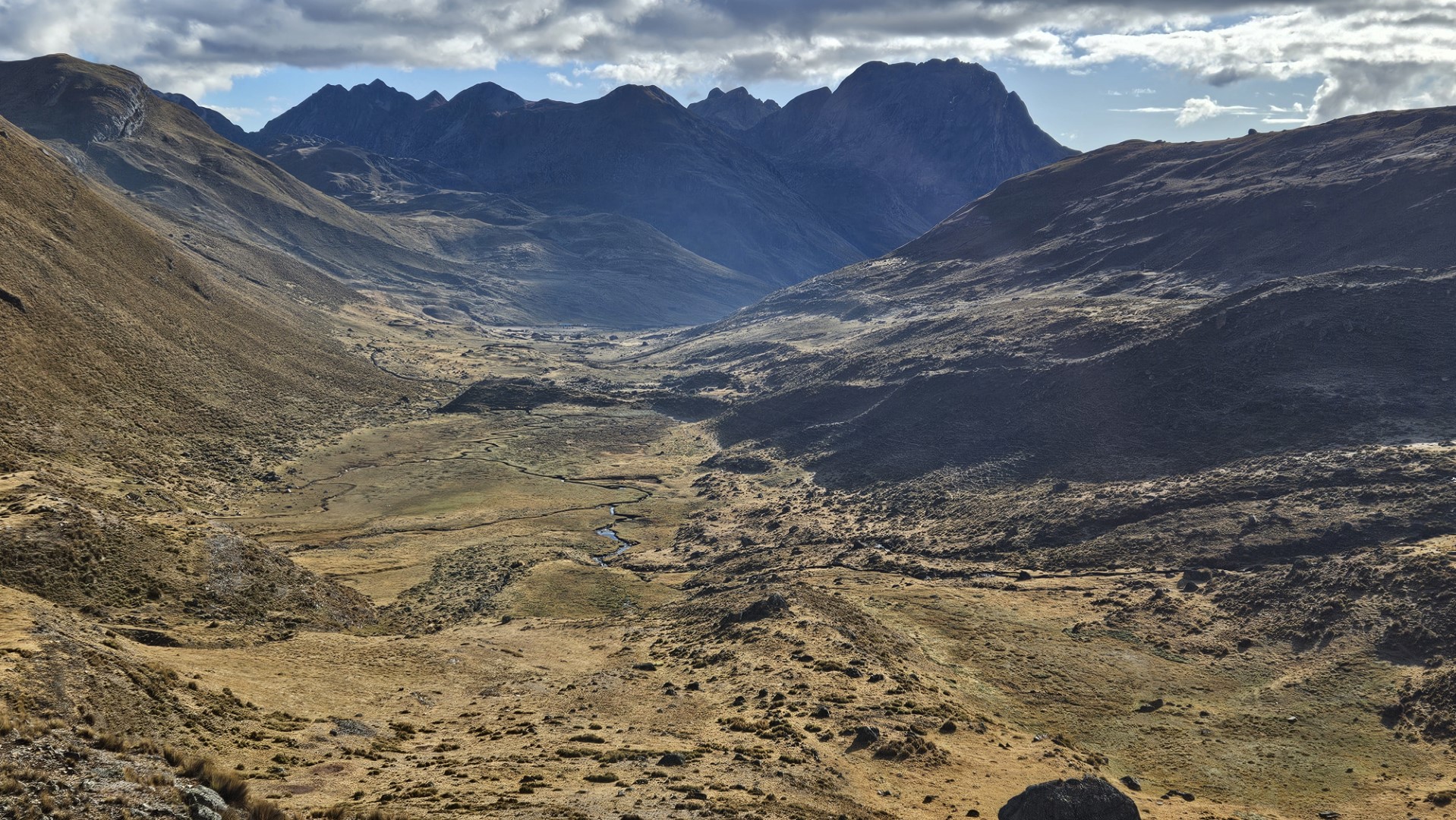 Al cruzar el Paso, el cambio en el paisaje era notable: la vegetación verde da paso a un terreno más árido, según nos dirigimos hacia el Campamento Cuyocpampa.
