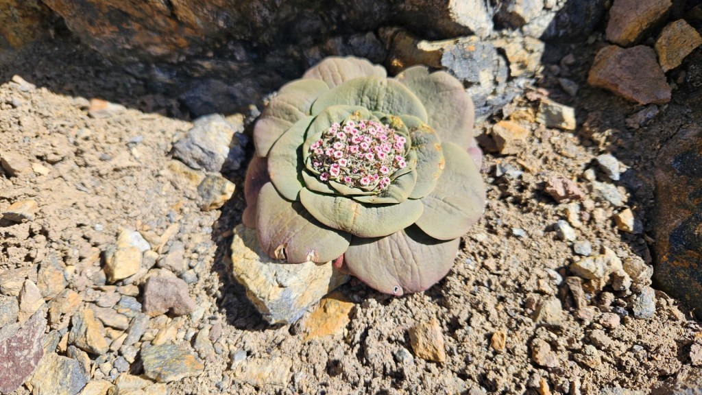 Entre las rocas y los peñascos, aparecen pequeñas plantas que desafian las condiciones extremas de altura y frío, adaptándose de manera sorprendente a este entorno inhóspito. Esta vegetación, que parece frágil a simple vista, demuestra una resistencia y vitalidad que nos deja asombrados, recordándonos la increíble capacidad de la naturaleza para prosperar en los lugares más inesperados.