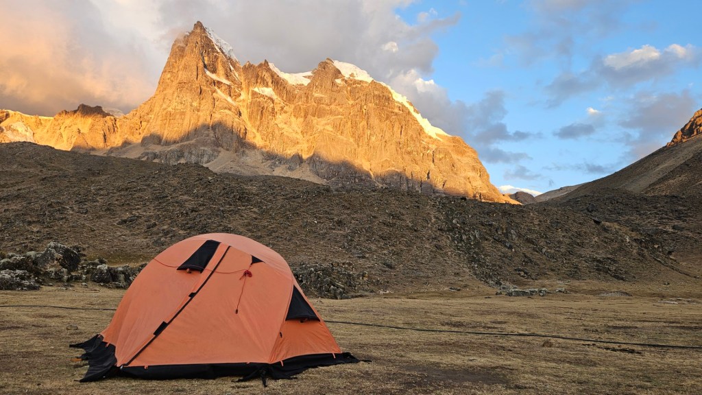 La noche anterior ha sido gélida, como tantas otras durante este trekking. Las temperaturas descienden de manera drástica, dejando el campamento envuelto en una capa de frío que se filtra a través de la tienda y saco de dormir, haciendo casi imposible poder conciliar el sueño. Cada vez resulta más difícil encontrar una posición cómoda en el suelo, y el sueño, siempre escaso y poco reparador, comienza a ser un problema serio. A medida que avanzamos en esta travesía, el cansancio acumulado se hace más evidente, afectando mi energía y ánimo. Me encuentro en un punto en el que me pregunto cuánto tiempo más podré seguir en estas condiciones.