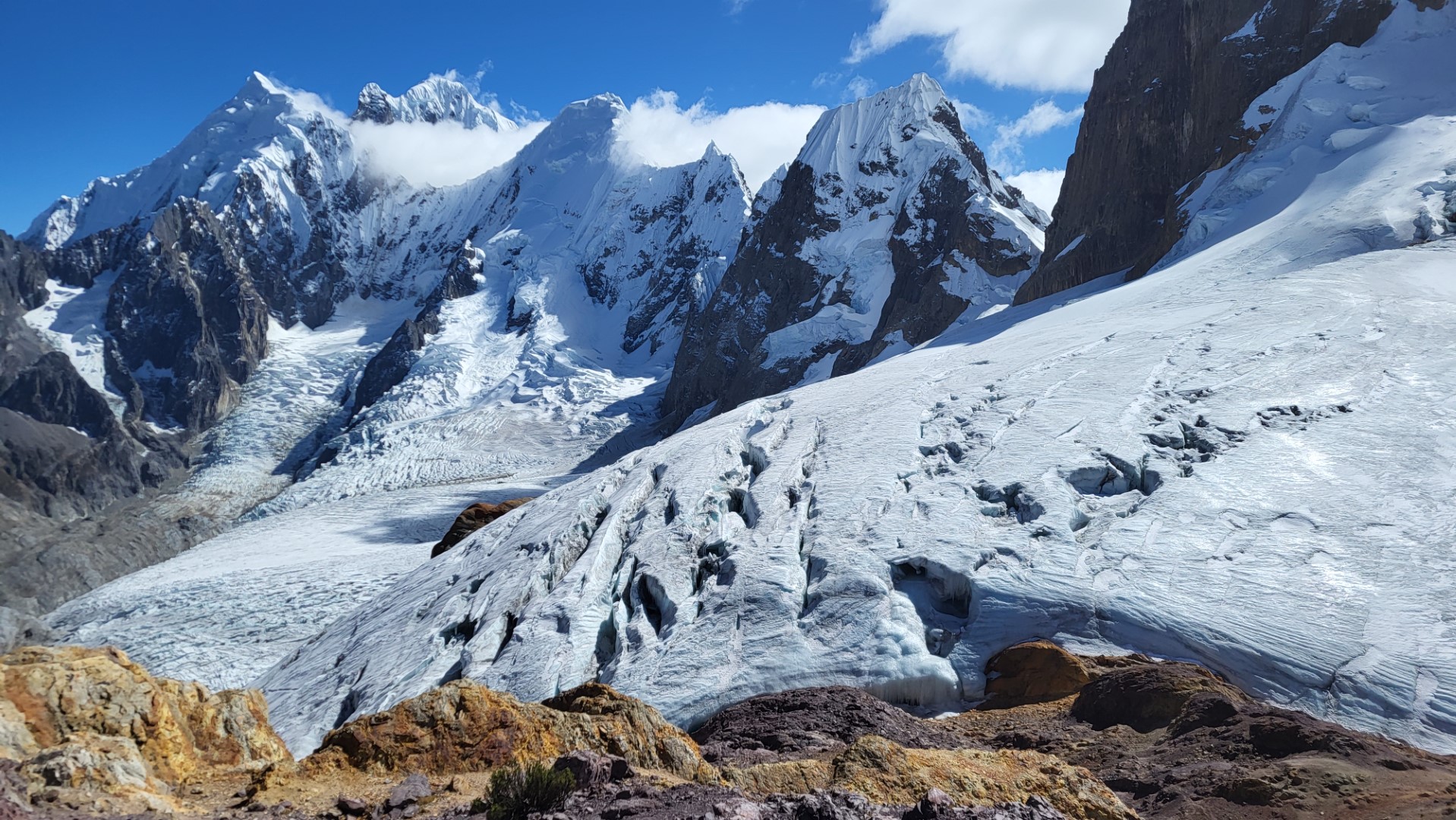 Tras un merecido descanso, ascendimos para contemplar el glaciar bajo el Pico Trapecio. La majestuosidad del paisaje nos deja sin palabras.