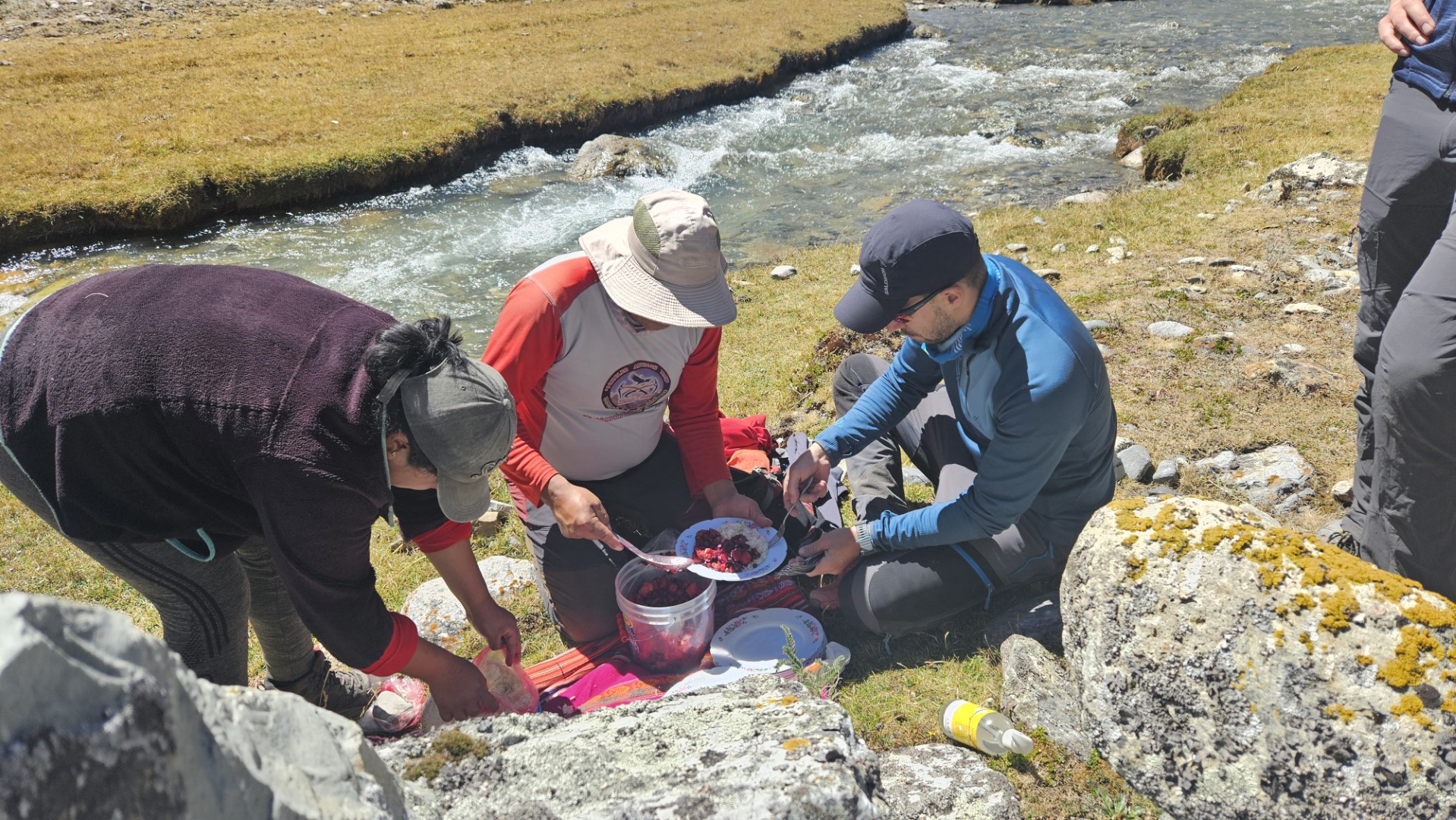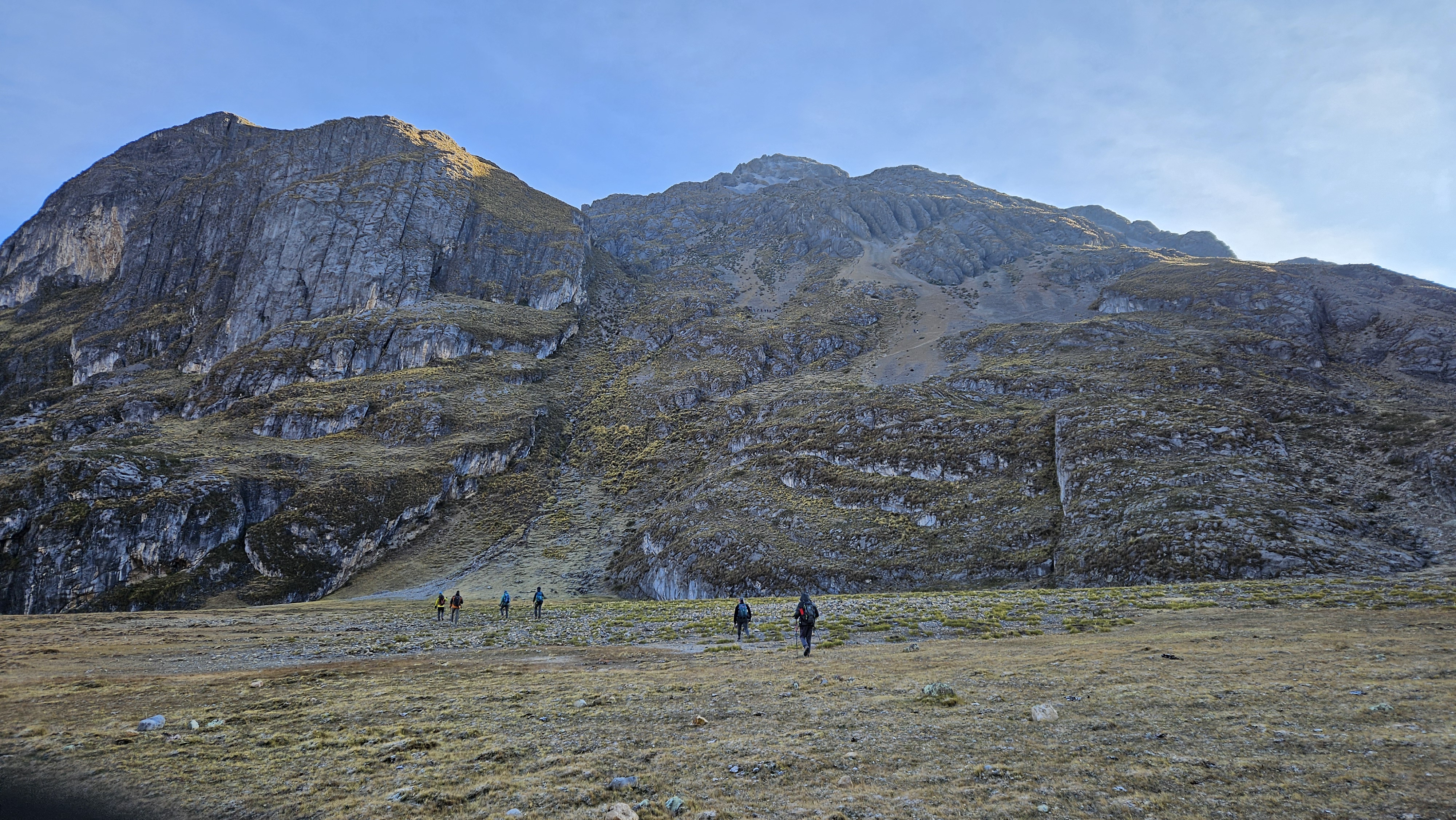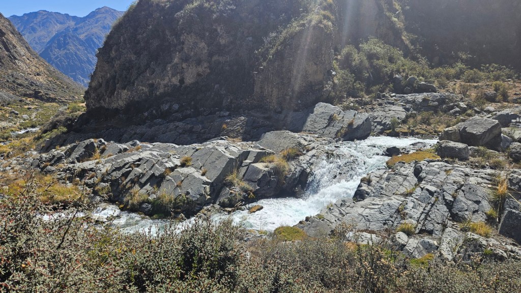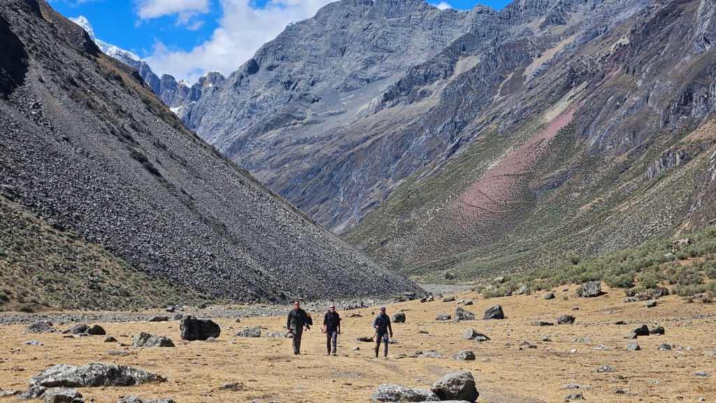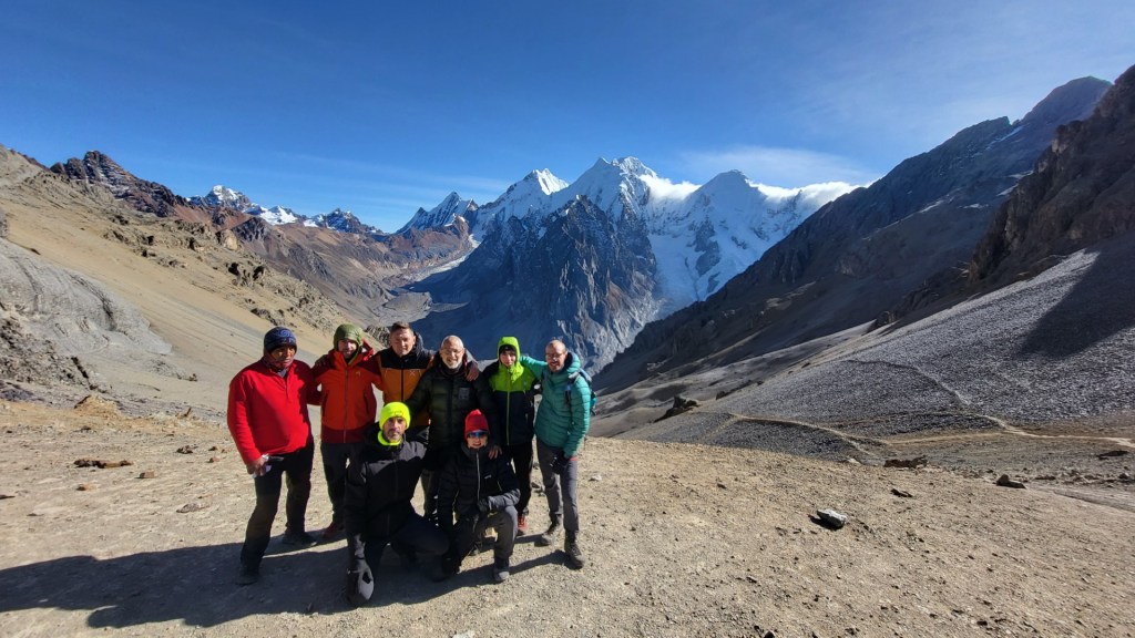 Iniciamos la jornada con una subida desafiante hacia el Paso de Santa Rosa, situado a 5070 metros sobre el nivel del mar. Para algunos, las fuerzas comienzan a mermar, mientras que otros ya parecen haber alcanzado su mejor forma física. Como en el día anterior, nos acompaña Pancho, el cocinero, siempre una presencia reconfortante. Ruth, nuestra compañera, muestra signos de agotamiento tras cuatro días de un trekking que no da tregua.