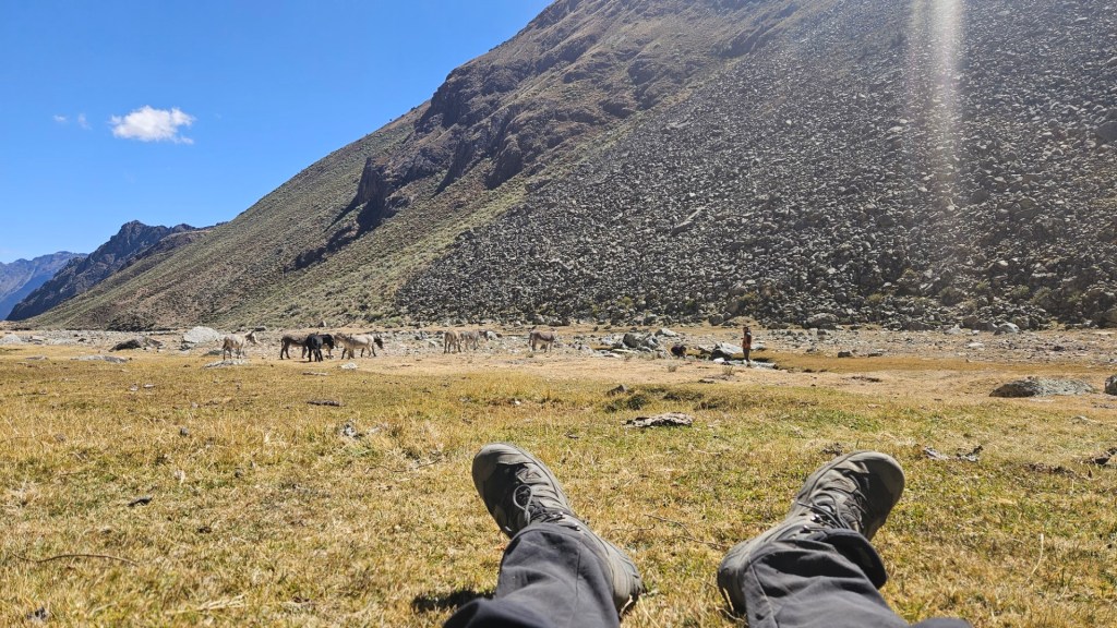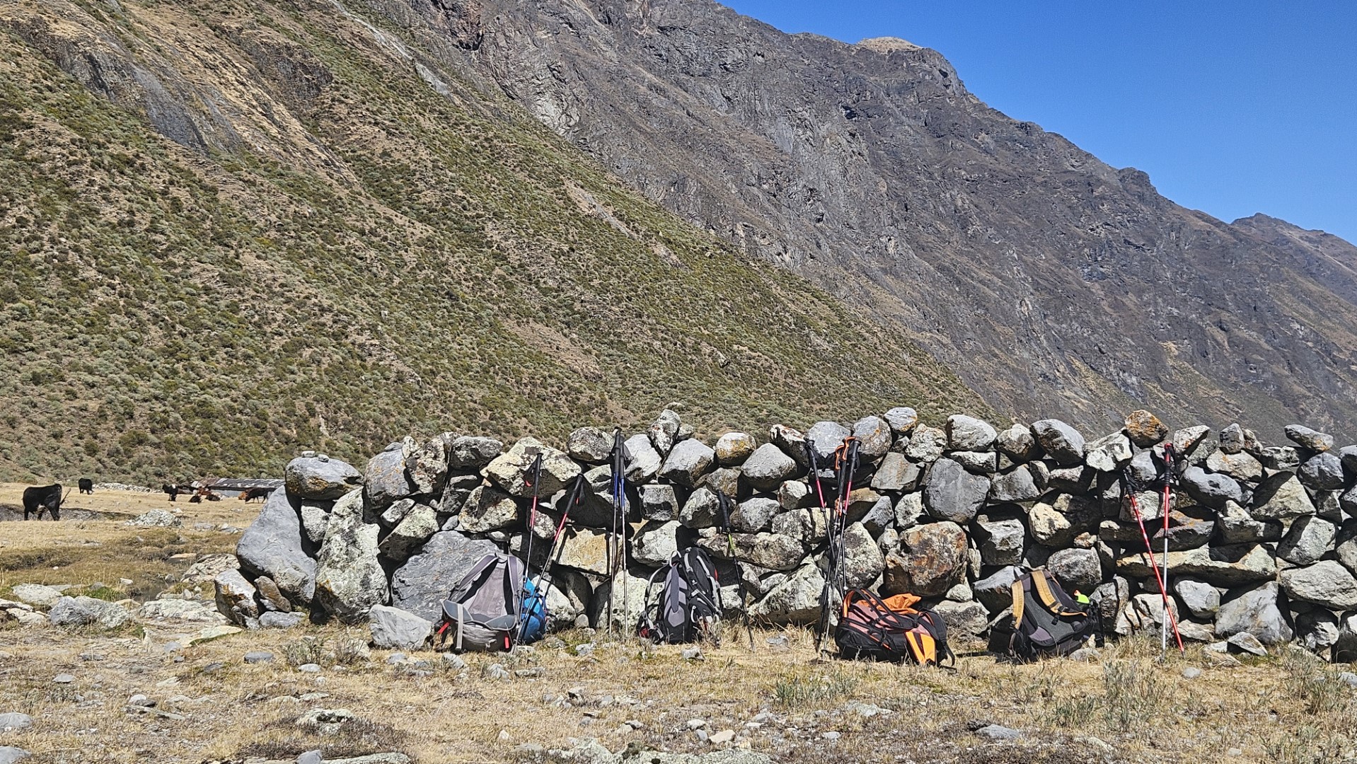Amanece un nuevo día en el Campamento de Cuyocpampa a 4400 m y el frío nos recibe con intensidad. La noche ha sido especialmente dura, con temperaturas bajo cero, y la falta de sueño comienza a pasar factura. Las preocupaciones empiezan a rondar nuestras mentes: ¿tendremos alojamiento esta noche en el hotel de Huayllapa? ¿Llegarán los muleros a tiempo para hacer la reserva? Dependemos de ellos para asegurar un lugar donde descansar.