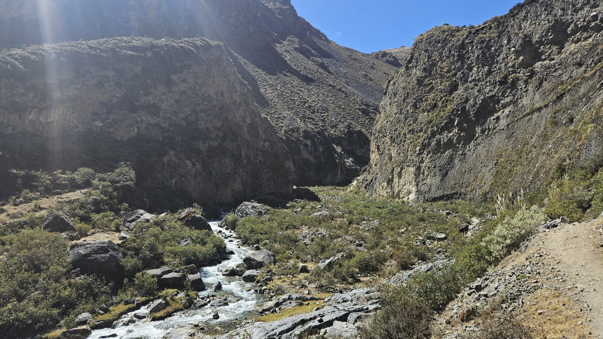 A medida que nos adentramos en el valle, la vegetación se torna más densa y el río cobra fuerza, encajonándose y formando hermosas cascadas.