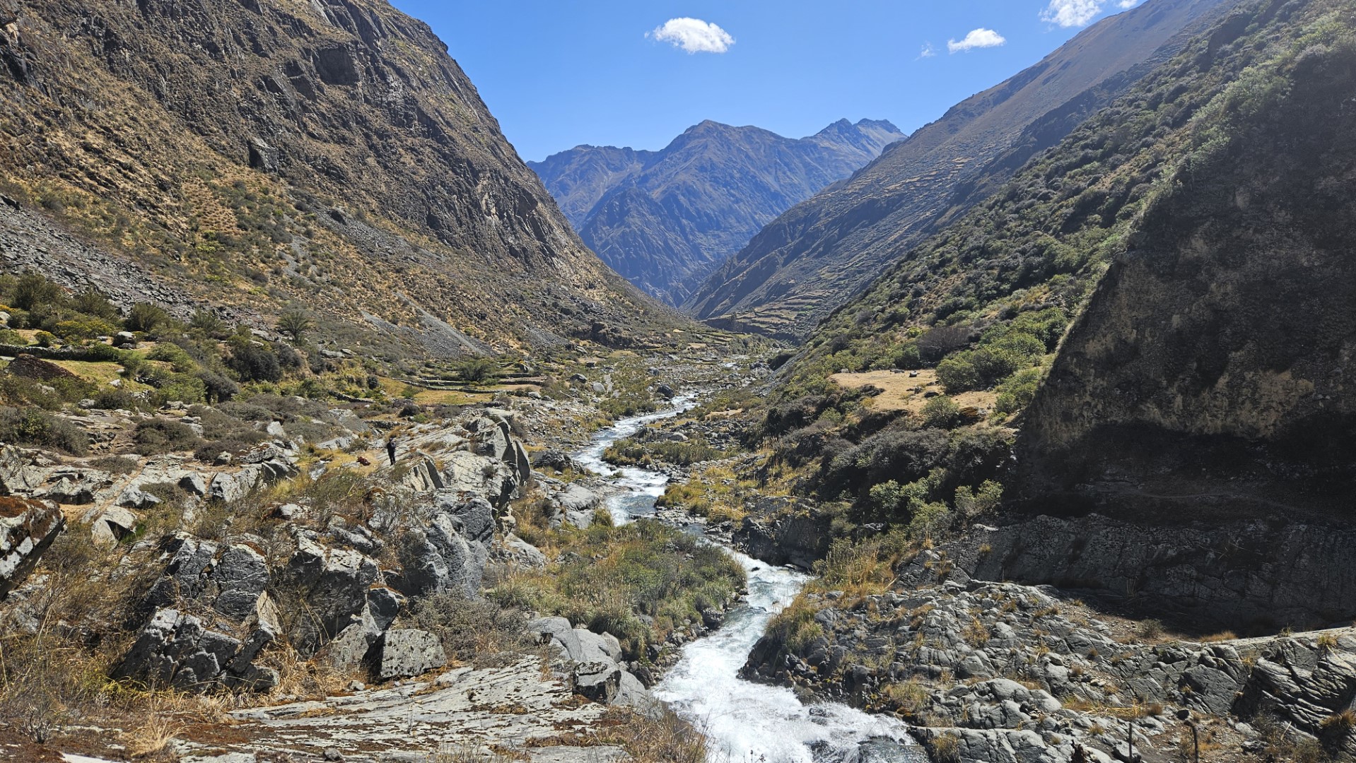 Giramos a la izquierda y comenzamos a bajar por el vasto Valle de Quebrada Calinca, dirigiéndonos hacia el pueblo de Huayllapa.
