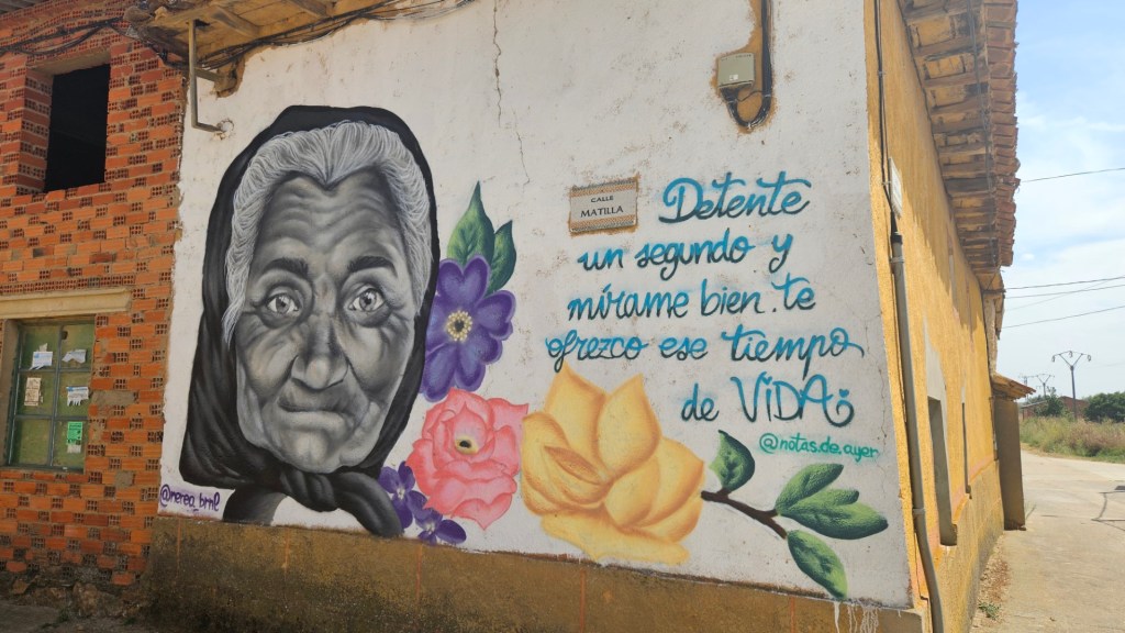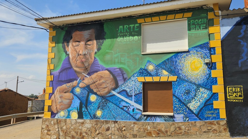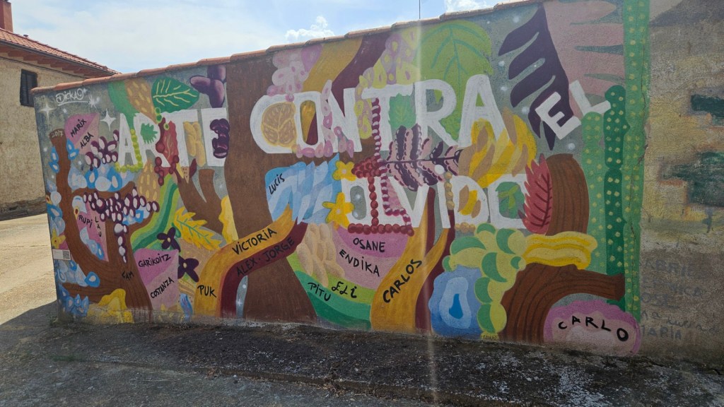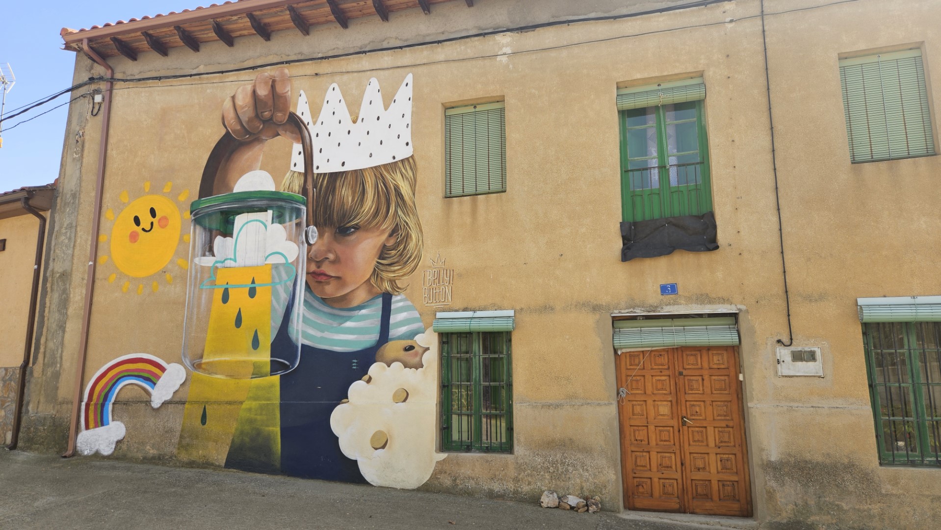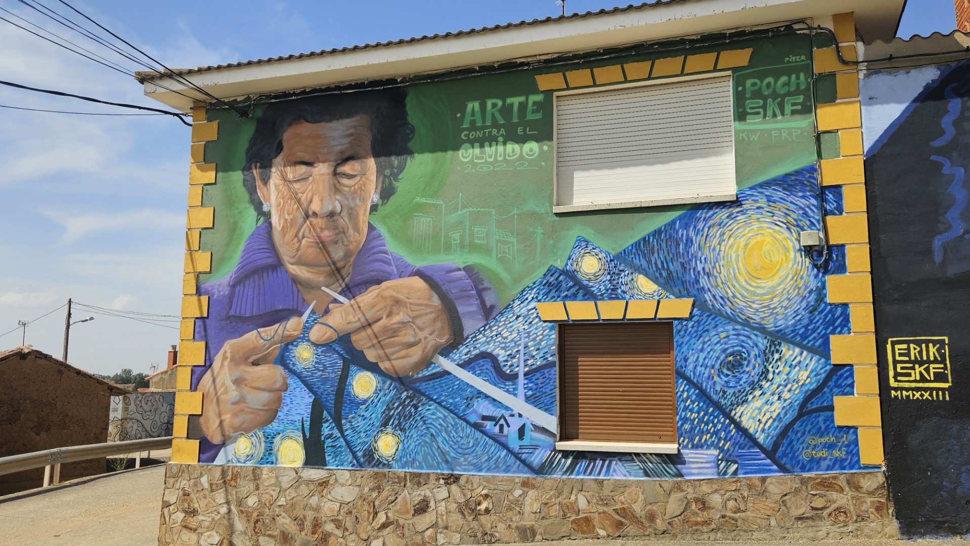 El proyecto «Arte contra el olvido» surge como una respuesta creativa y comunitaria de los vecinos del pueblo ante la creciente despoblación que amenazaba con borrar su identidad. La idea principal es utilizar las fachadas de los edificios como lienzos que cuenten la historia, las tradiciones y la cultura del lugar, convirtiendo el espacio público en una galería al aire libre que no solo embelleciera el entorno, sino que también atrajera a visitantes y generara un renovado sentido de pertenencia entre los residentes.
