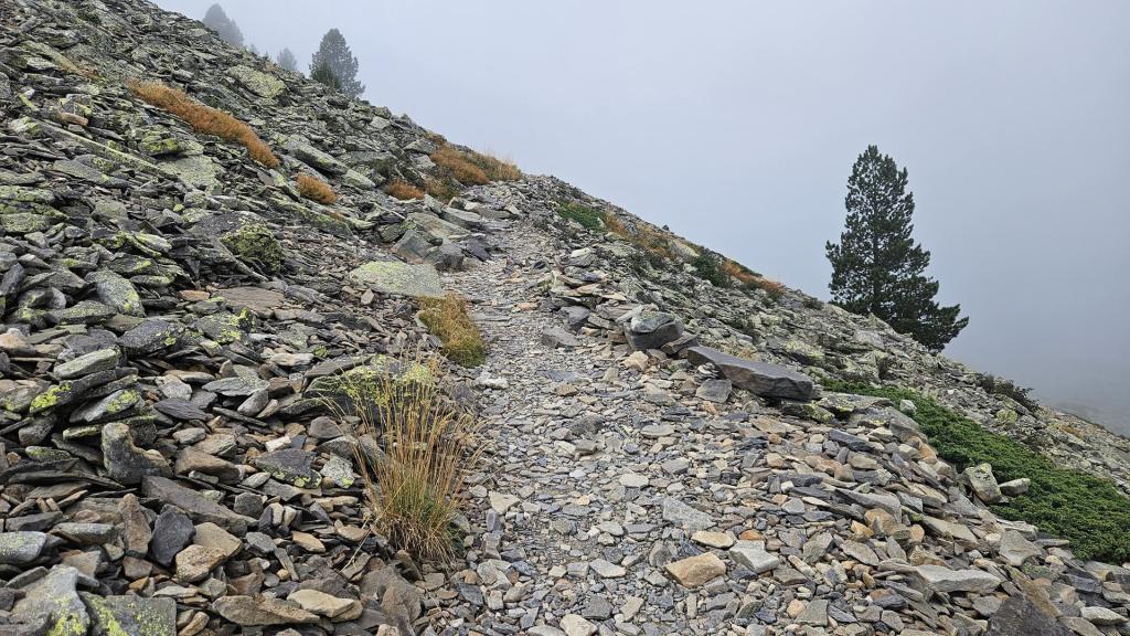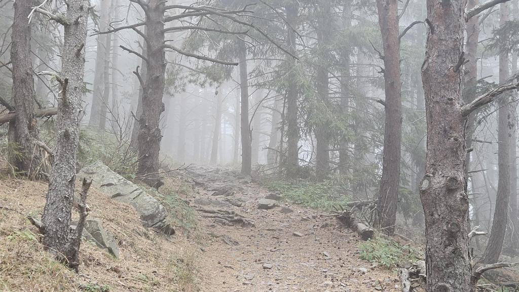 Más adelante, encontramos a la segunda, quien, con una sonrisa amable, nos preguntó sobre la dificultad de la subida. Les explicamos que, aunque la niebla y el terreno inclinado añadían cierto reto, valía la pena seguir subiendo. No subieron.