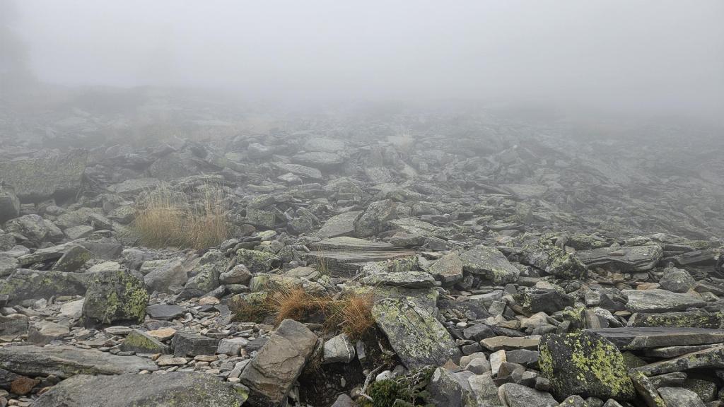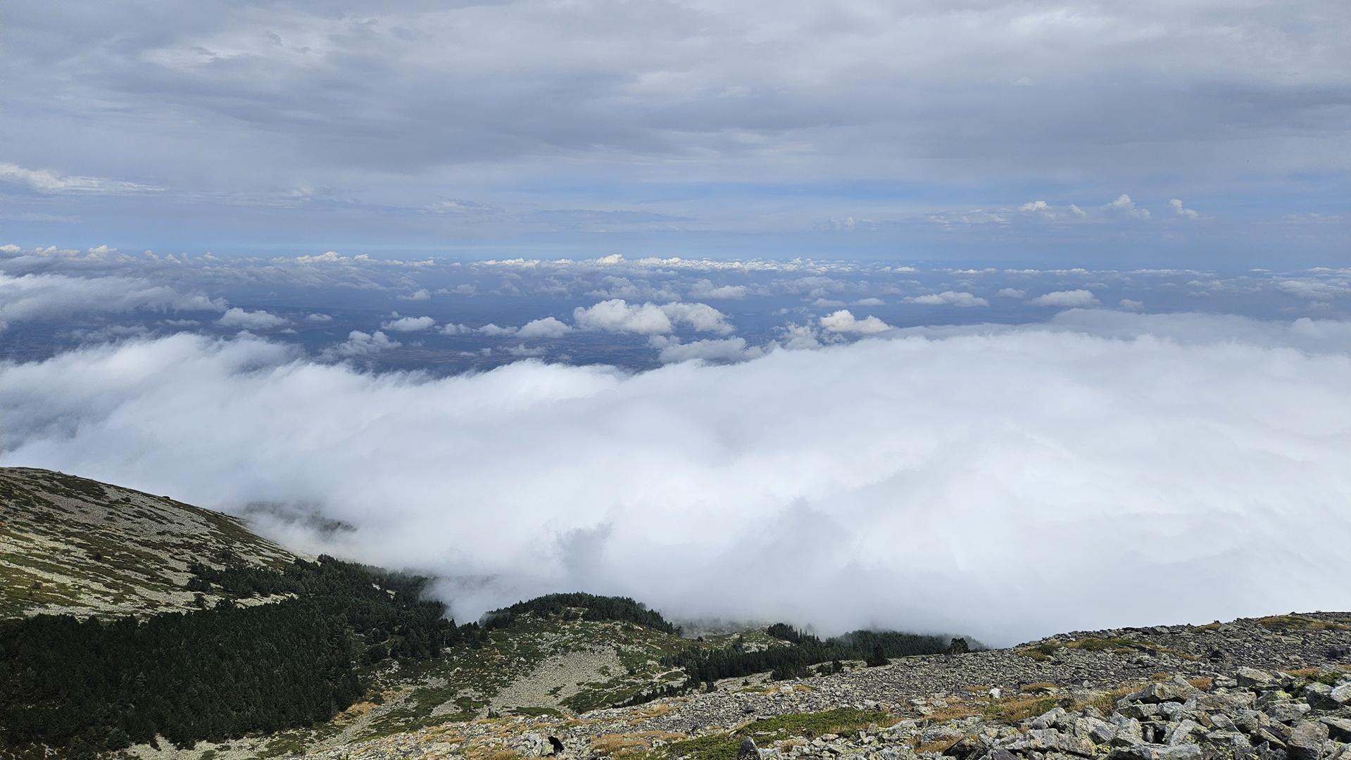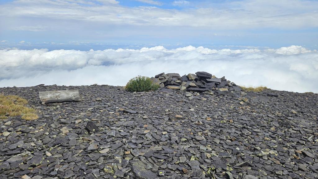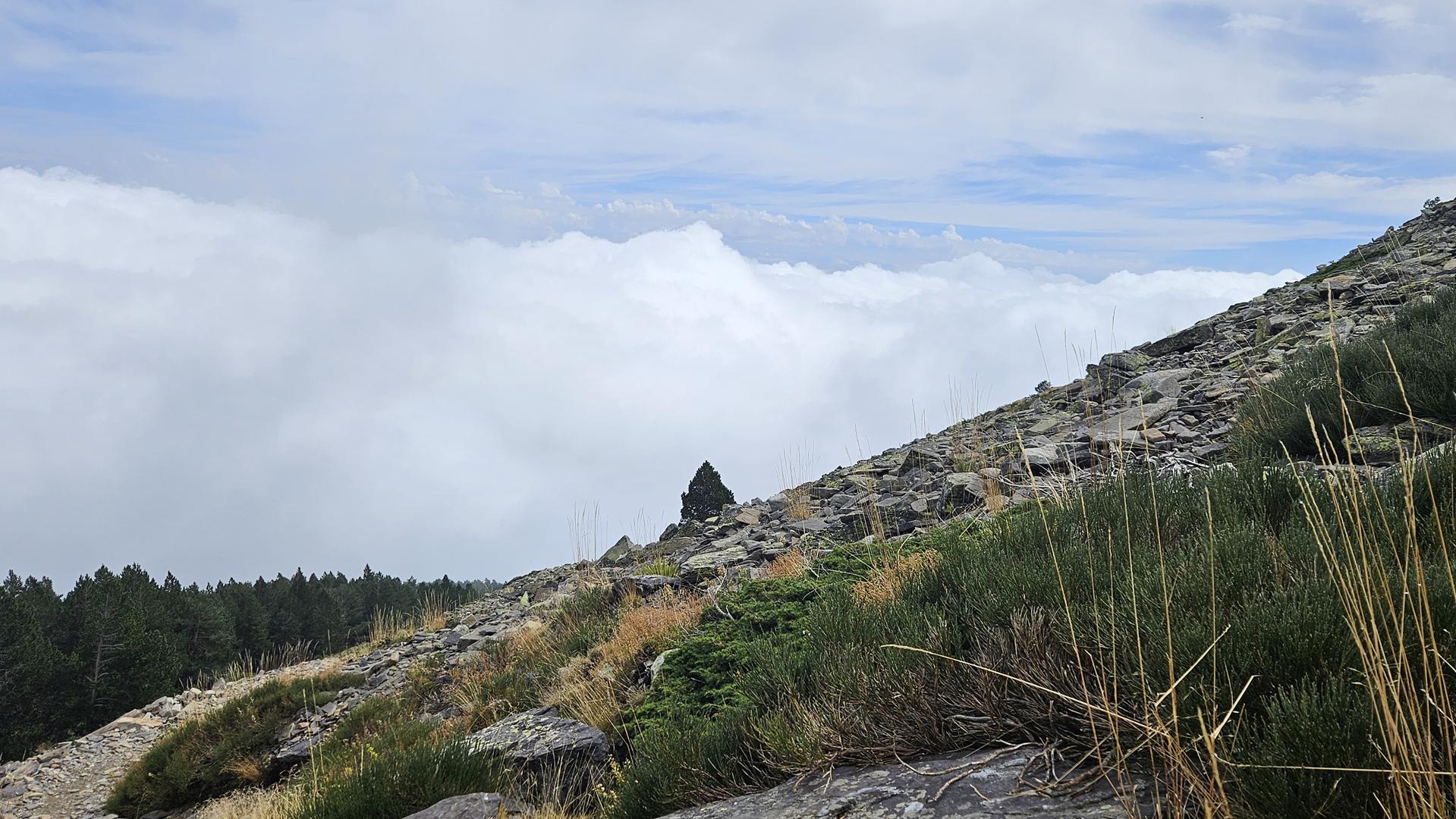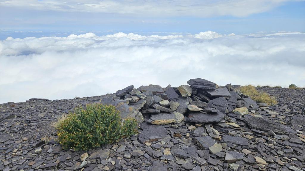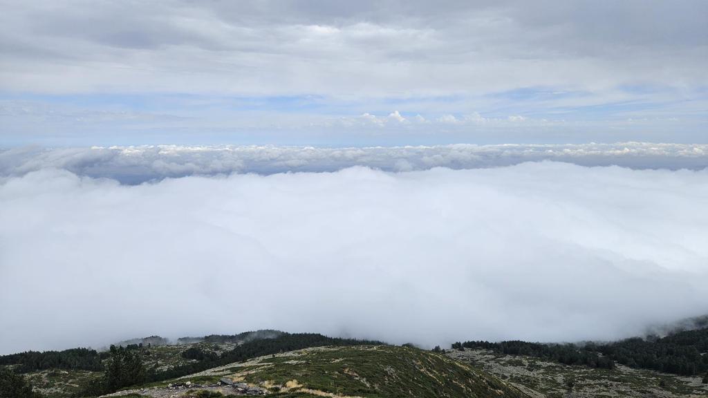 Después de dejar atrás el bosque, la niebla comenzó a despejarse y nos encontramos con una vista impresionante: un mar de nubes se extendía bajo nosotros. Era como estar flotando por encima del mundo. A partir de aquí, el terreno era más rocoso y el viento comenzaba a sentirse más fuerte, pero la vista nos daba la energía para seguir adelante.