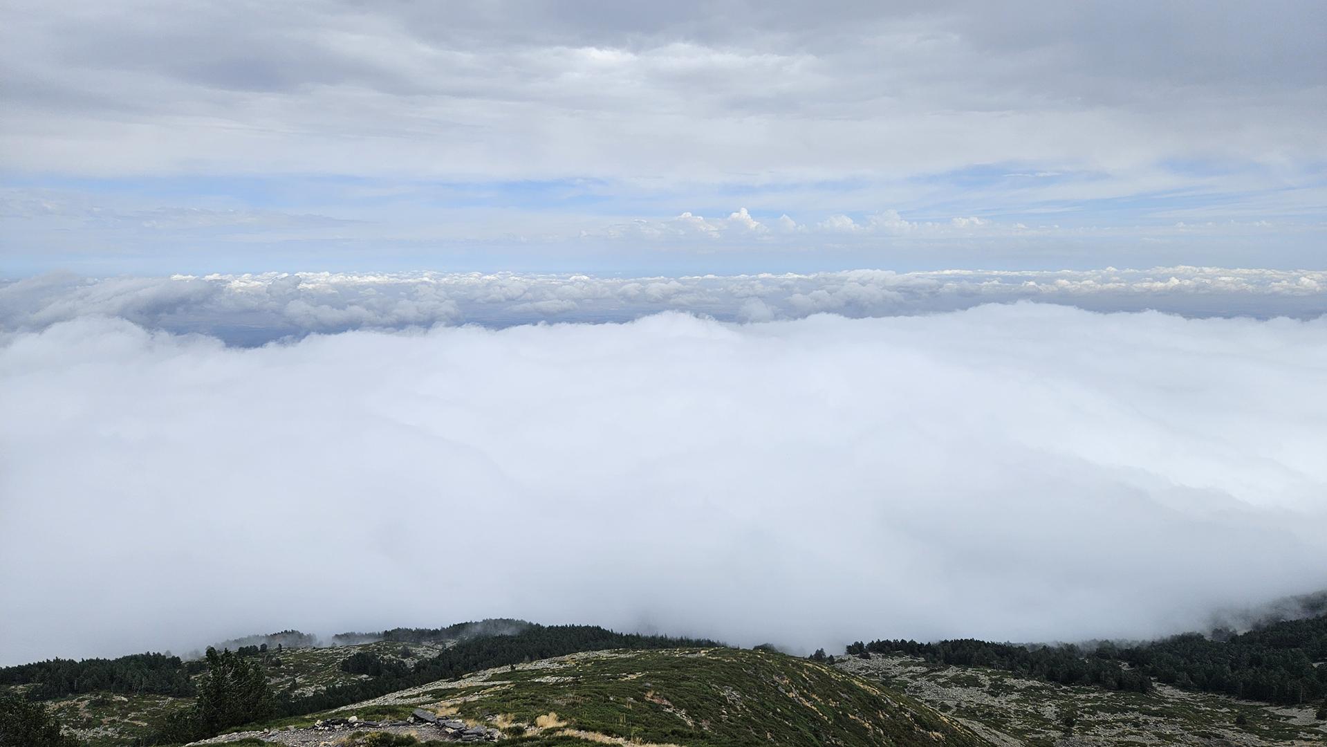 Un mar de nubes se extendía por debajo de nosotros, mientras el sol iluminaba la escena desde arriba. Era como estar en una isla suspendida en el cielo. Nos quedamos un buen rato allí, disfrutando de la paz y la sensación de estar por encima de todo.