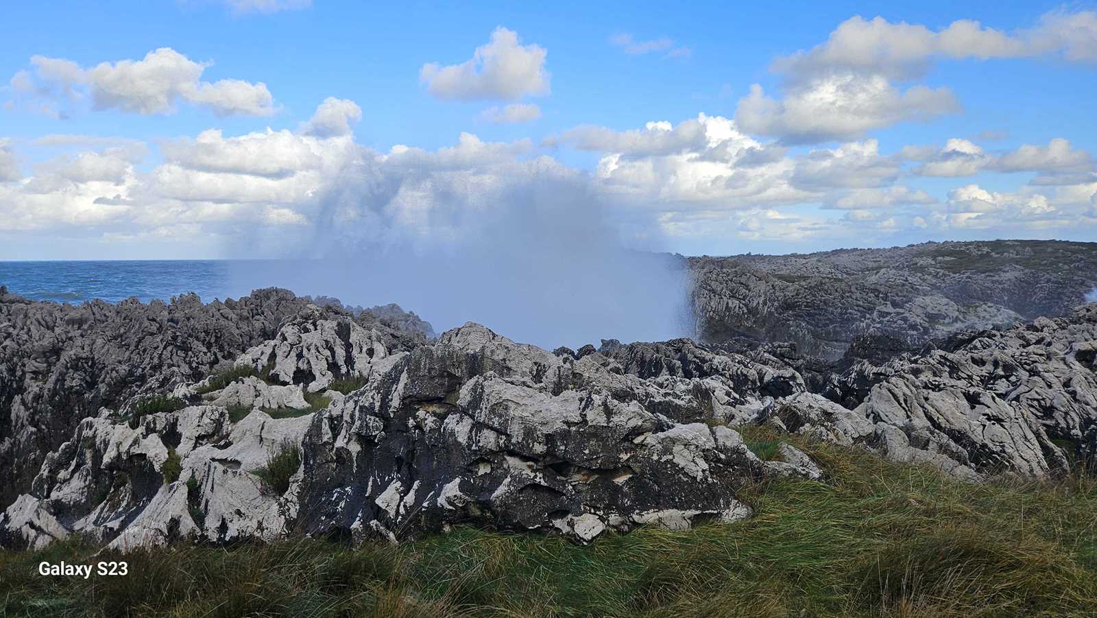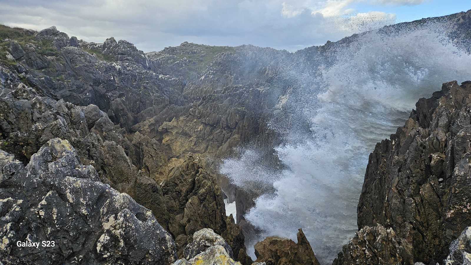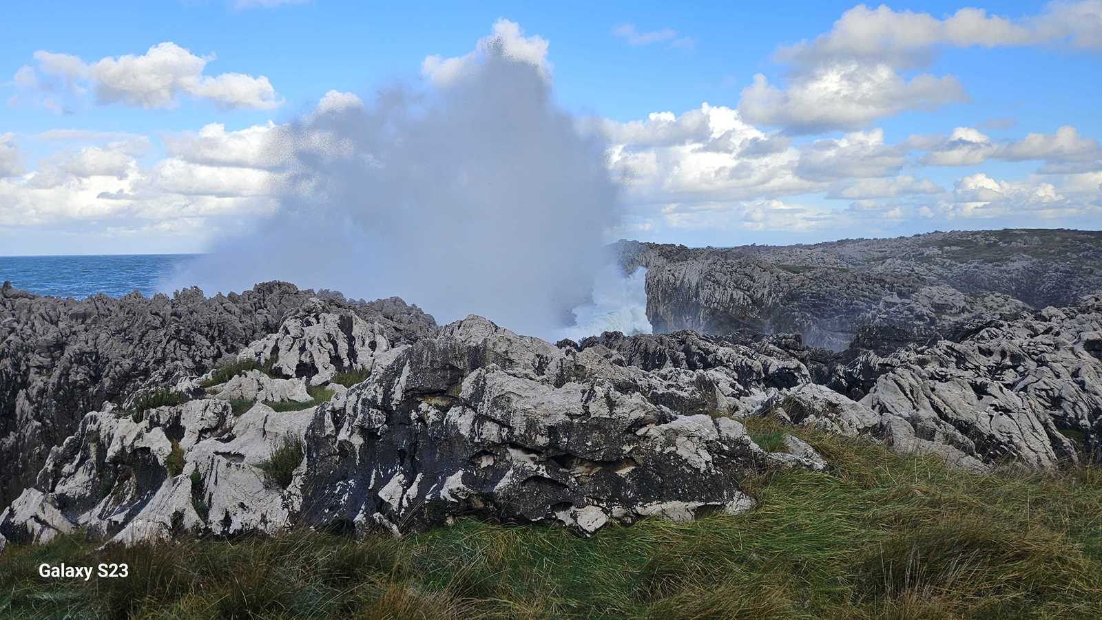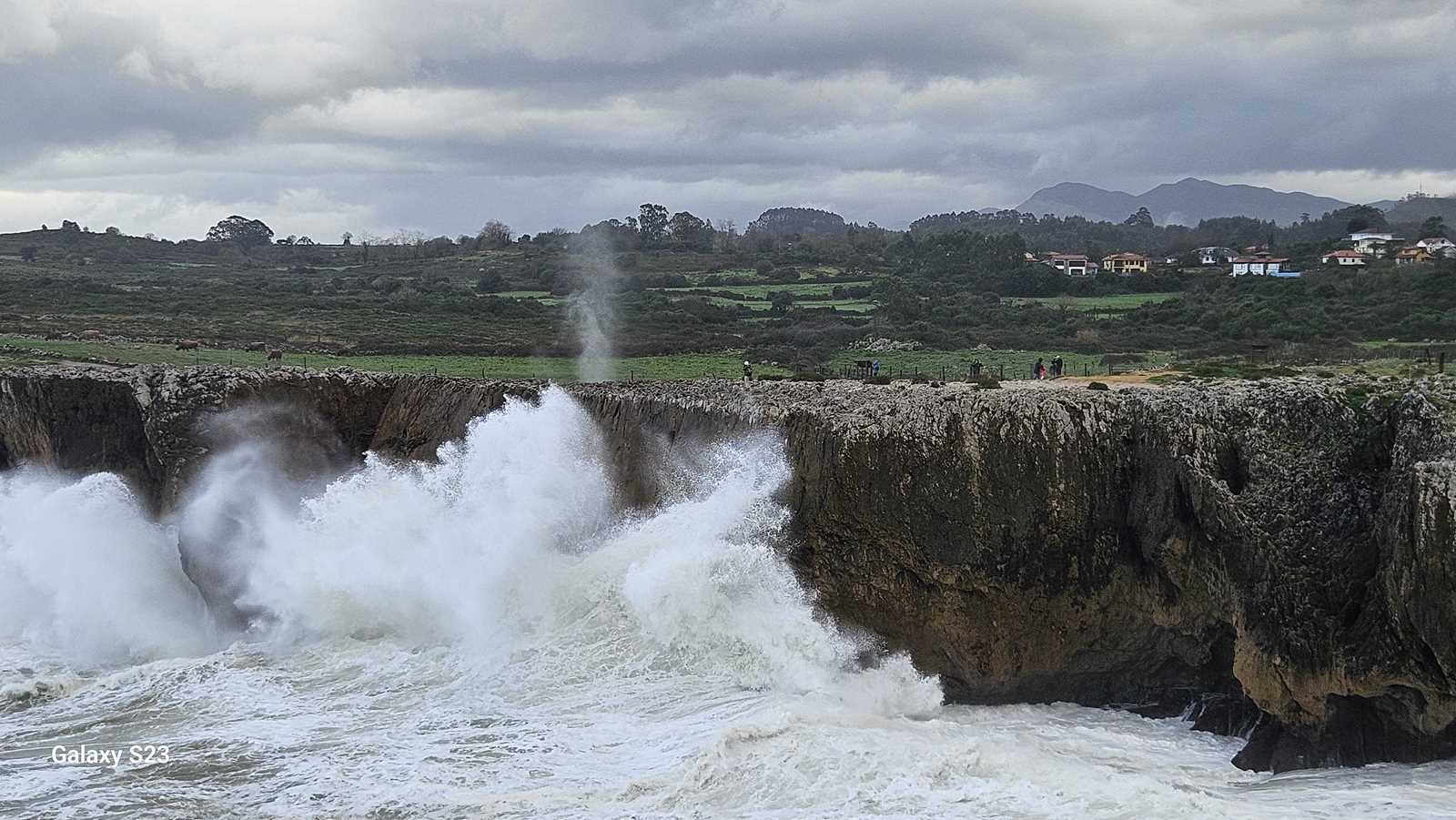 El estruendo era ensordecedor, una mezcla entre el rugido de las olas y el viento comprimido saliendo con potencia de las grietas.