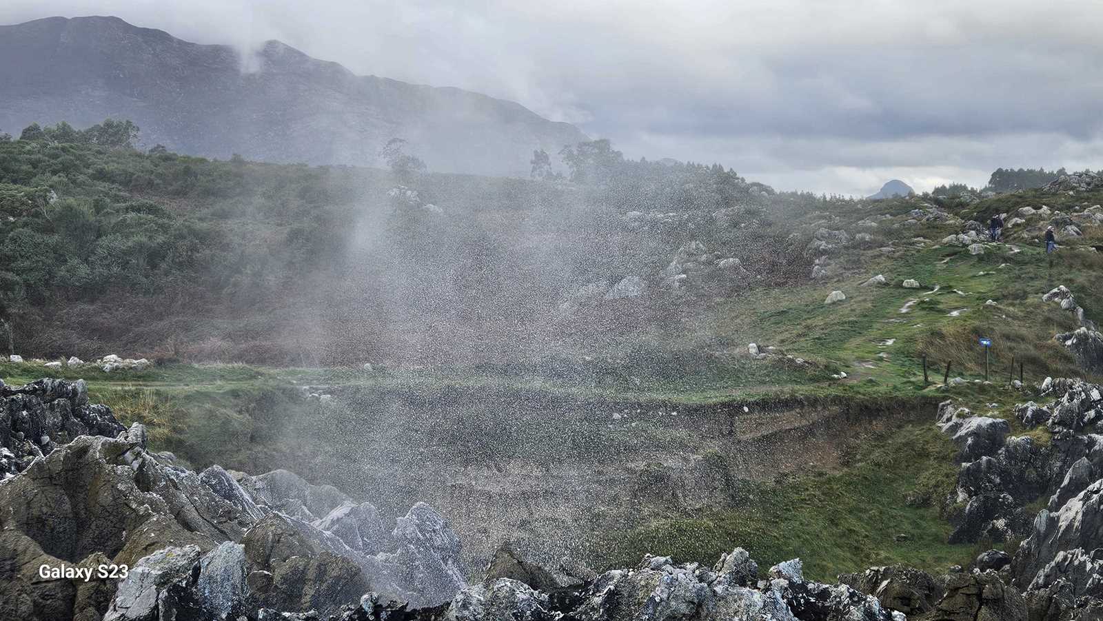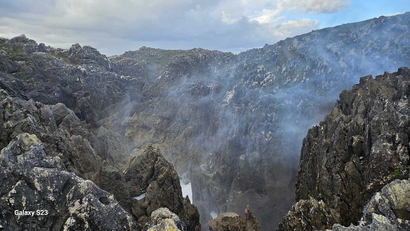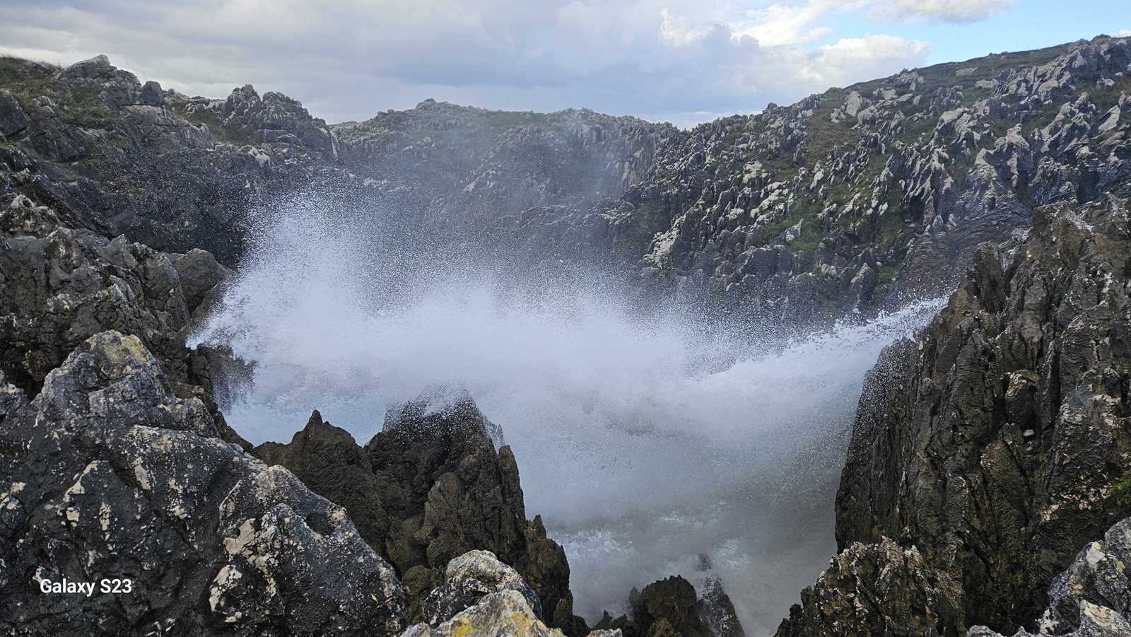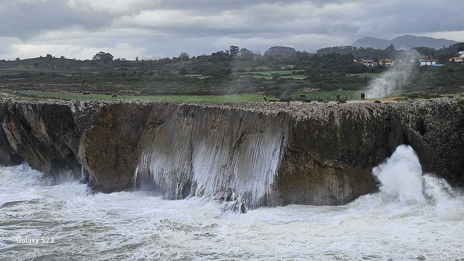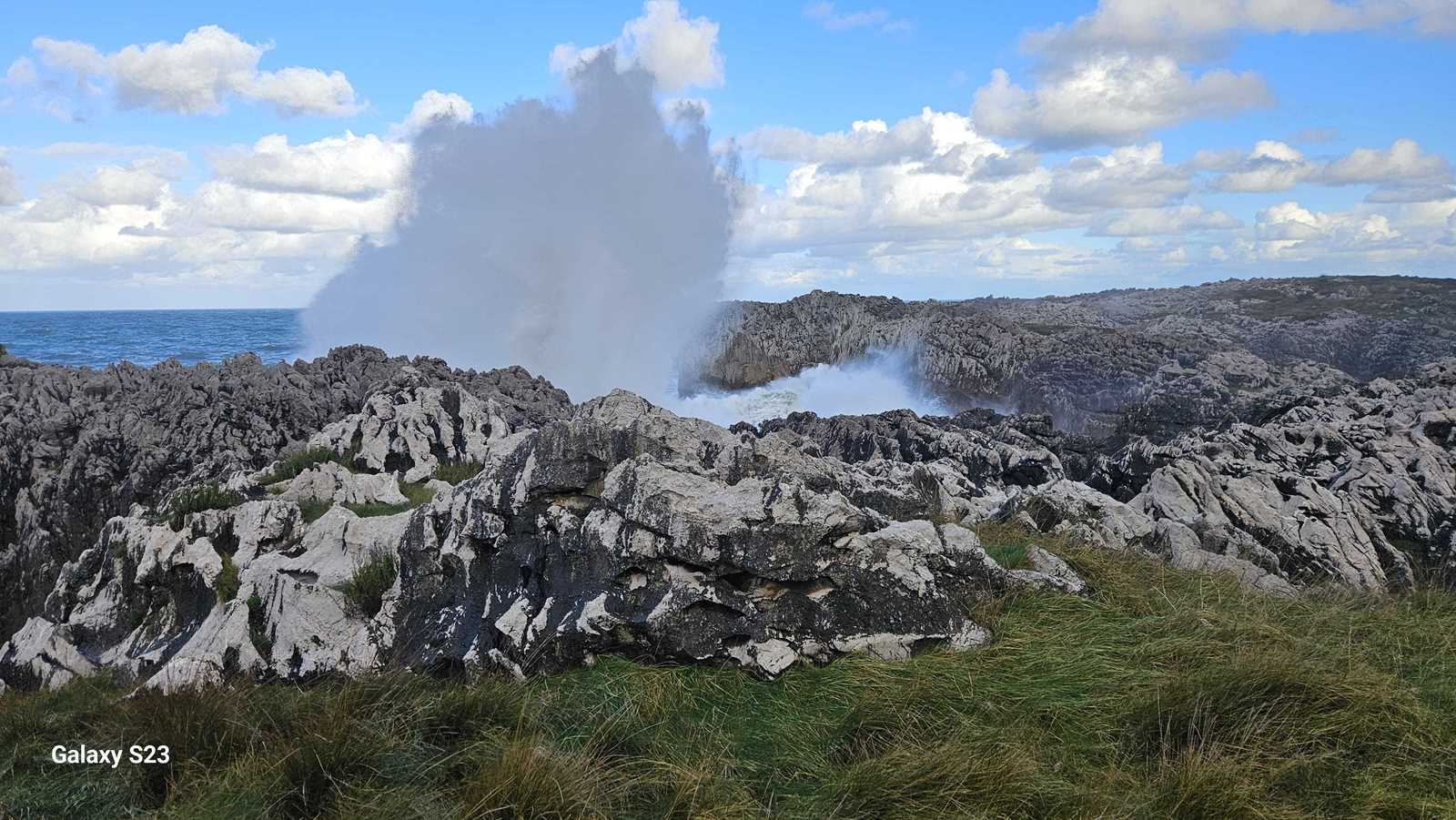 El estruendo era ensordecedor, una mezcla entre el rugido de las olas y el viento comprimido saliendo con potencia de las grietas.