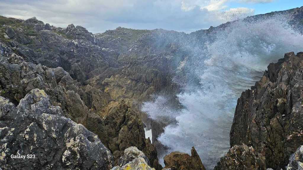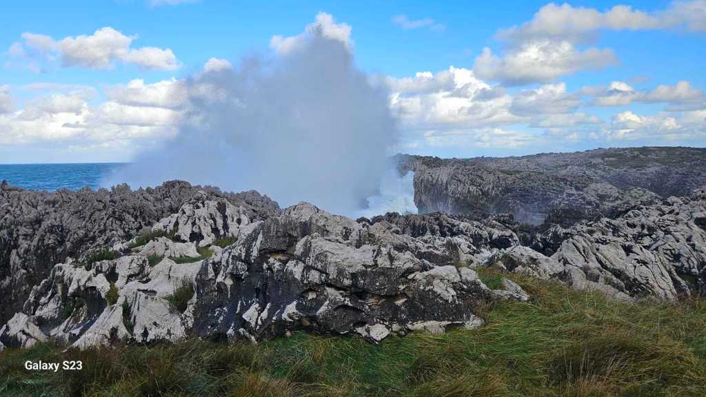 El Cantábrico nos ha mostrado su carácter indomable. Cada ola golpeaba los acantilados como si quisiera quebrarlos, llenando el aire con el salitre y la fuerza de la naturaleza. Los bufones no dejaban de expulsar agua, creando un paisaje de nubes marinas que se elevaban hacia el cielo. El sonido y la vista de este fenómeno te recuerdan lo poderoso e imponente que puede ser el mar.