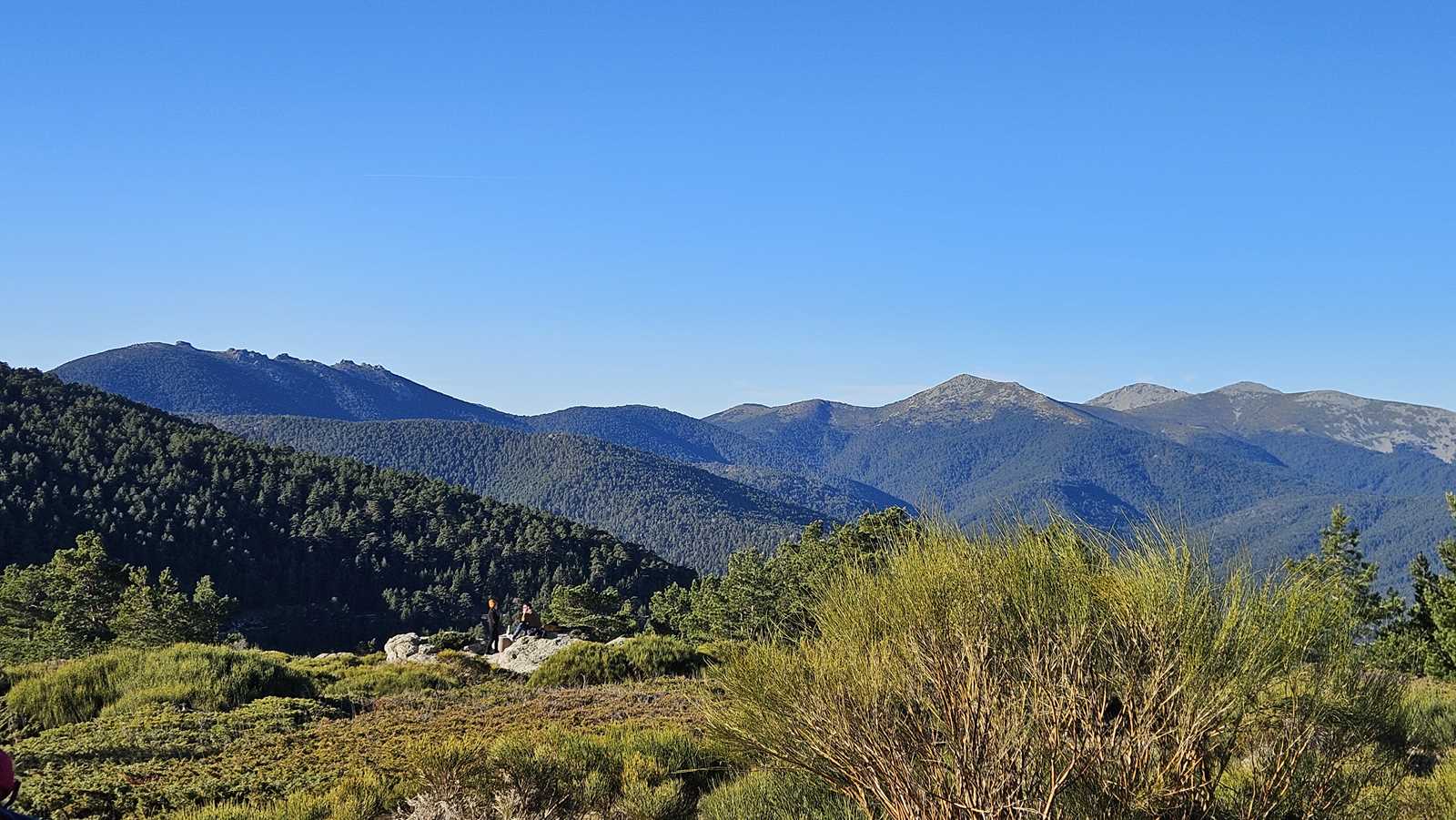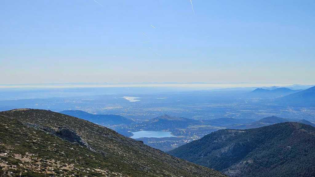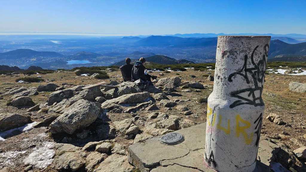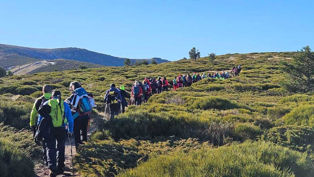 Mientras avanzamos hacia la cumbre, dejamos a nuestras espaldas el majestuoso Pico de Peñalara, el punto más alto de la Sierra de Guadarrama, con sus imponentes 2.428 metros de altitud. Nos encontramos en una zona de repoblación de pinos, un claro ejemplo de cómo la naturaleza y la intervención humana pueden trabajar juntas para restaurar el equilibrio del entorno.