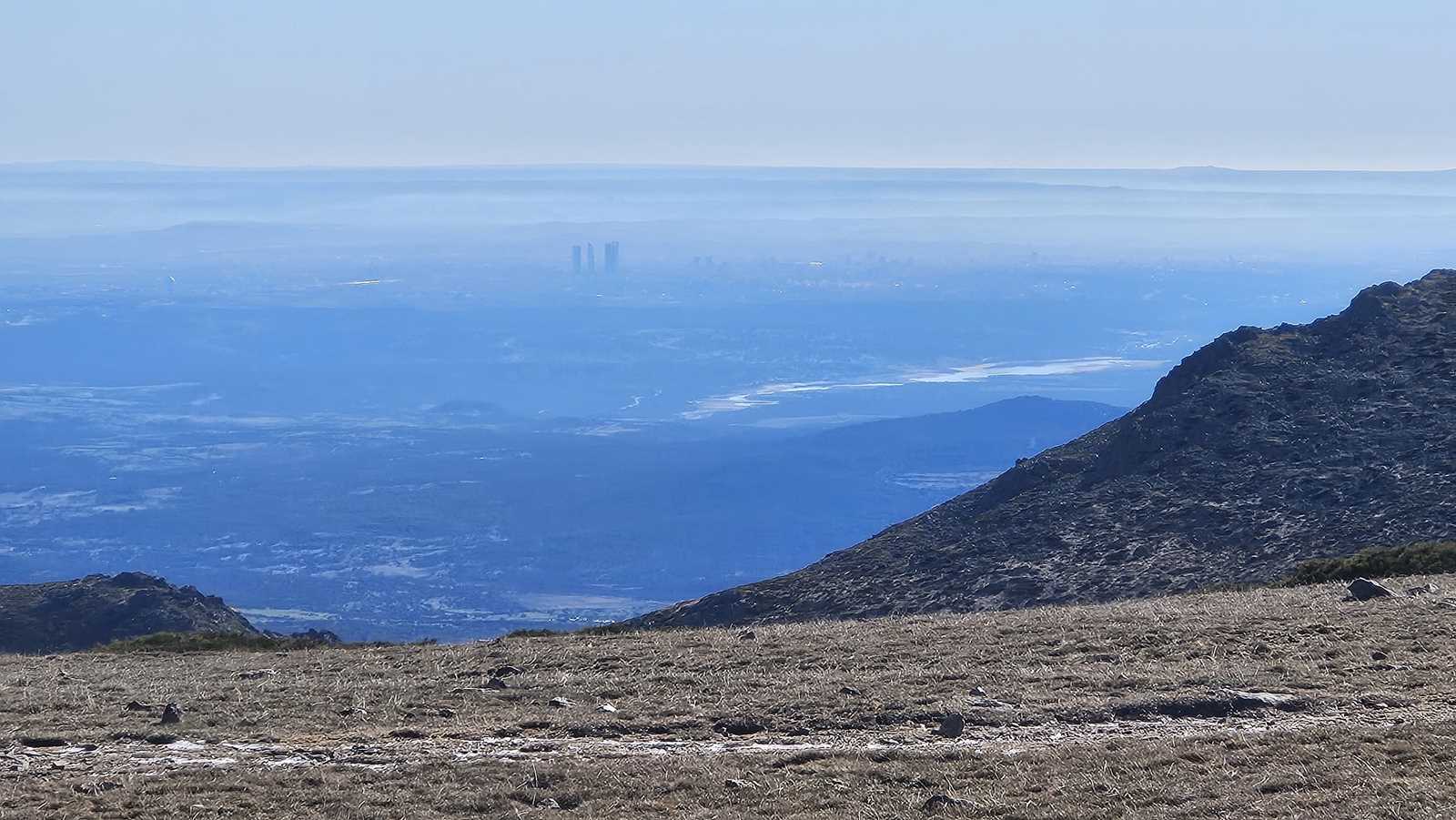Disfrutamos de las vistas únicas que nos ofrece la Sierra de Guadarrama. A media subida, contemplamos Siete Picos, cuya forma ha inspirado la reciente denominación de “Sierra del Dragón”. También divisamos el Pico de Montón de Trigo, cuya silueta cónica se eleva como un guardián del paisaje.