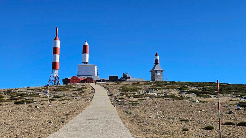 Nuestro objetivo final, la Bola del Mundo, destaca en la distancia con sus emblemáticas antenas, que parecen invitarnos a continuar la subida. Este lugar, cuyo apodo proviene de la forma esférica de los edificios de telecomunicaciones, es el punto elegido para situar el belén este año. La emoción crece mientras nos acercamos.