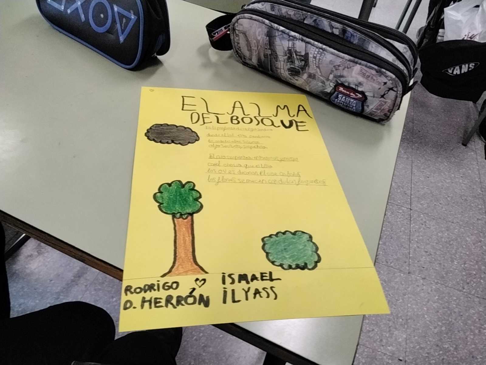 🔹 Trabajo en grupo: los alumnos se organizaron en pequeños grupos para buscar poemas relacionados con los bosques o, si lo preferían, crear sus propios versos inspirados en la naturaleza.