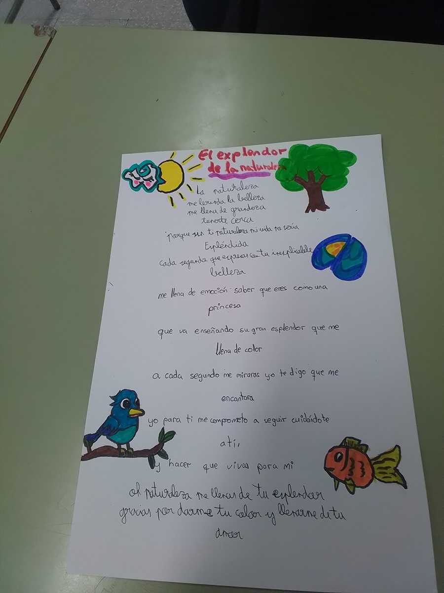 🔹 Lectura en voz alta y exposición: algunos alumnos se animaron a compartir sus poemas con la clase, en un espacio de escucha y expresión muy enriquecedor. Finalmente, todos los trabajos fueron expuestos en las aulas y pasillos del colegio, creando un recorrido poético y natural que invitaba a la reflexión y al disfrute.