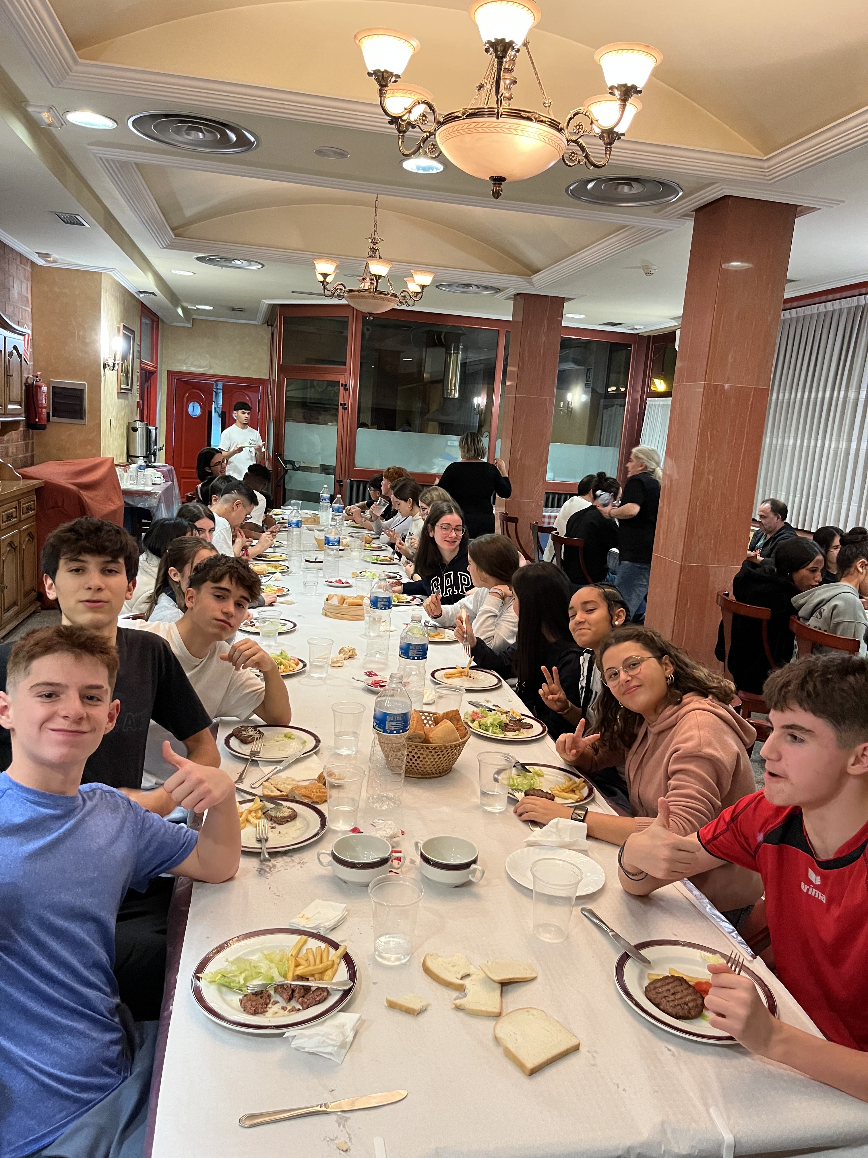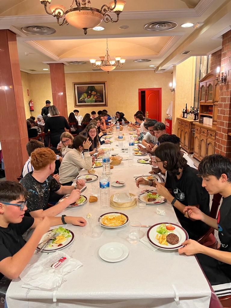 Una vez allí, nos repartimos las habitaciones y comenzamos a instalarnos mientras esperábamos con curiosidad la llegada del centro educativo de Almería, con quienes compartiremos esta aventura. No tardaron en llegar, y el ambiente se llenó de sonrisas y saludos. Después de las presentaciones y una pequeña charla introductoria sobre lo que nos espera en los próximos días, todos cenamos juntos. Fue el primer momento de convivencia entre los dos grupos, y ya se notaba la buena sintonía y las ganas de compartir.