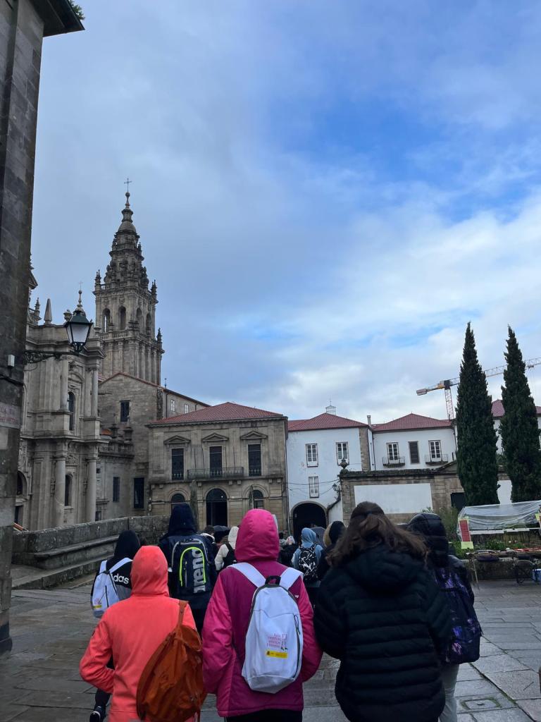 La próxima etapa de nuestra ruta es la última para muchos que visitan estas tierras: Santiago de Compostela. Por un momento nos convertimos en peregrinos. Durante los cinco kilómetros que separan el Monte del Gozo de la Catedral de Santiago. Una vez llegamos a la Praza do Obradoiro, visitamos el museo de la Catedral, pudimos ver la cripta funeraria y abrazar la imagen del Santo.