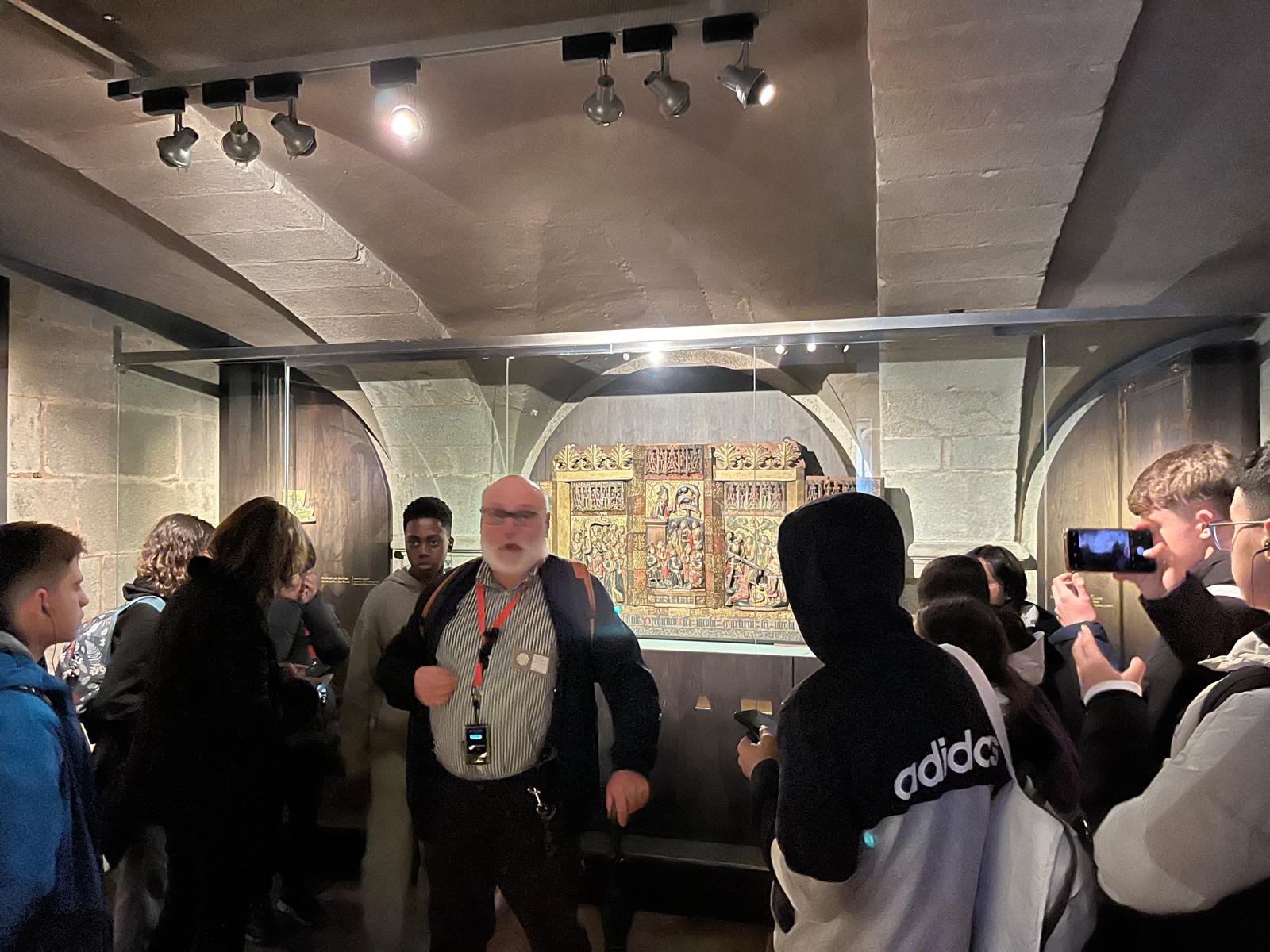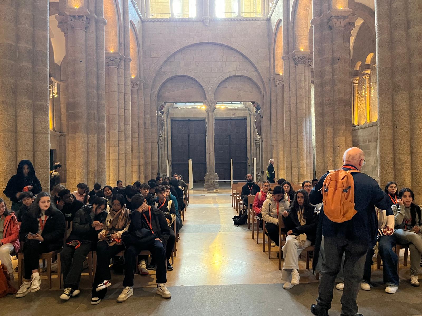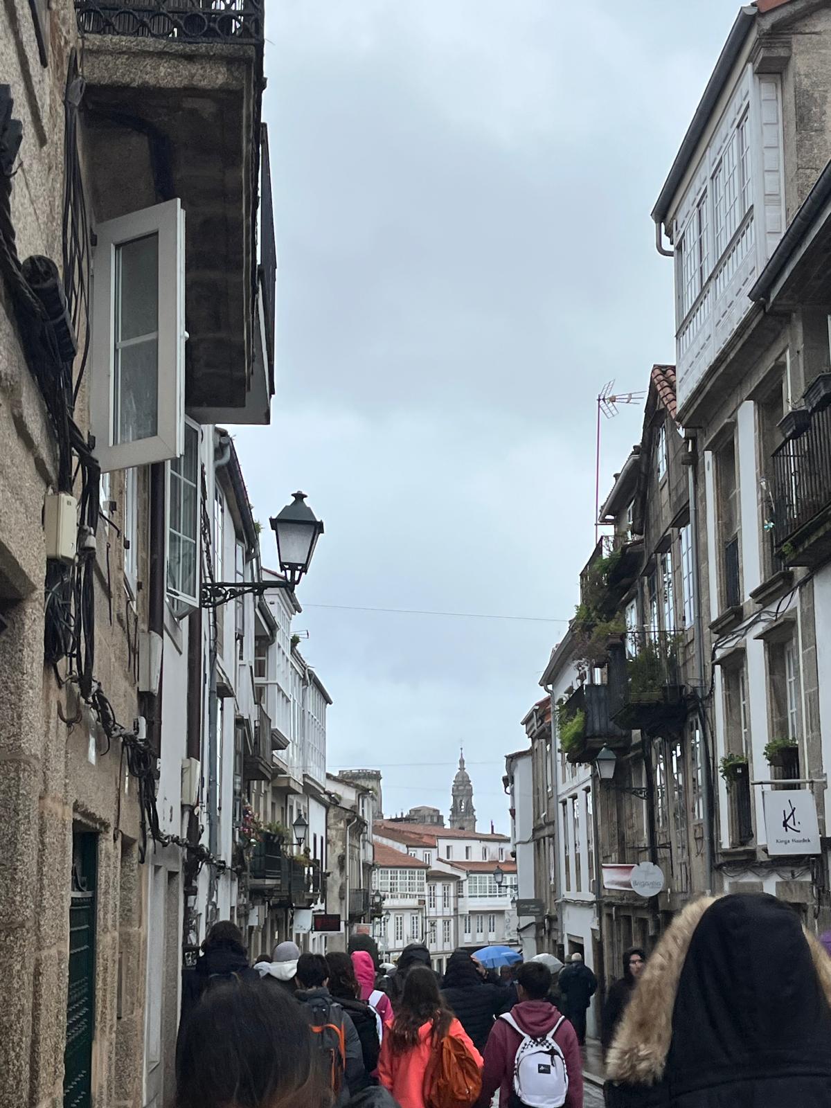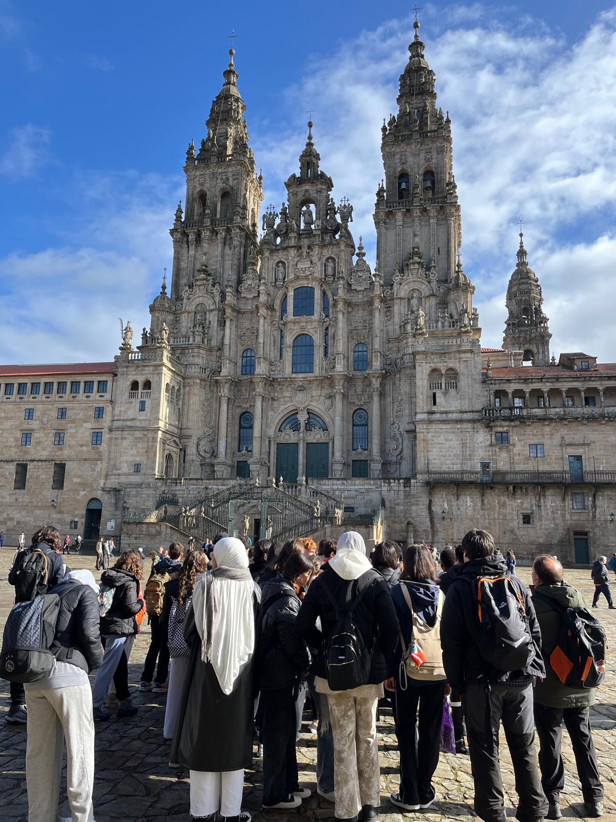 La próxima etapa de nuestra ruta es la última para muchos que visitan estas tierras: Santiago de Compostela. Por un momento nos convertimos en peregrinos. Durante los cinco kilómetros que separan el Monte del Gozo de la Catedral de Santiago. Una vez llegamos a la Praza do Obradoiro, visitamos el museo de la Catedral, pudimos ver la cripta funeraria y abrazar la imagen del Santo.