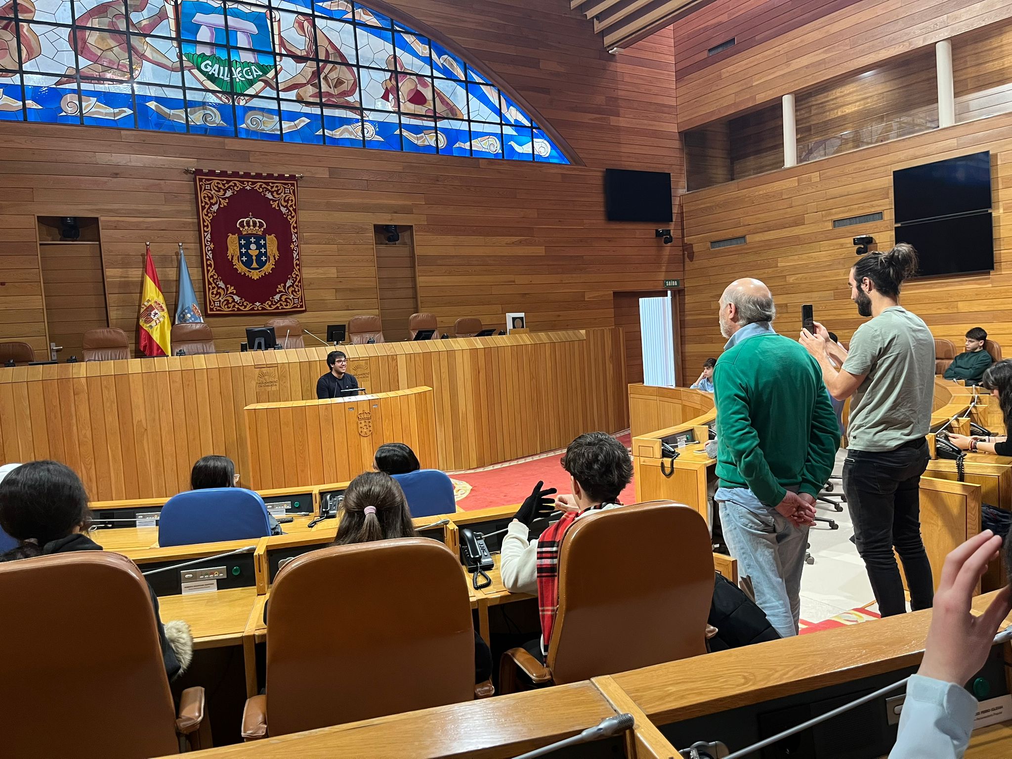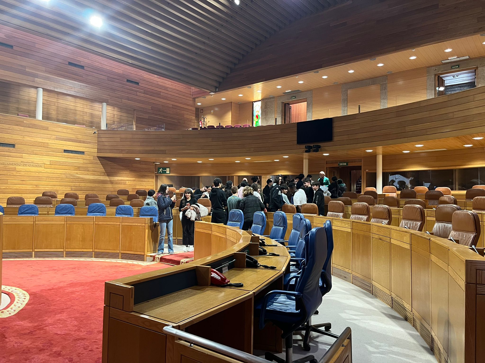 En la recta final de nuestra Ruta conocimos el Parlamento de Galicia, en O Pazo do Hórreo, Santiago de Compostela. La temática del programa Rutas CAL este año era Ciudadanía Democrática. Nos han explicado su historia, la composición actual e incluso hemos podido entrar en el Hemiciclo y sentarnos allí.
