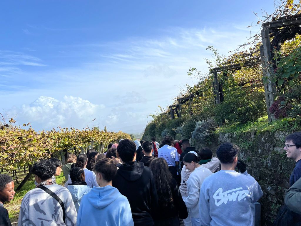 Acto seguido nos dirigimos a la bodega Granbazán, donde vimos un gran viñedo de uva albariño, bien diferente a los de nuestra zona por diversos factores como el clima. En el interior de la bodega nos explicaron el proceso de elaboración del vino desde la recolección de la uva. Para terminar, comimos en la bodega y degustamos el mosto de la uva.