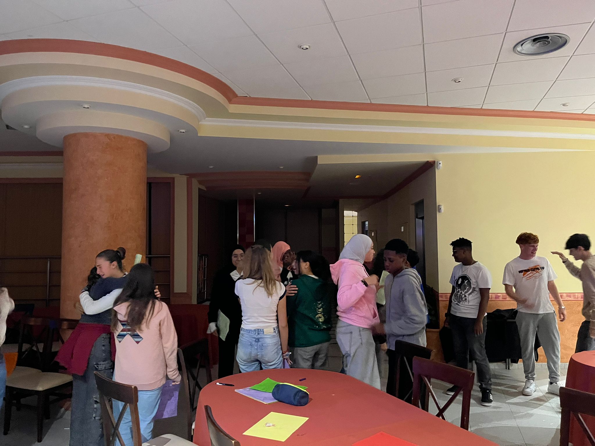 De vuelta ya al hotel después de cenar comenzamos la no tan querida despedida de nuestros compañeros y ya, muchos, amigos de Almería. Pudimos escribirnos dedicatorias y recuerdos unos a otros en folios de colores, un regalo que muchos guardarán siempre.