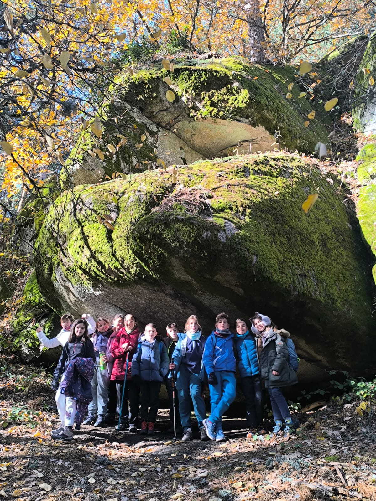 A la hora de comer nos detuvimos en la Fuente de la Canaleja, donde el sol nos regaló un respiro cálido pese al fresquito que se notaba en las zonas de sombra. Fue un momento perfecto para descansar, reponer fuerzas y compartir conversaciones entre alumnos de distintas edades, uno de los aspectos más enriquecedores de este tipo de salidas.