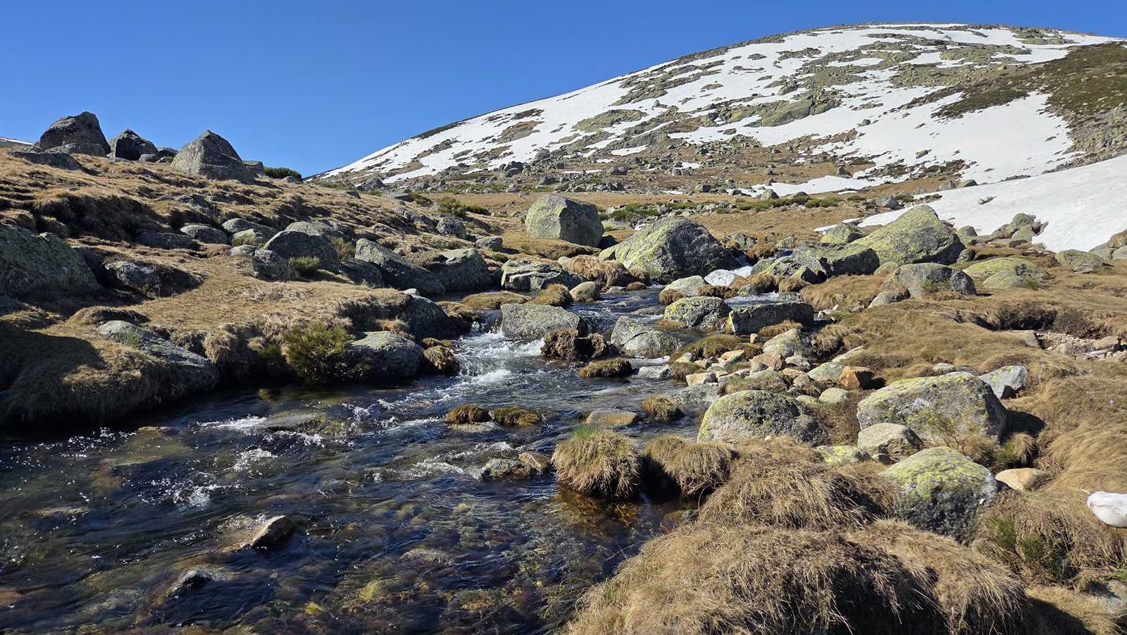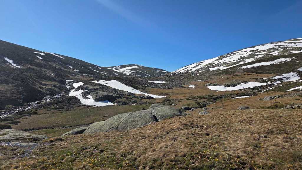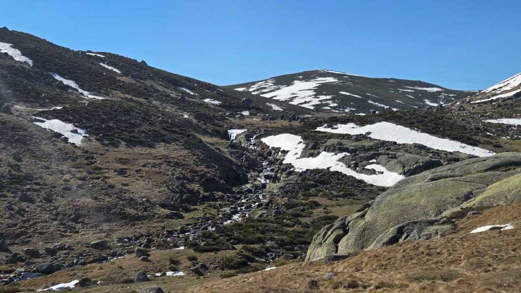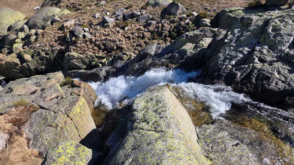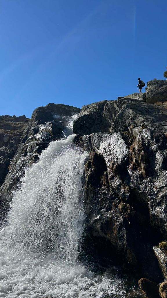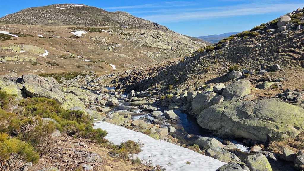 Desde ahí, avanzamos con tranquilidad hasta girar hacia la izquierda y seguir adentrarnos en el valle, siguiendo el curso del río Barbellido, que desciende formando unas preciosas cascadas. Este tramo discurre por la Garganta de Prado Puerto, un entorno de gran valor ecológico. A nuestra espalda queda el Refugio de Prado Puerto, discreto pero esencial, ejemplo de cómo la presencia humana puede integrarse, con respeto, en la naturaleza.