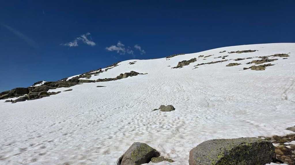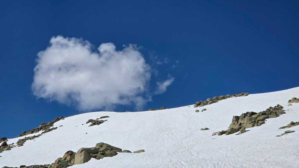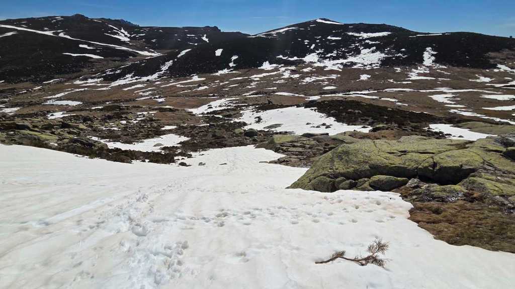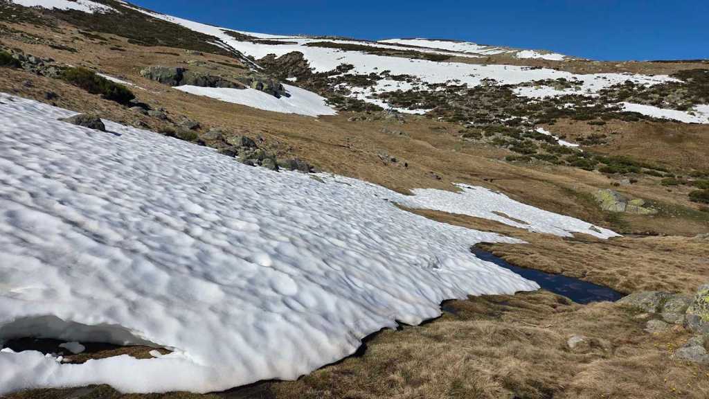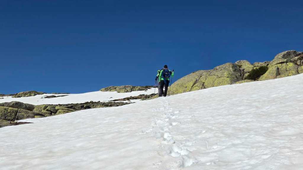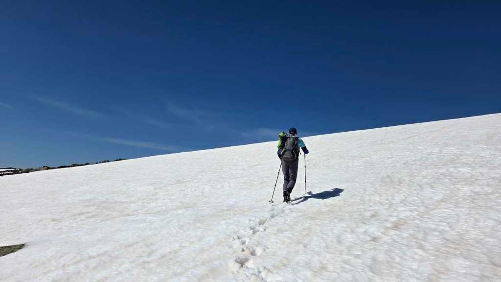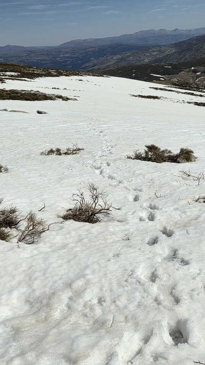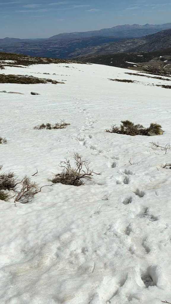 A medida que avanzamos hacia la cima del Morezón, el paisaje se transforma por completo. La nieve cubre buena parte del terreno, creando un entorno espectacular pero también delicado.