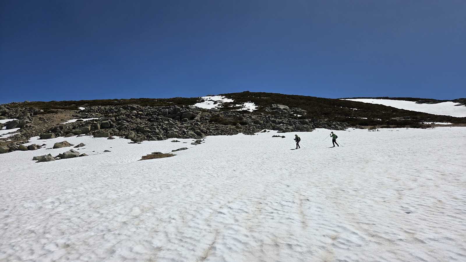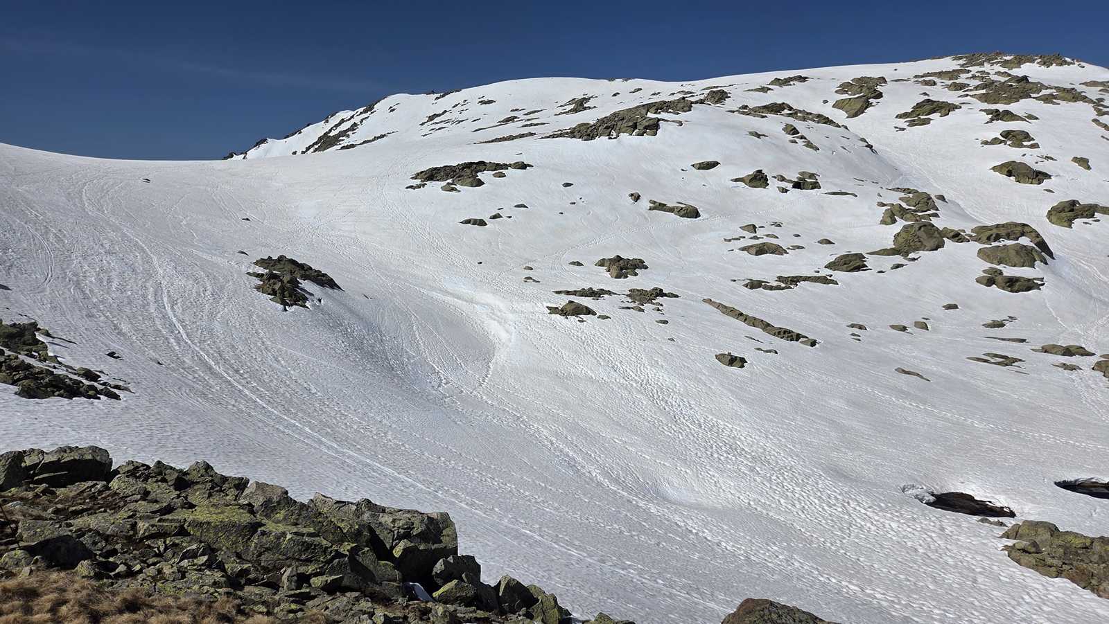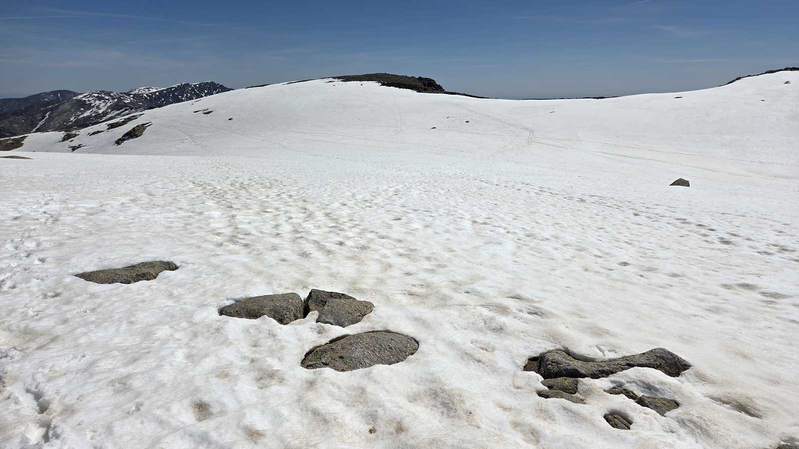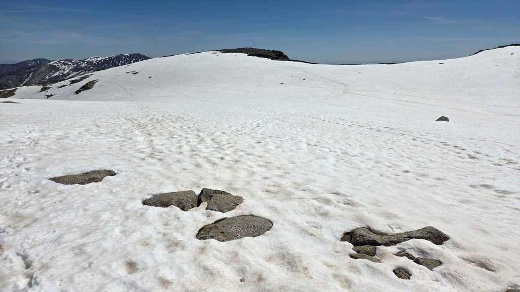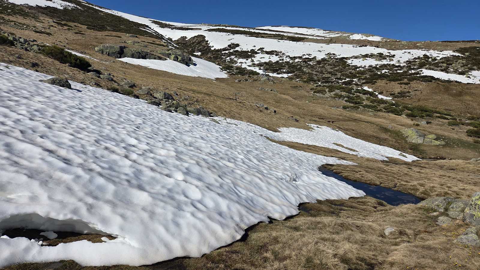 A medida que avanzamos hacia la cima del Morezón, el paisaje se transforma por completo. La nieve cubre buena parte del terreno, creando un entorno espectacular pero también delicado.